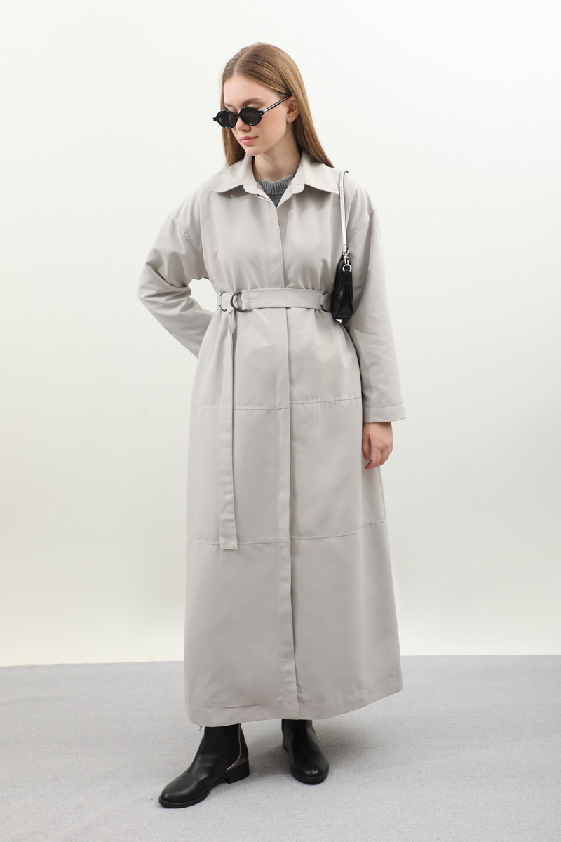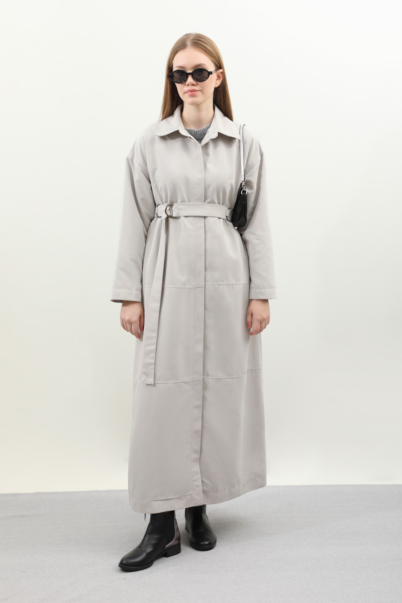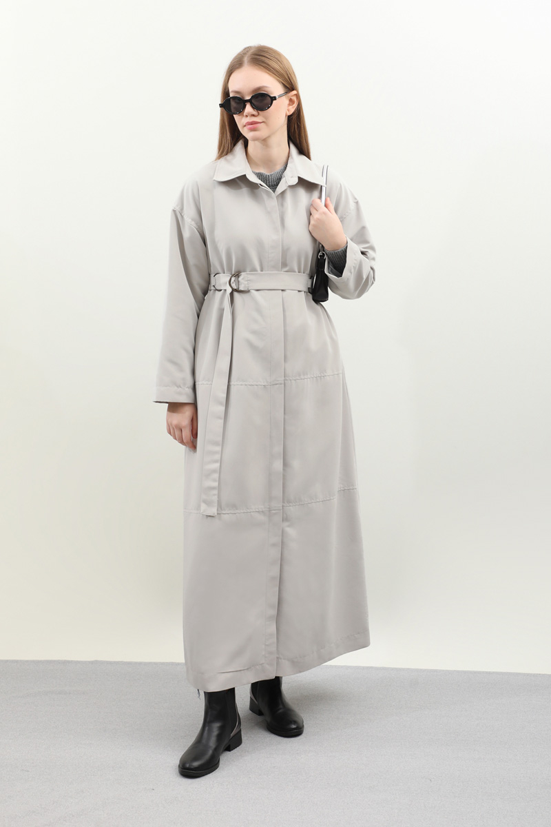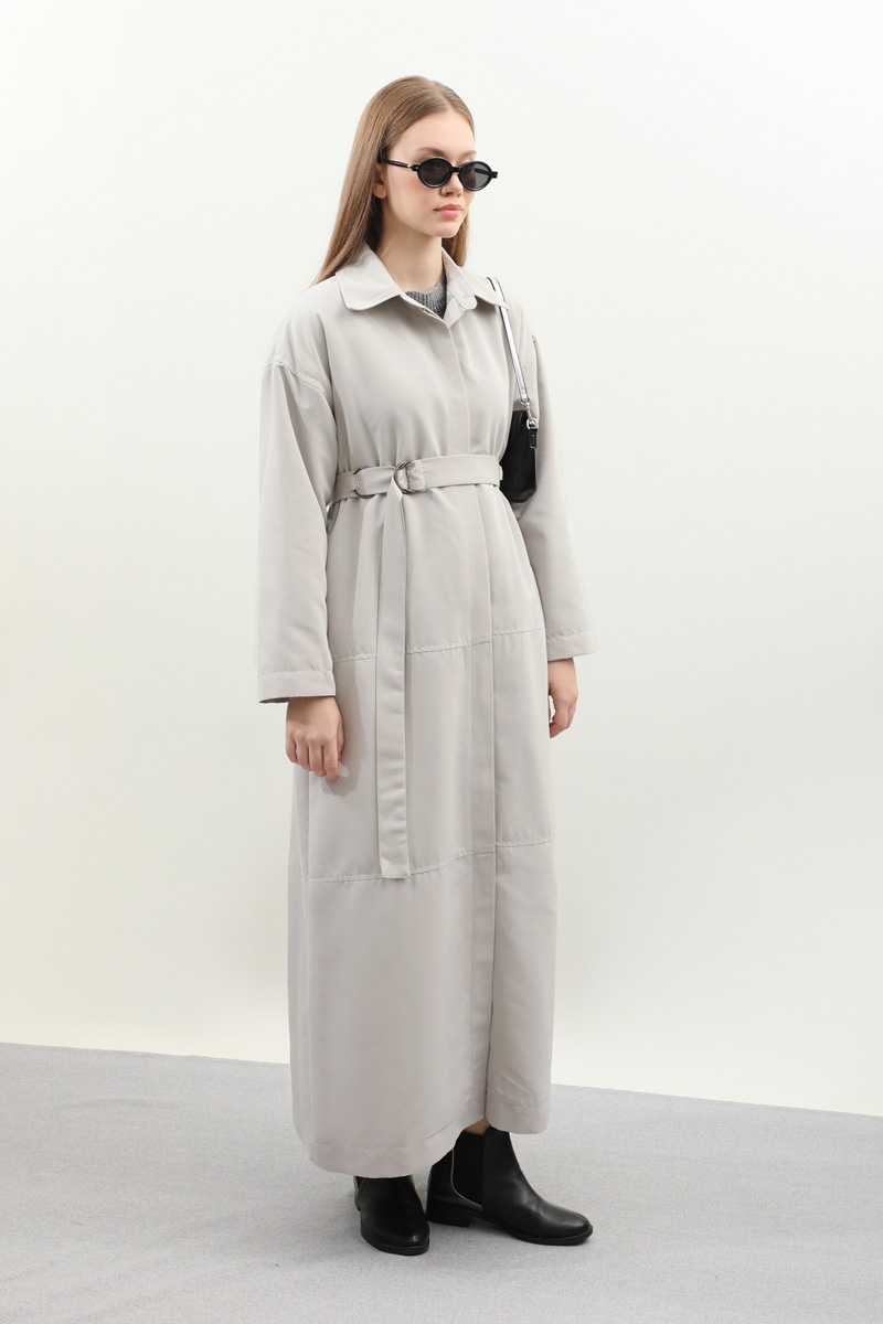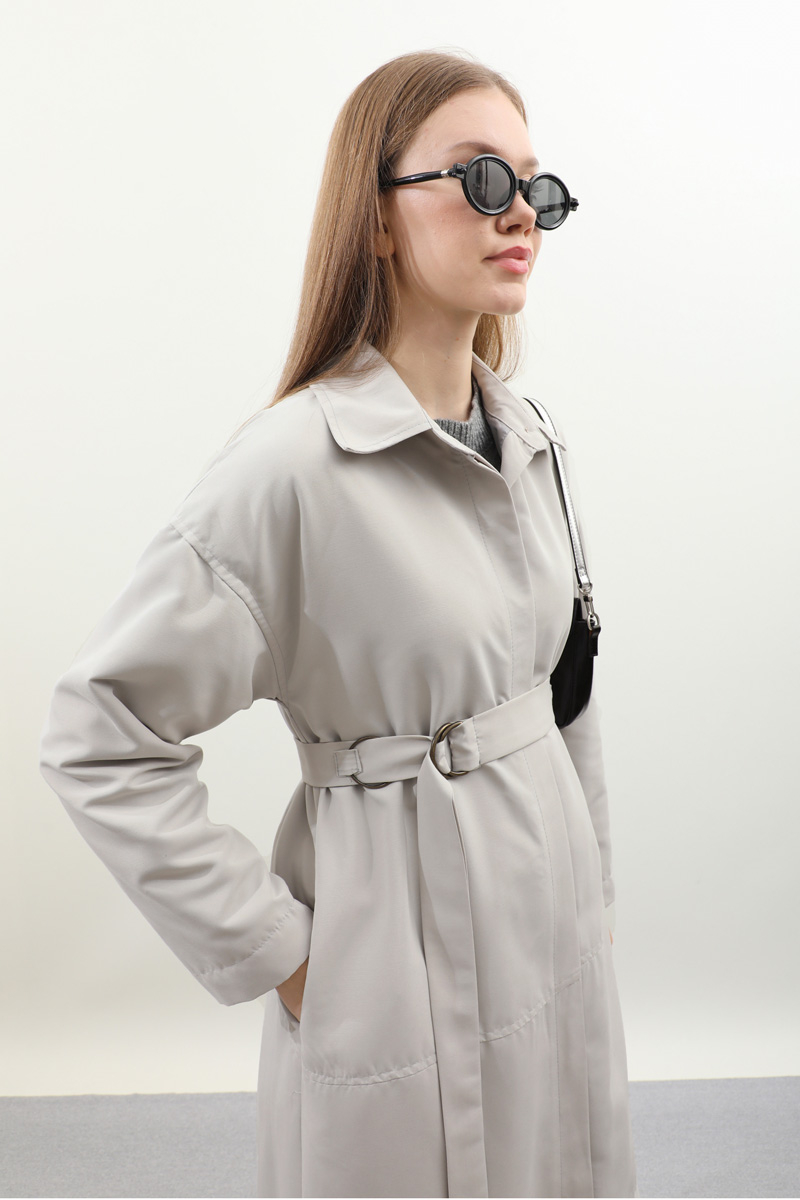 D Tokalı Trençkot Açık Gri