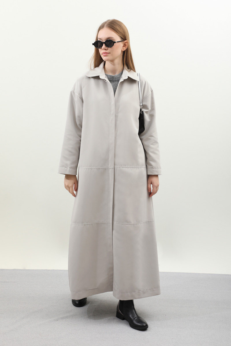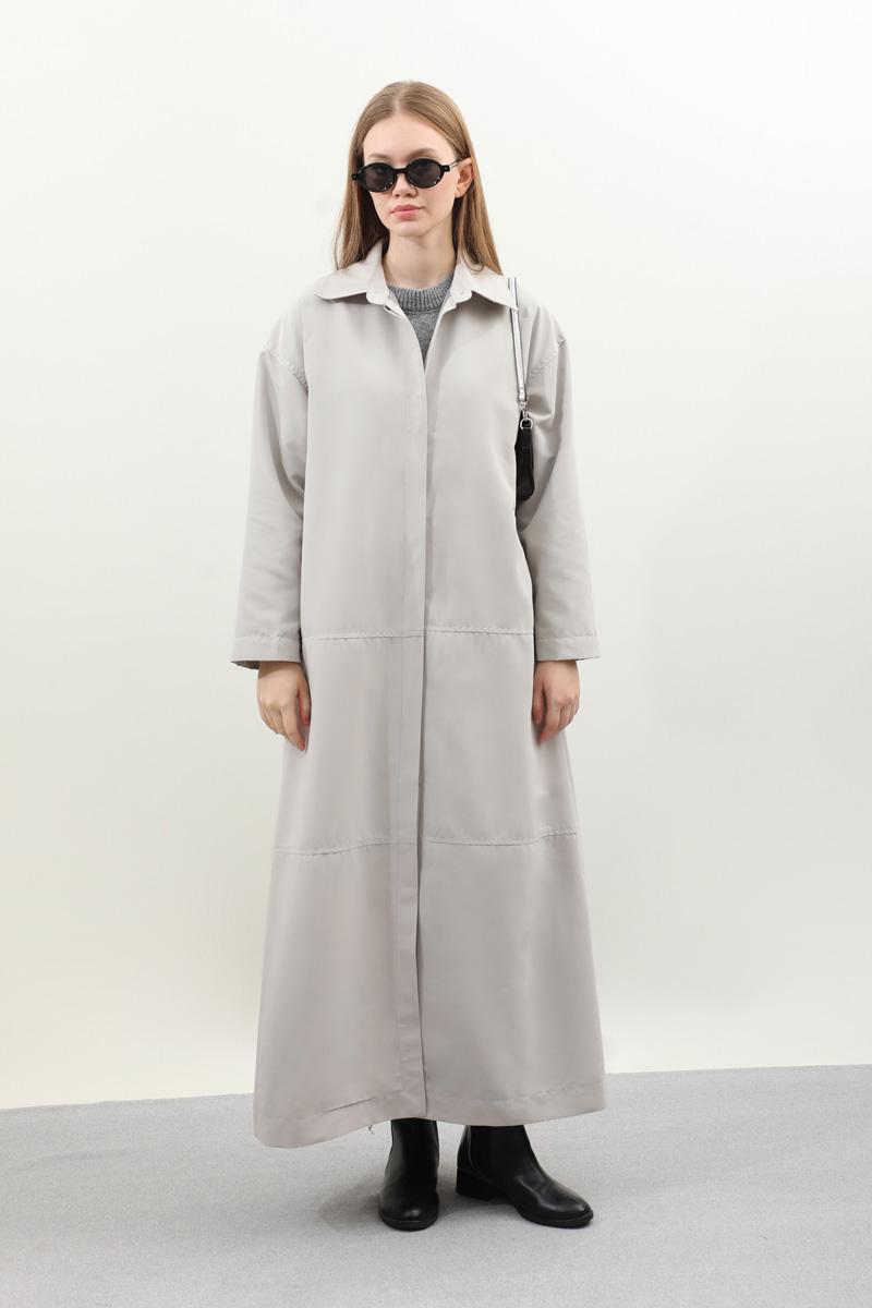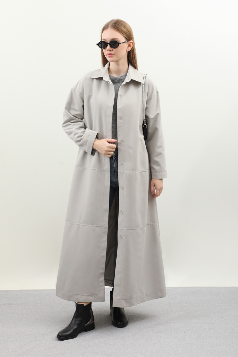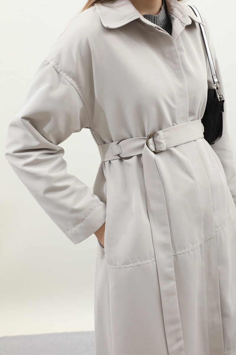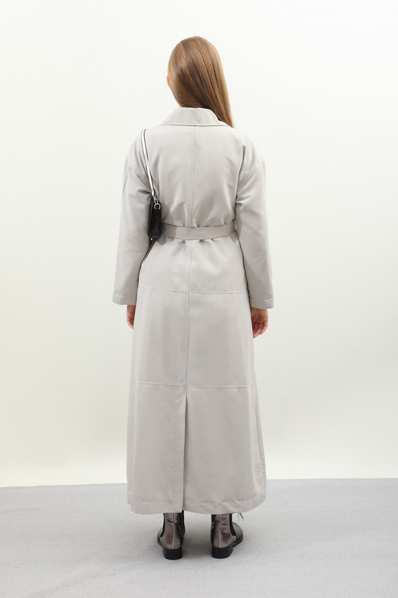 D Tokalı Trençkot Açık Gri