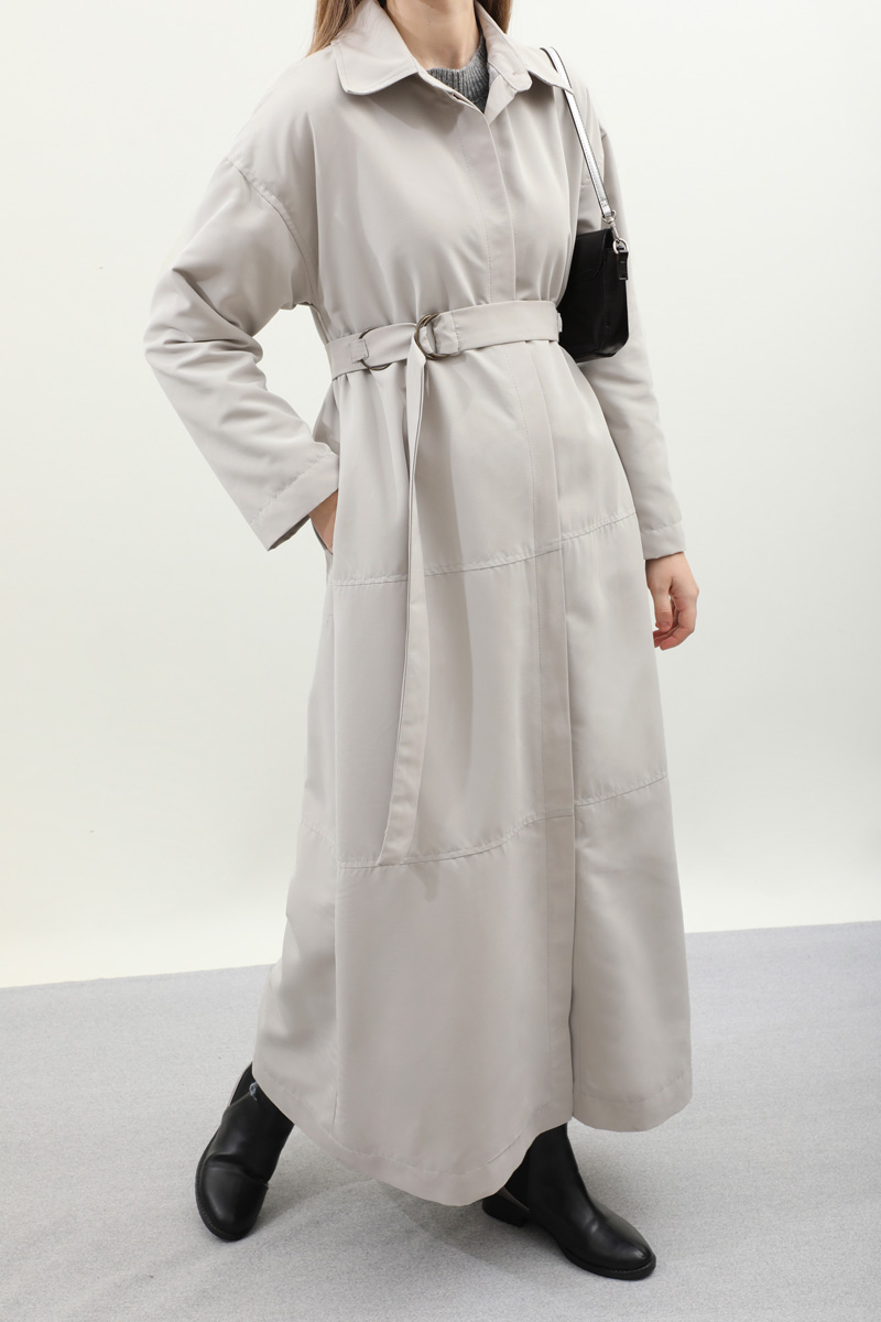 D Tokalı Trençkot Açık Gri. Gömlek yakadır, yaka da düğme detaylıdır, önden gizli düğmelidir, kemeri d toka ve metal halka detaylıdır, beden parça dikiş detaylıdır, yandan gizli ceplidir, astarlıdır. Günlük kullanım ve özel günlerinizde tercih edebilirsiniz.