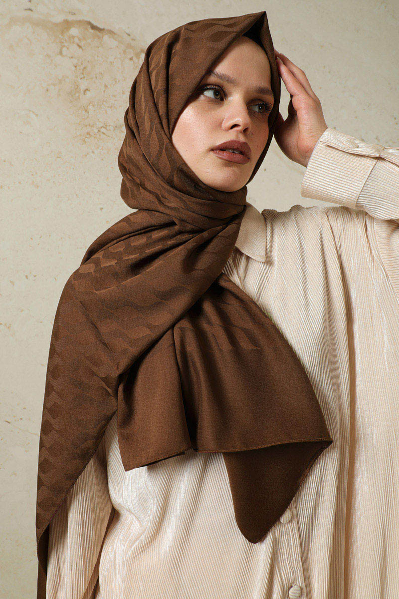 Dalga Desenli Şal Acı Kahve. Pratik oluşu ve kolay şekil alabilir. Tok duruşlu ve dökümlü yapısıyla çok tercih edilmektedir. Ağırlık yapmayan kumaş özelliği ile sık ve uzun süreli kullanıma uygundur. Dört mevsim kullanıma uygundur.