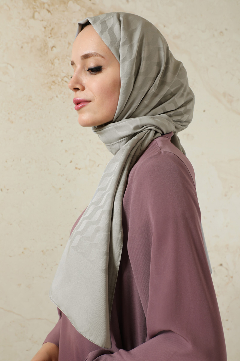 Dalga Desenli Şal Gri. Pratik oluşu ve kolay şekil alabilir. Tok duruşlu ve dökümlü yapısıyla çok tercih edilmektedir. Ağırlık yapmayan kumaş özelliği ile sık ve uzun süreli kullanıma uygundur. Dört mevsim kullanıma uygundur.