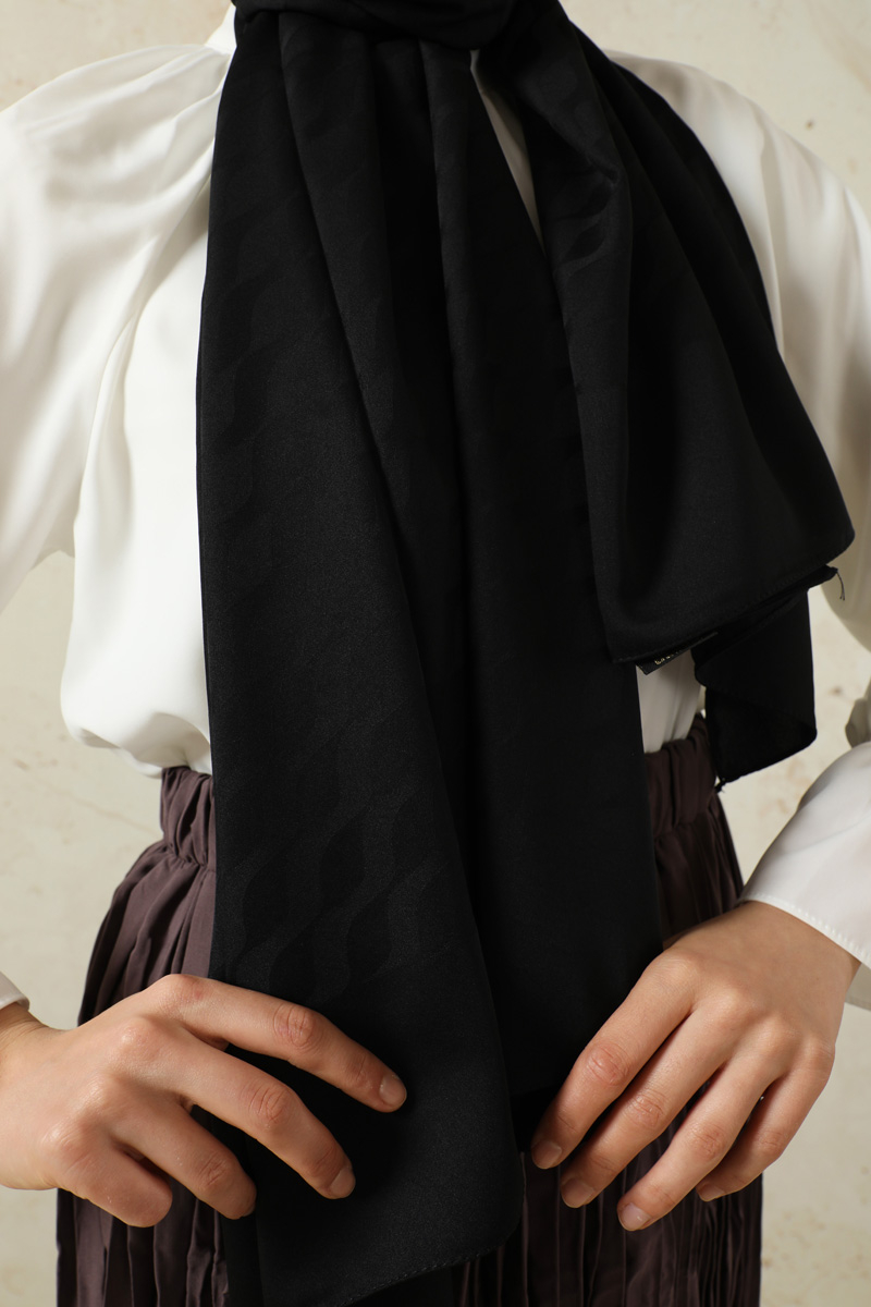 Dalga Desenli Şal Siyah. Pratik oluşu ve kolay şekil alabilir. Tok duruşlu ve dökümlü yapısıyla çok tercih edilmektedir. Ağırlık yapmayan kumaş özelliği ile sık ve uzun süreli kullanıma uygundur. Dört mevsim kullanıma uygundur.