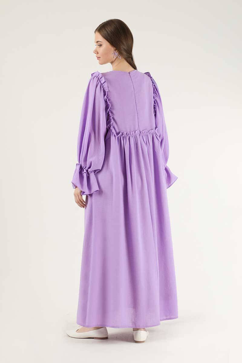 Dantel Detay Fırfırlı Elbise Lila