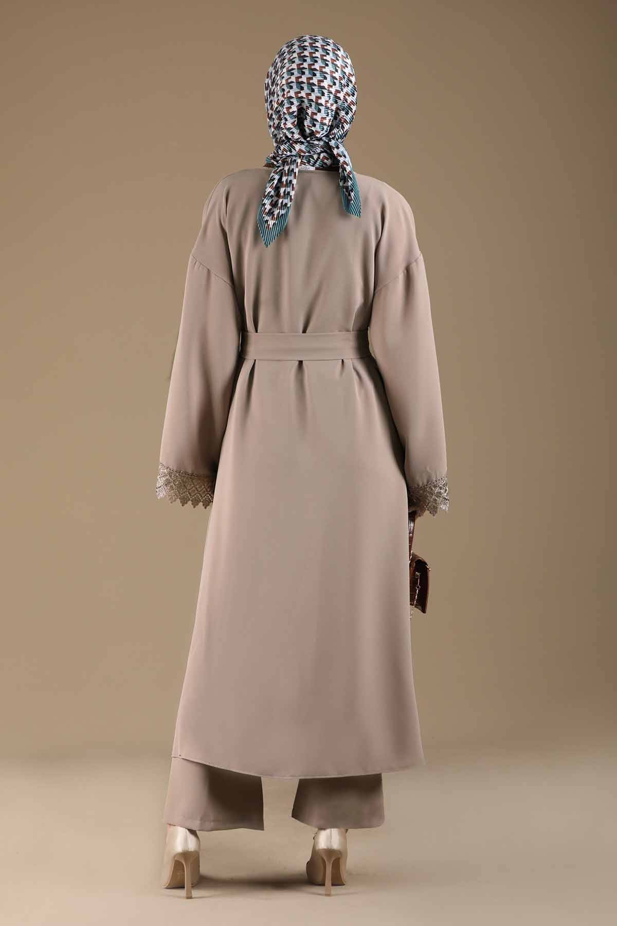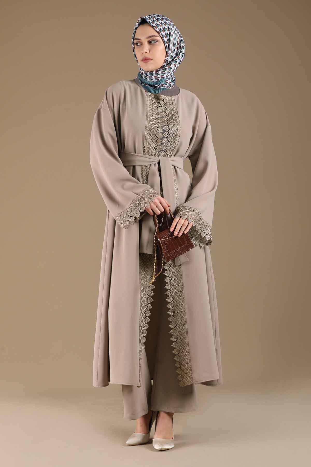 Dantel Detaylı Abaya Takım Vizon