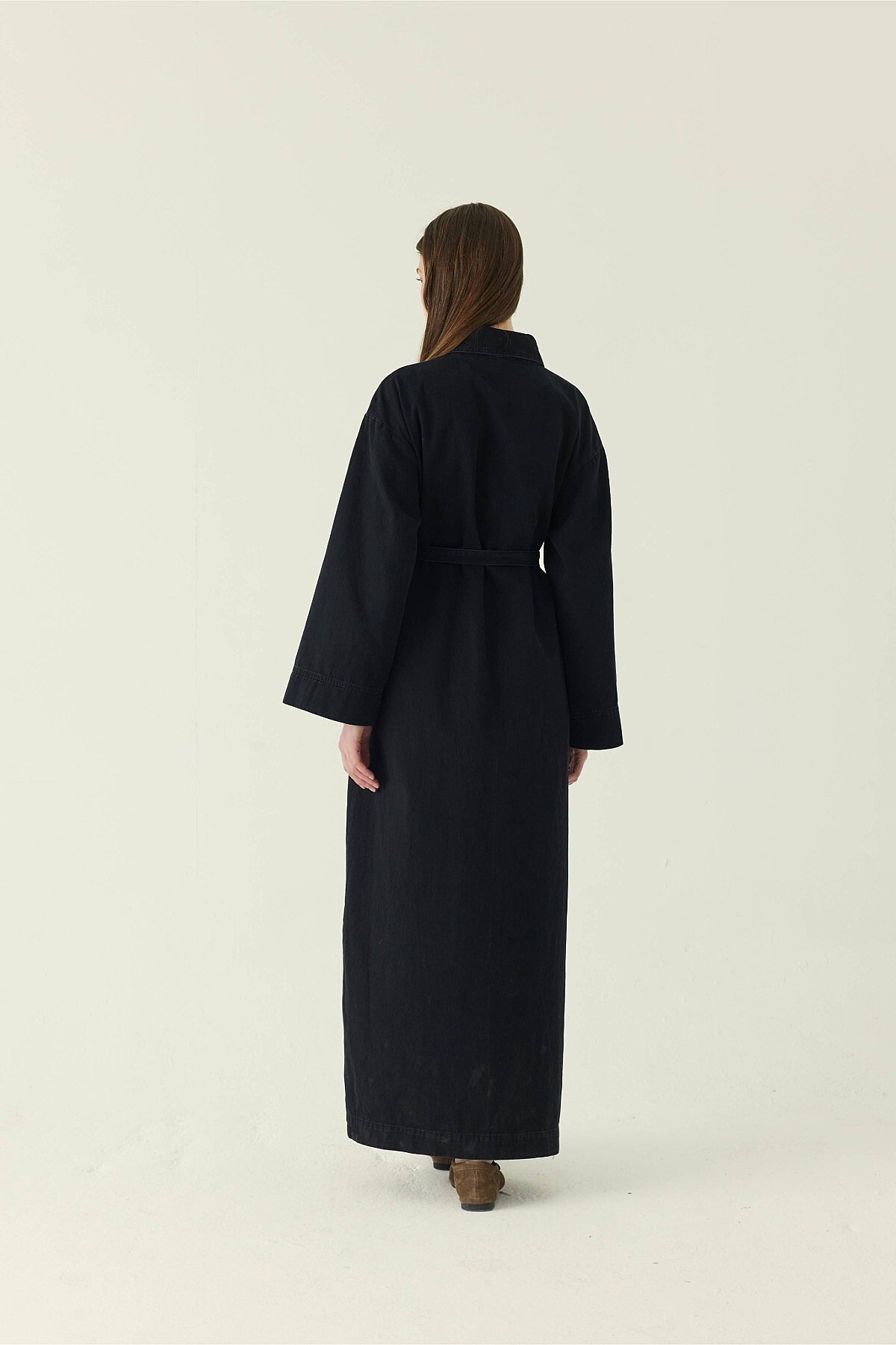 Dantel Detaylı Denim Elbise Siyah, klasik denim elbise formunu dantel dokunuşlarla yumuşatarak dengeli ve karakterli bir görünüm sunar. Ön bedende yer alan düğme kapama detayı ve belden ayarlanabilir kuşak formu, silueti kontrollü bir şekilde toparlar. Cep ve kol uçlarında kullanılan dantel detaylar tasarıma zarif bir kontrast kazandırırken, uzun boy kesimiyle günlük kullanımdan şehir stiline kadar geniş bir kullanım alanı sunar.