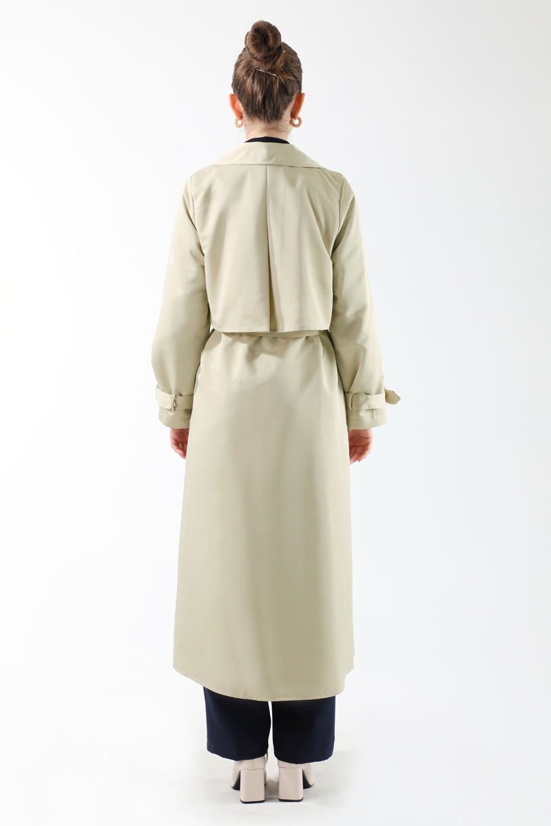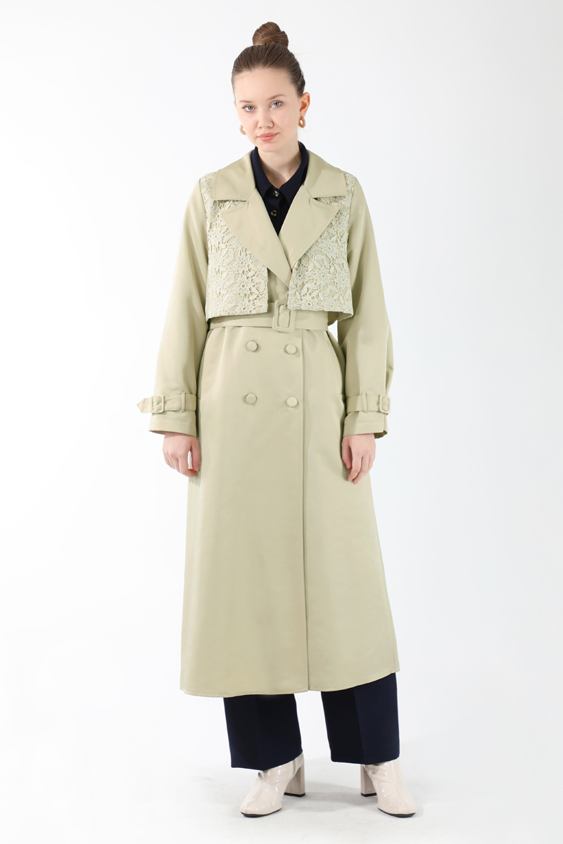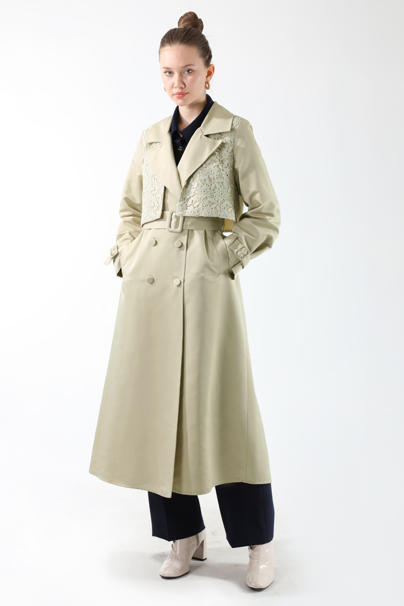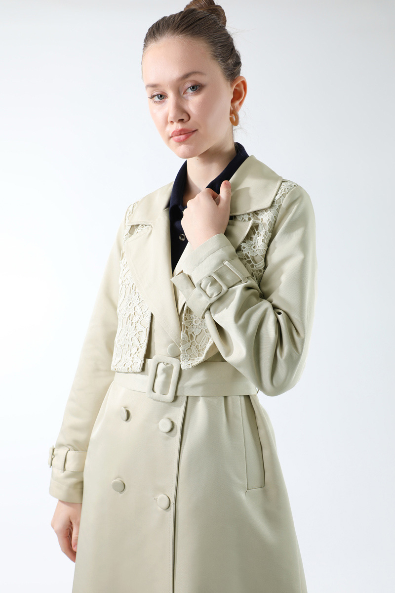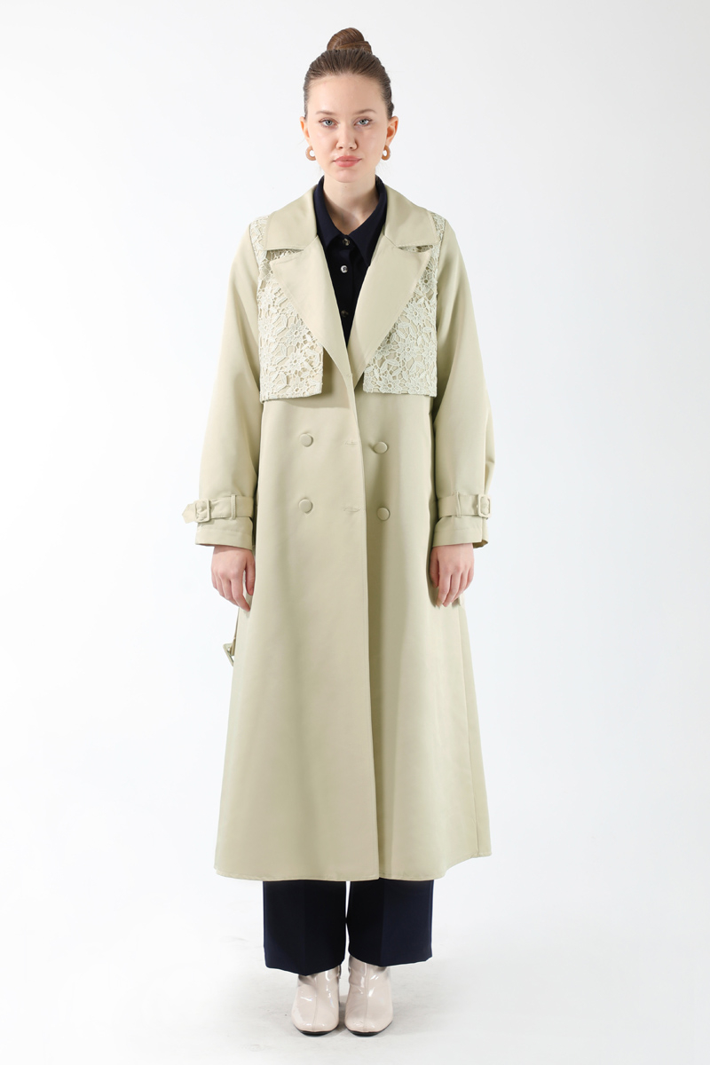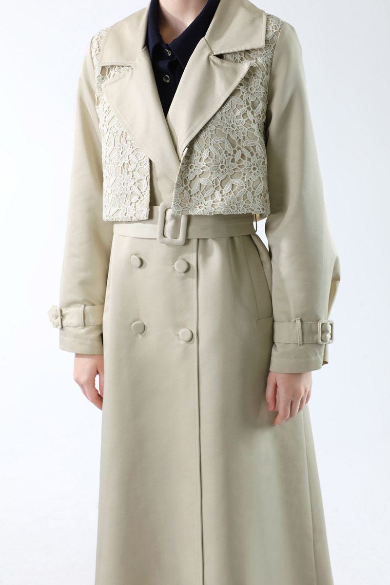 Dantel Detaylı Trençkot Ekru
