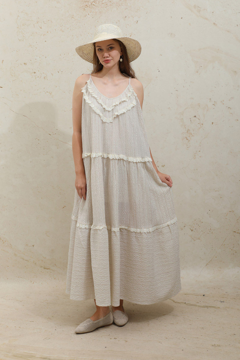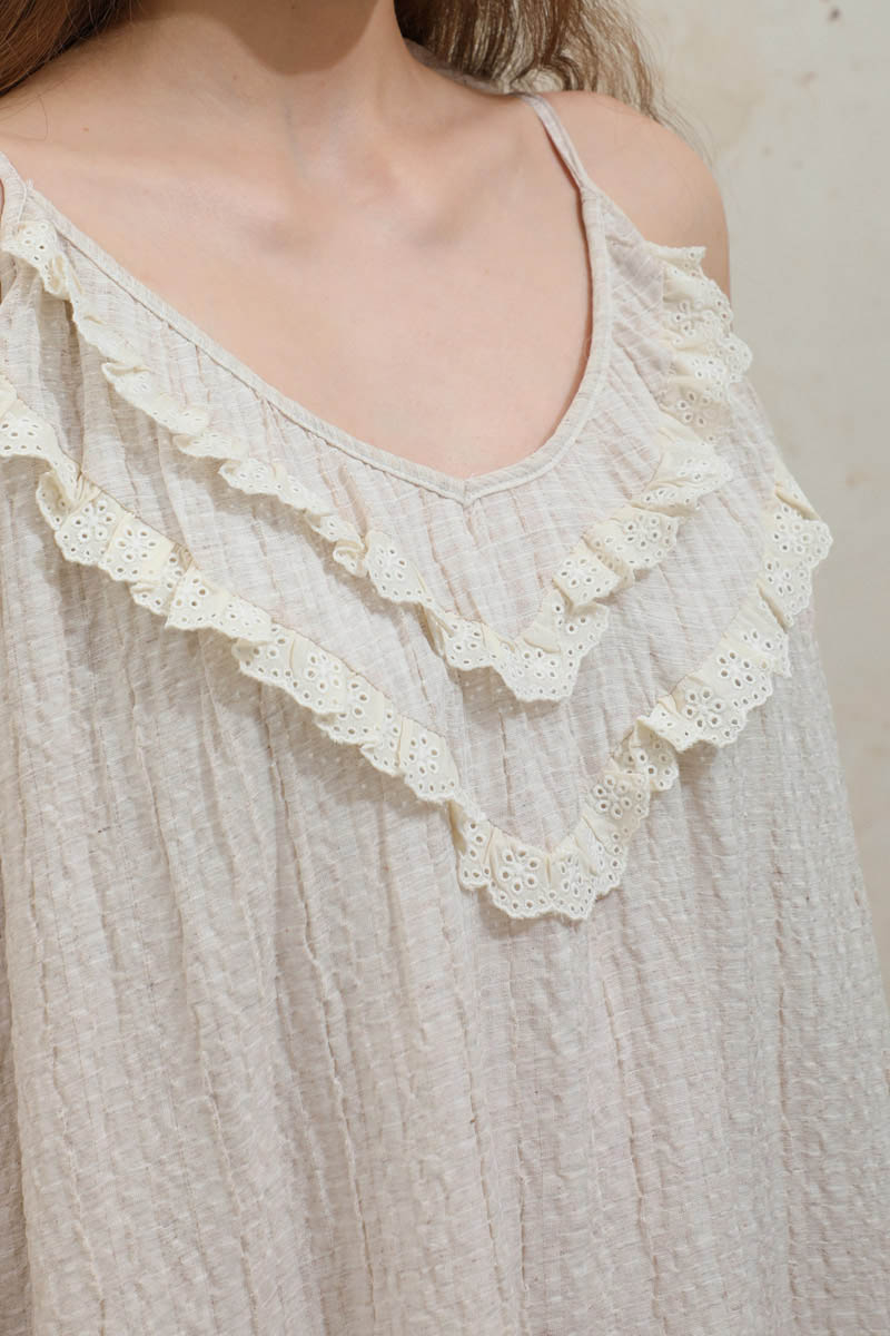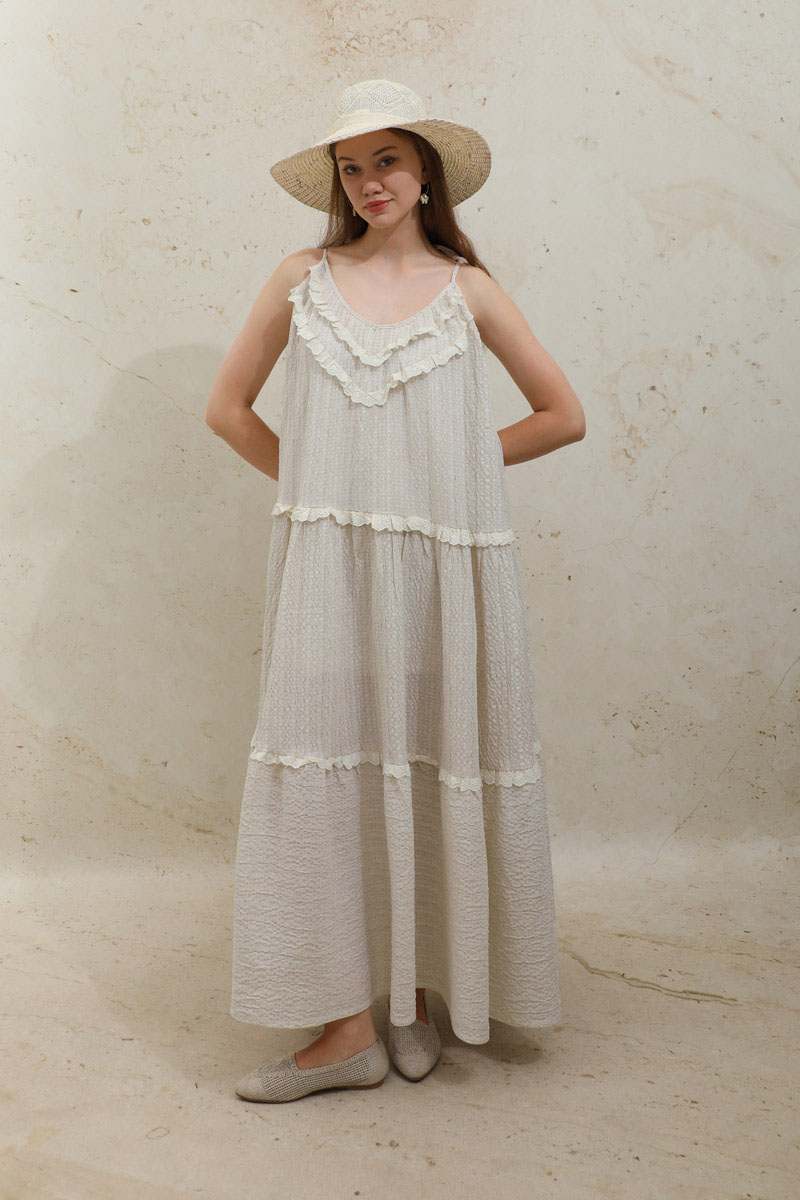 Dantelli Askılı Jile Taş. Ürün katlıdır her katında fisto vardır. V yakadır bağlanabilir askılı olup boyunuza göre ayarlanabilmektedir, yarım astarlıdır, cepsizdir. Günlük ve özel kullanımına uygundur. Poplin Kısa Gömlek ve Bisiklet Yaka Bodylerle kombinlenebilir.