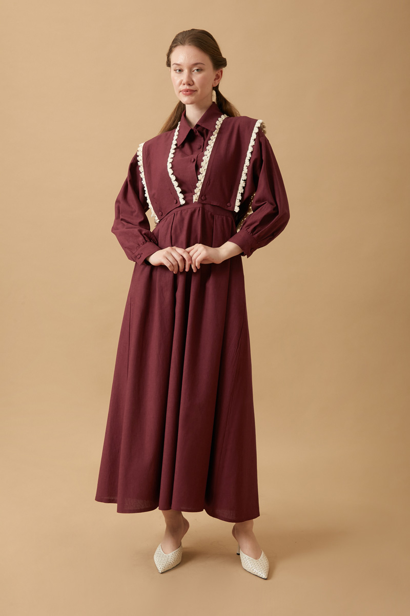 This dress, made from natural linen fabric, offers all-day comfort thanks to its breathable structure, while creating a sophisticated style with its nostalgic details. Produced with a sustainable fashion approach, this pinafore set reminds us that being environmentally conscious is also a statement of style.
