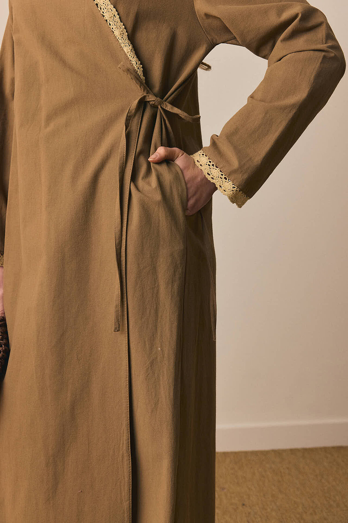 Dantelli Kruvaze Abaya Toprak