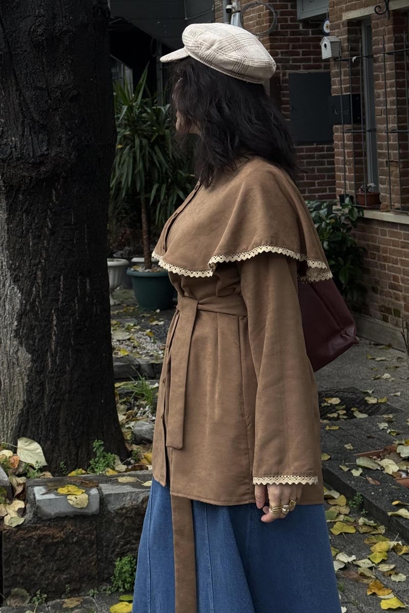 Dantelli Süet Gömlek Camel