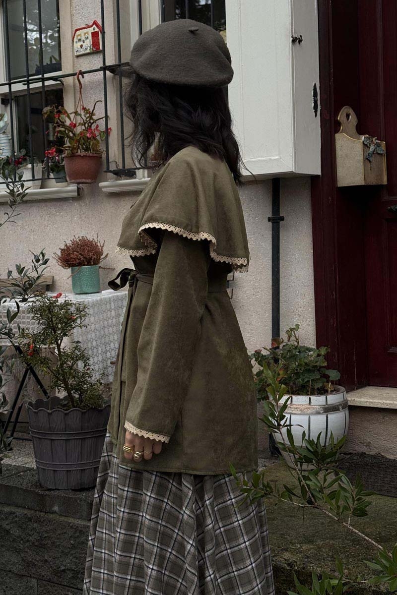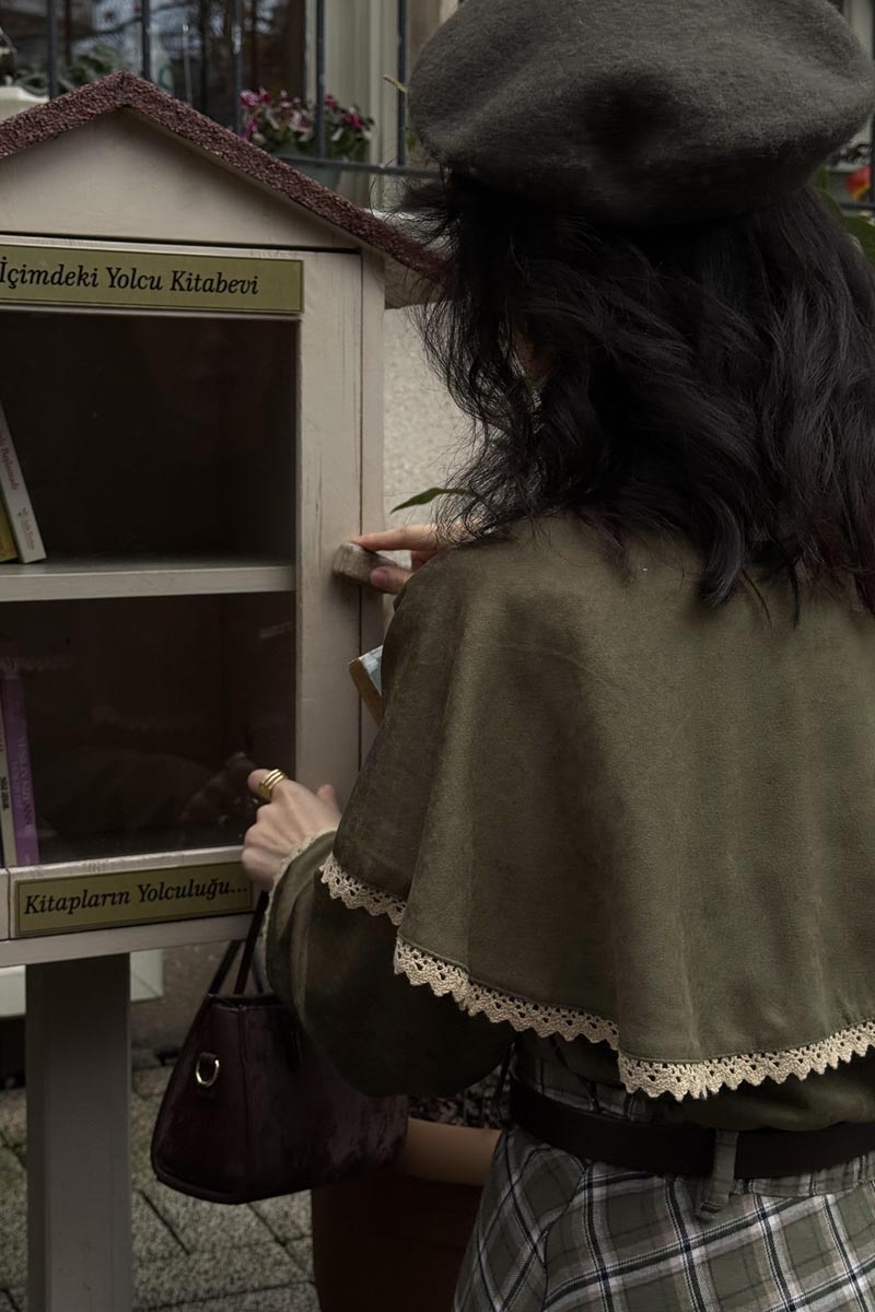 Dantelli Süet Gömlek Haki
