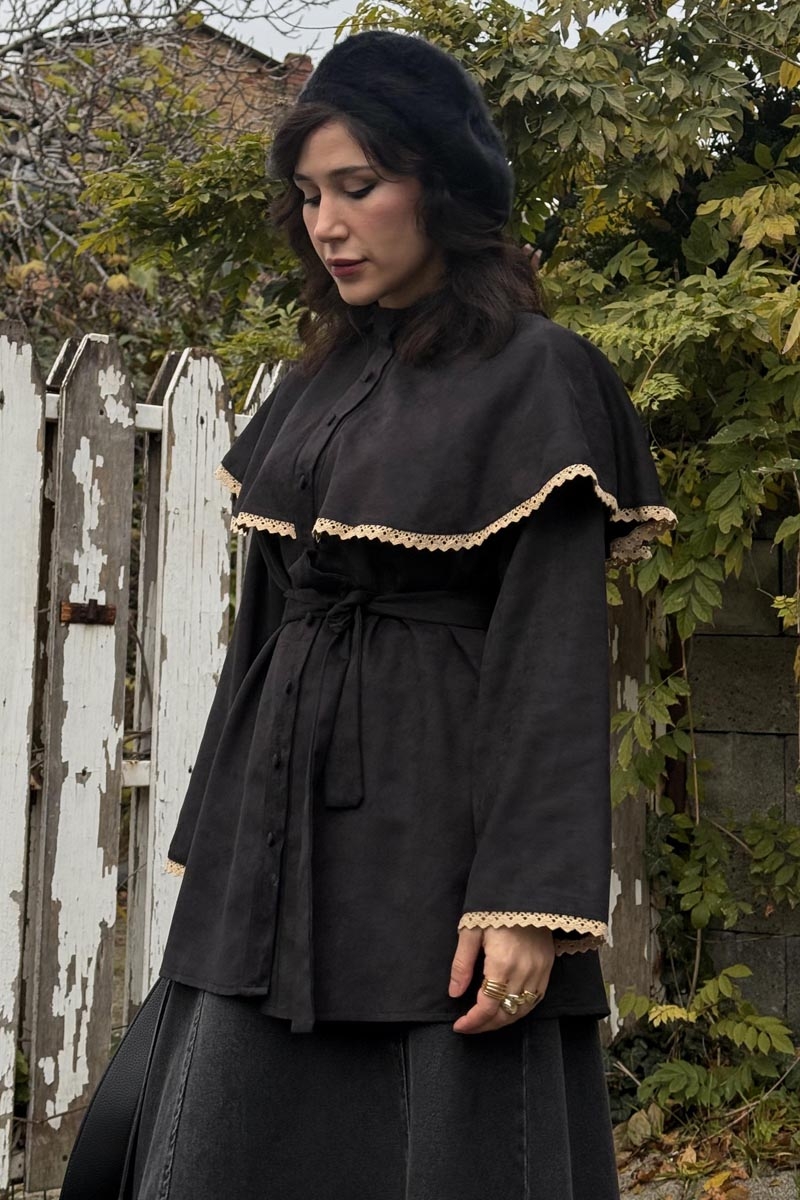 Dantelli Süet Gömlek Siyah