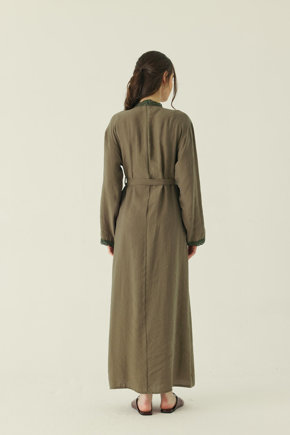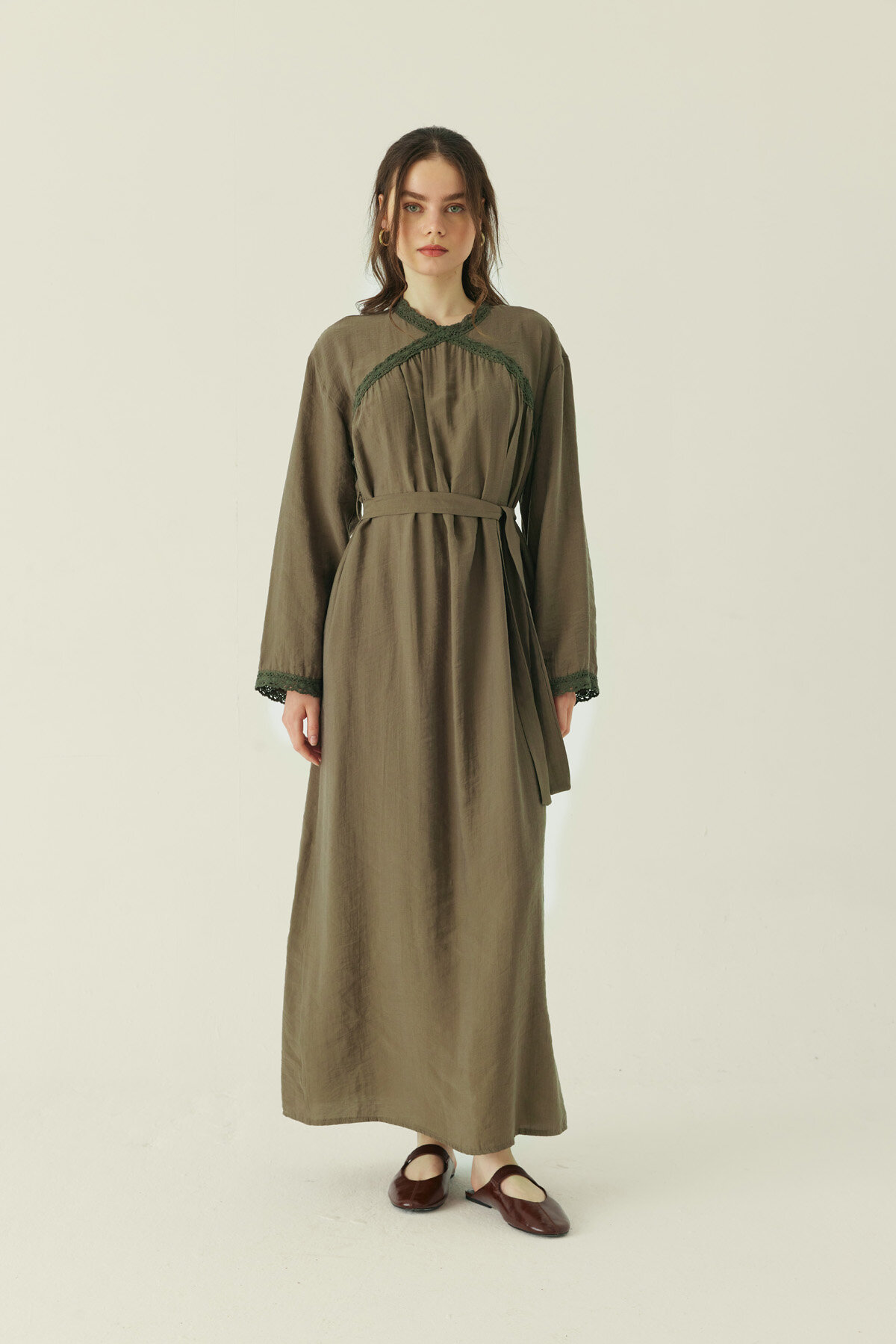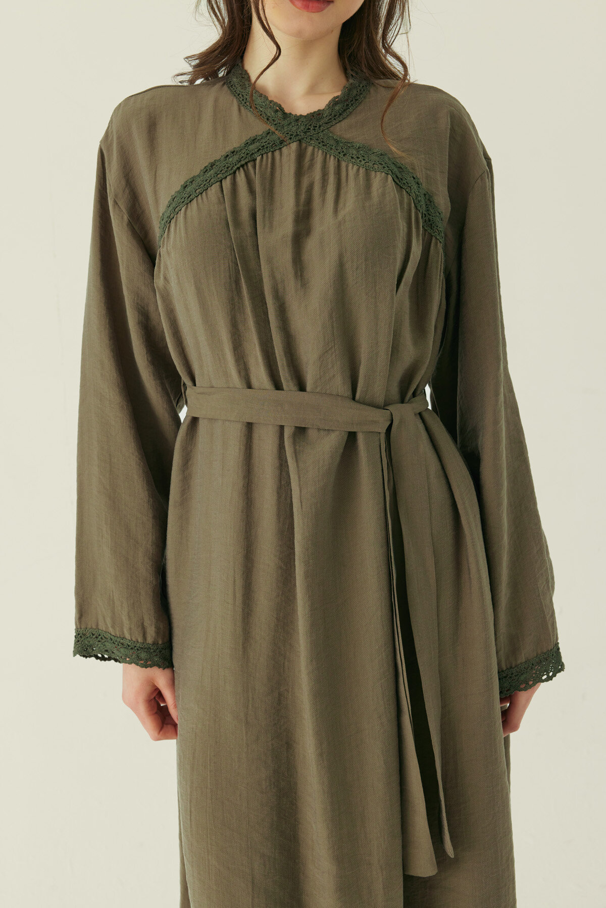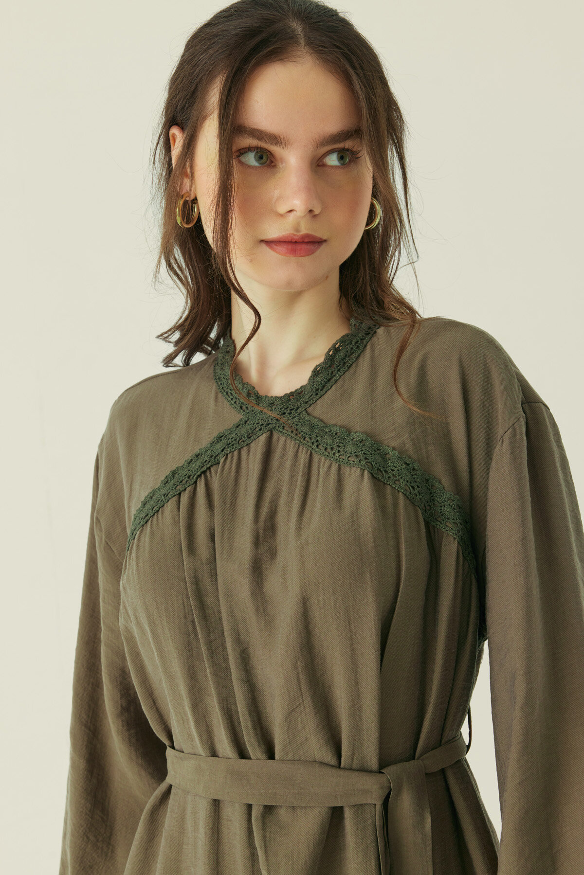 Dantelli Tensel Elbise Haki