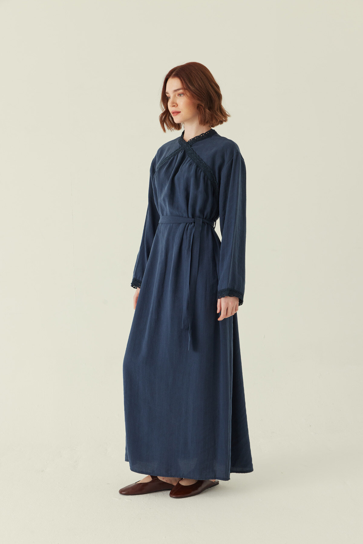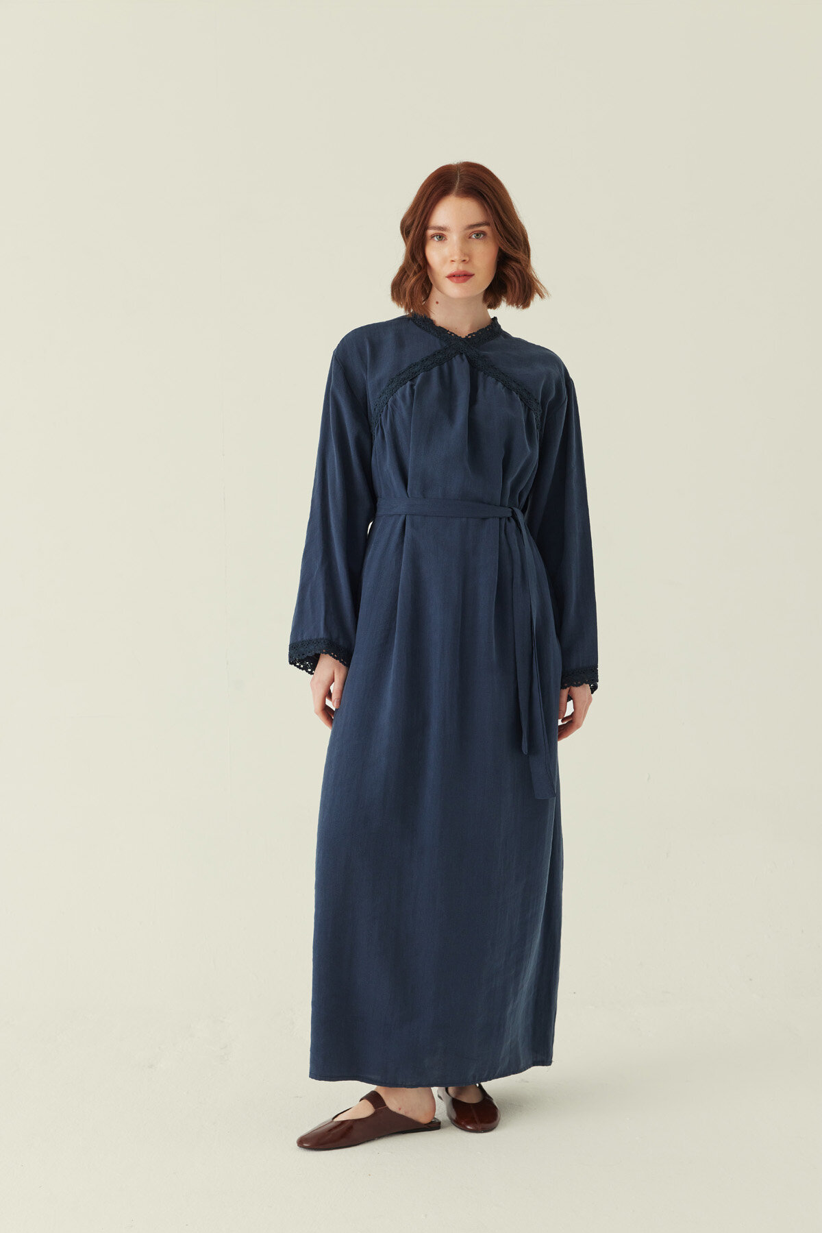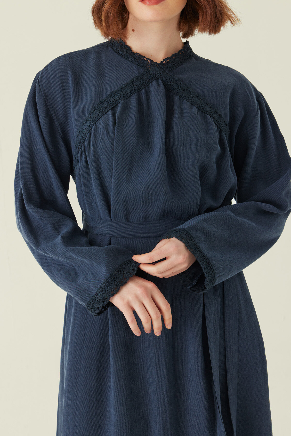 Dantelli Tensel Elbise Lacivert