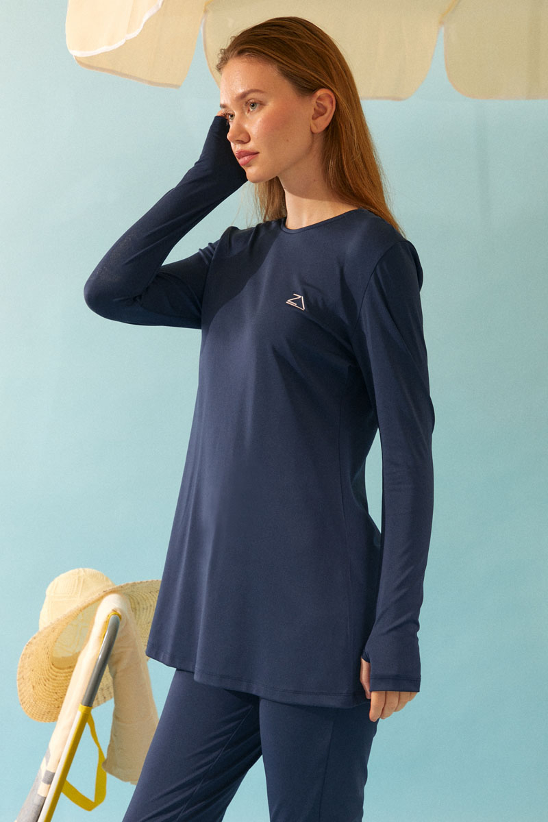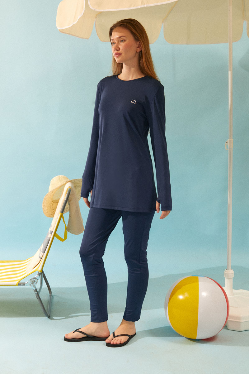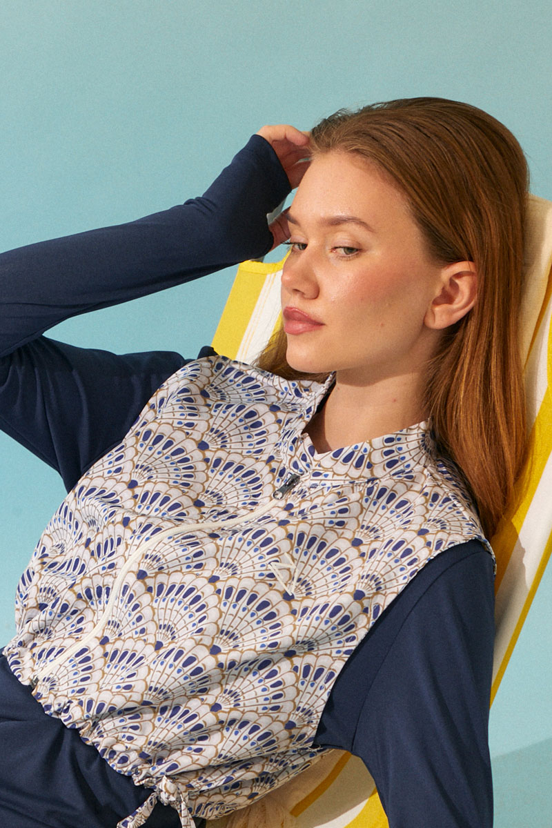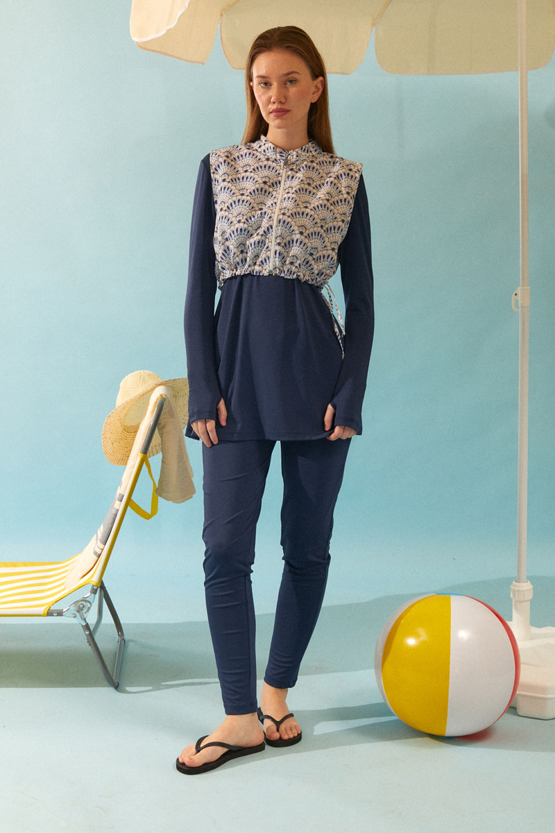Deniz Kabuğu Desenli Tesettür Mayo Lacivert