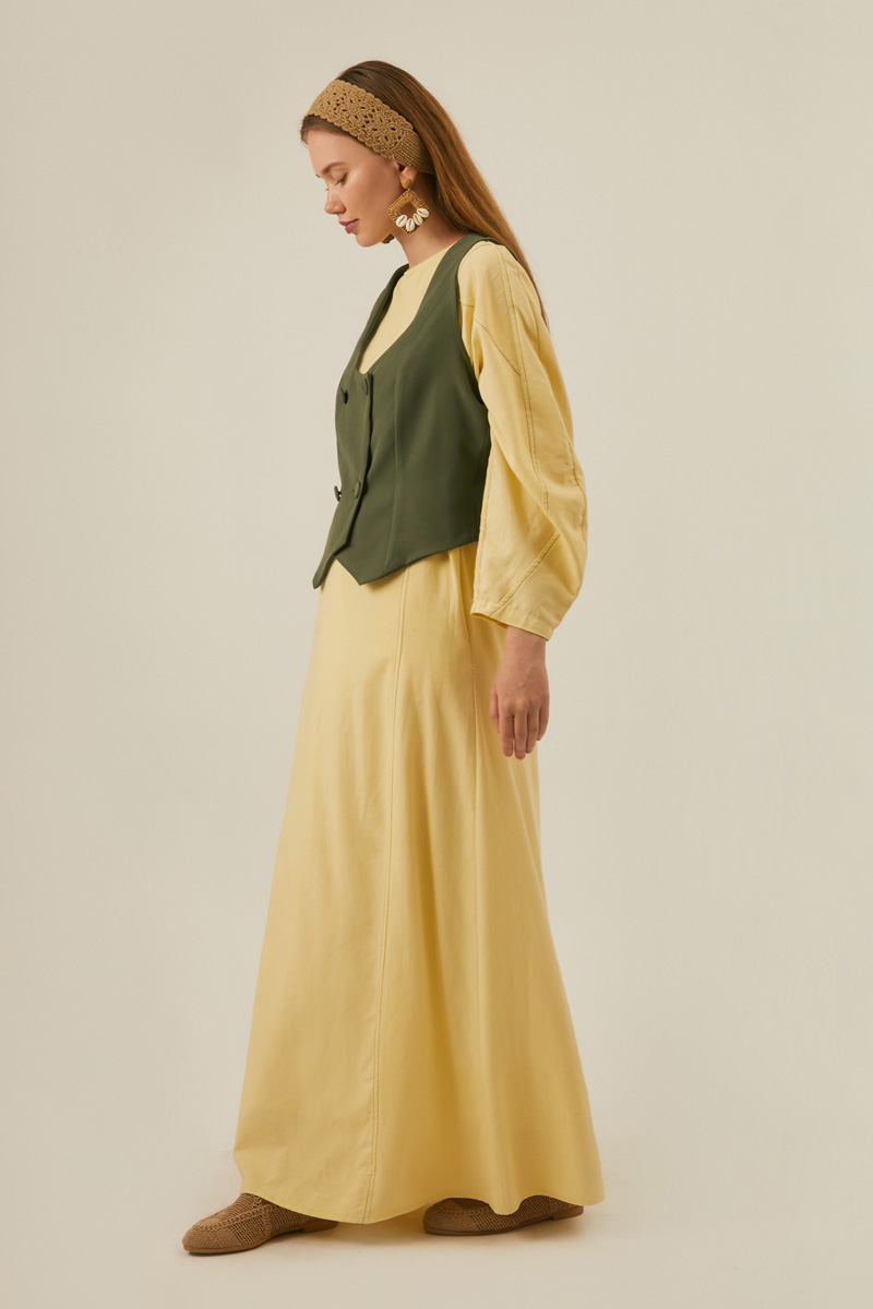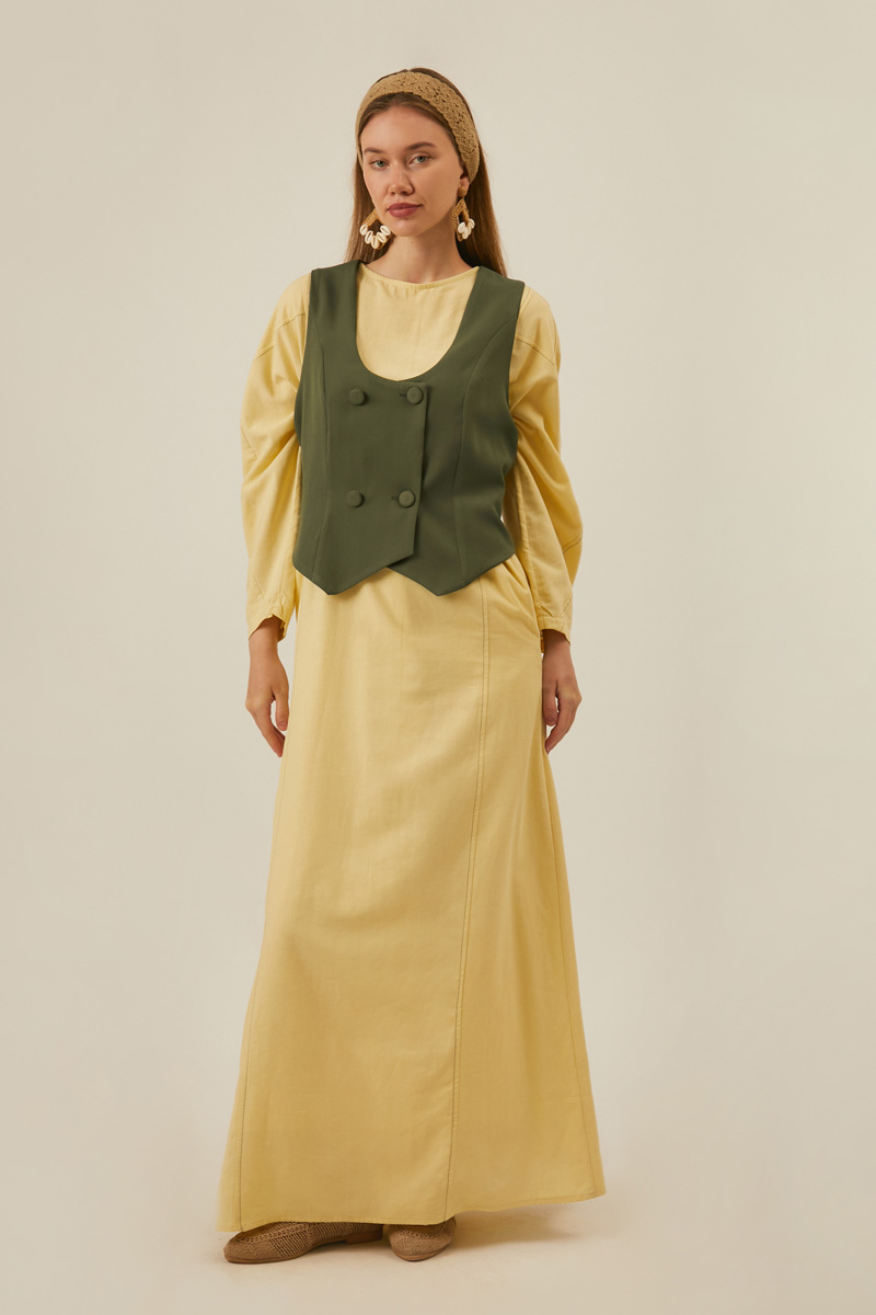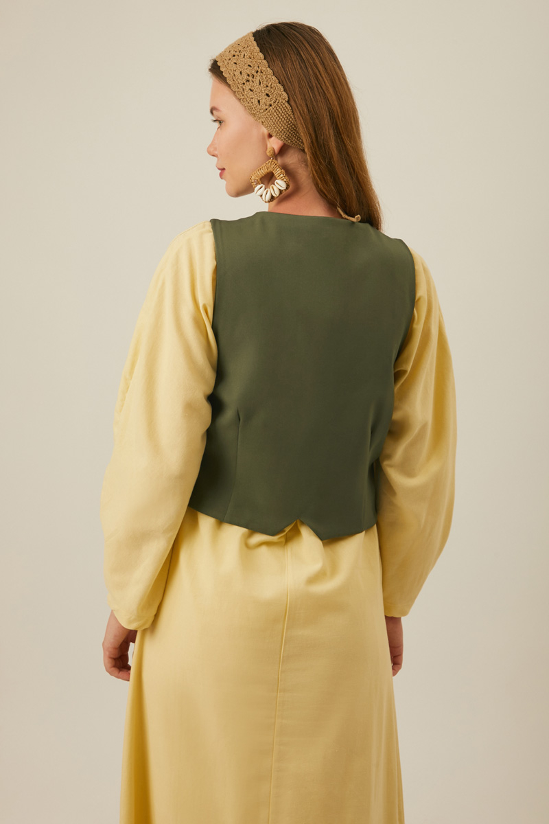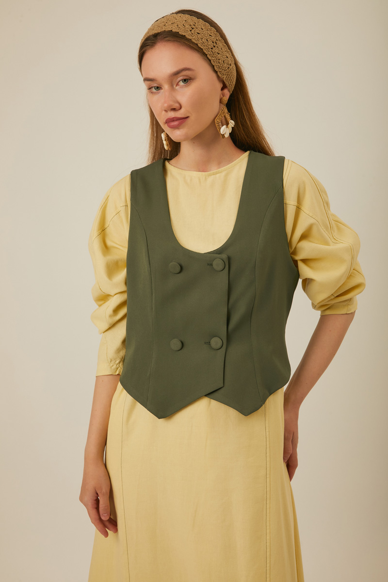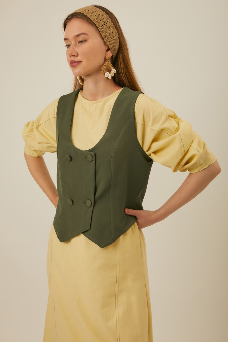 Derin Yaka Yelek Haki