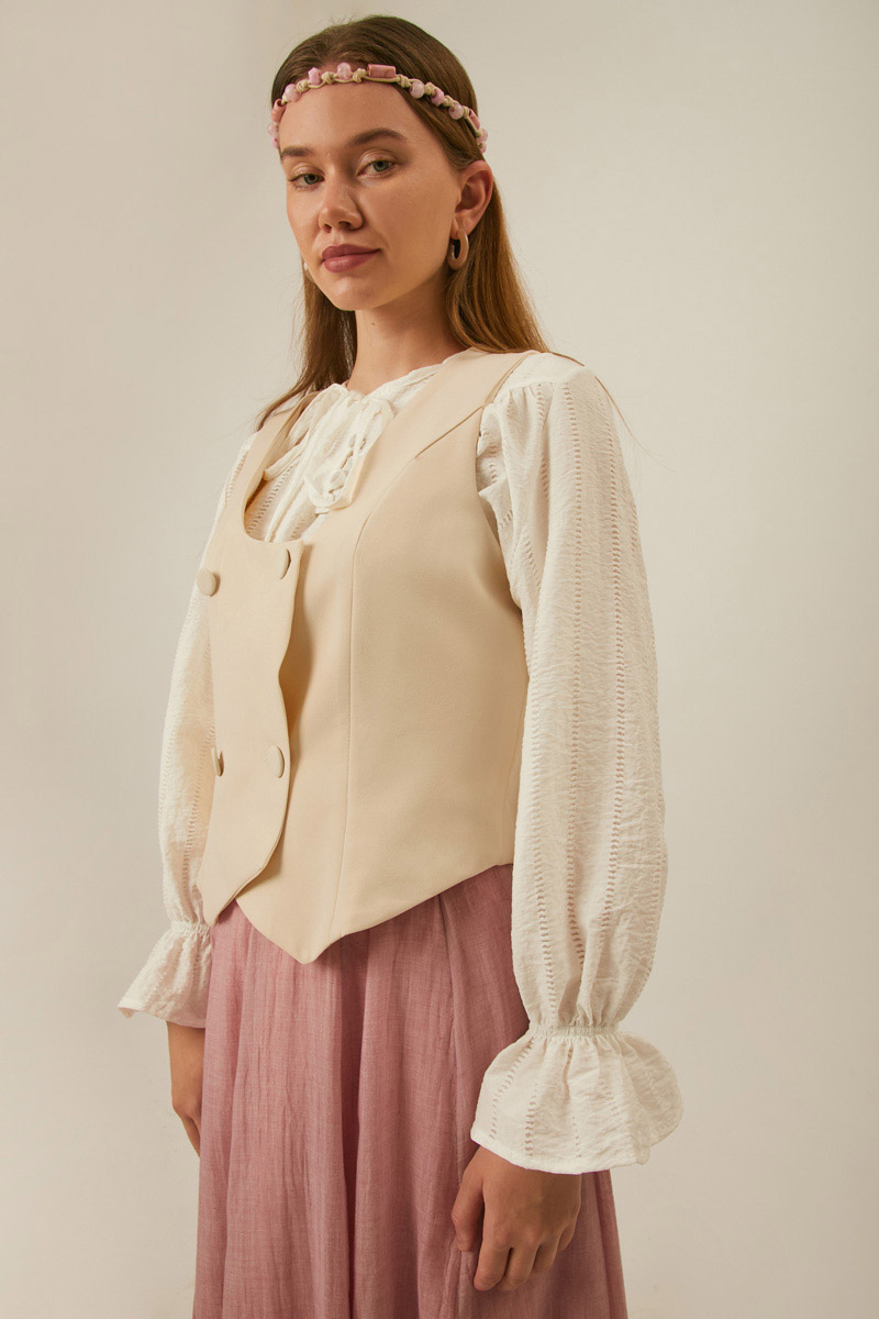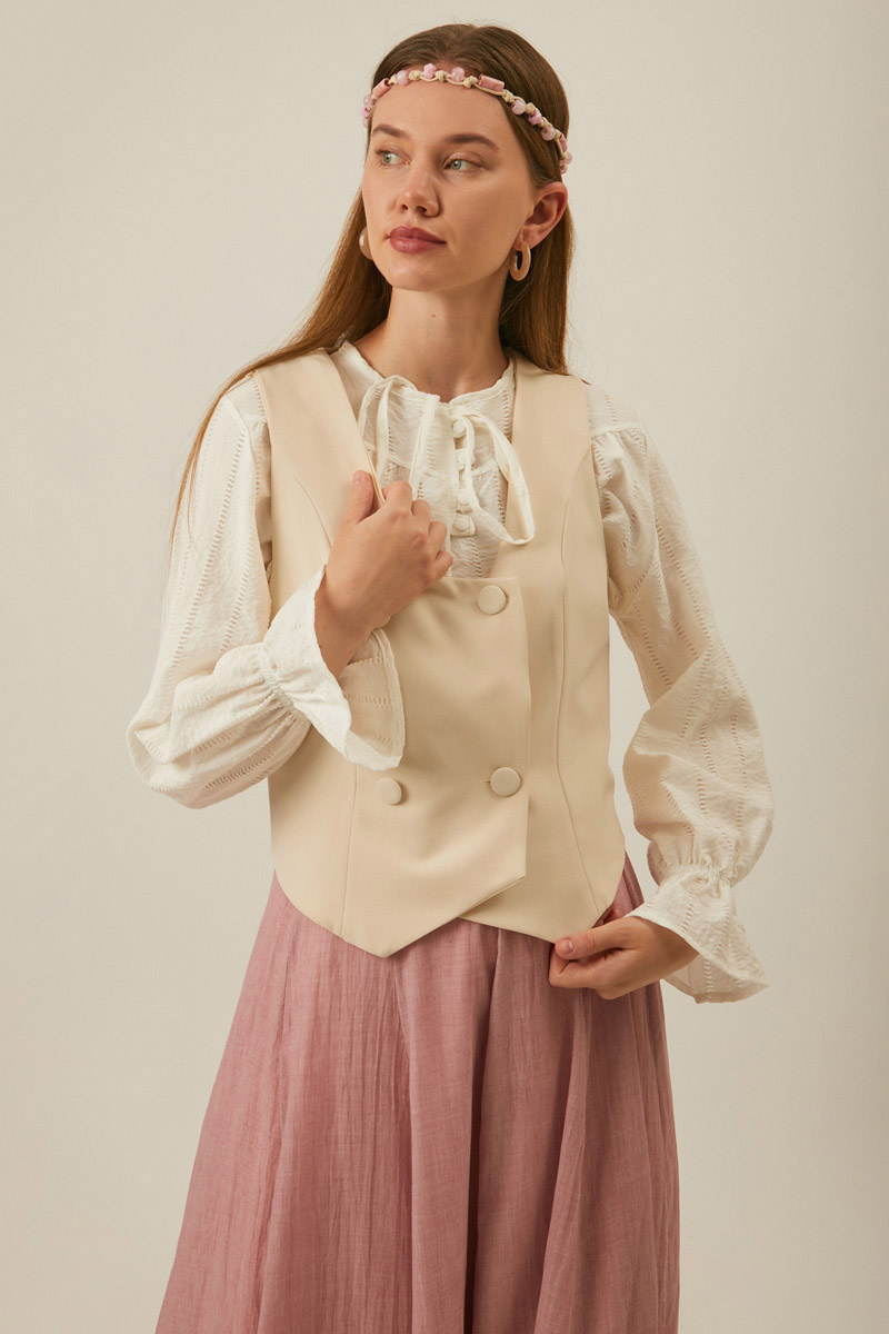 Derin Yaka Yelek Taş. Kruvaze kapamadır. Astarsızdır. Derin U yakalıdır. Kup dikiş detayı vardır. Elbise ve etek kombinlerinizde tercih edebilirsiniz. Mevsimlik üründür.