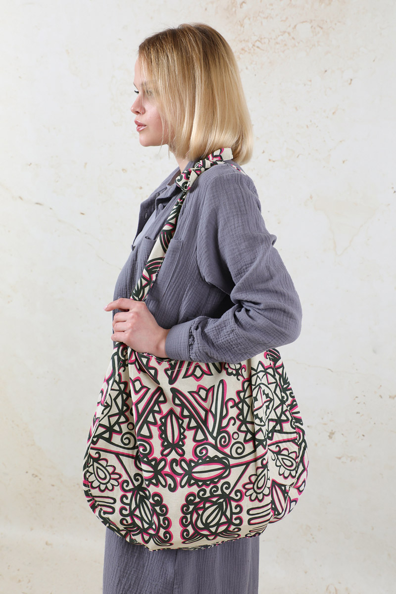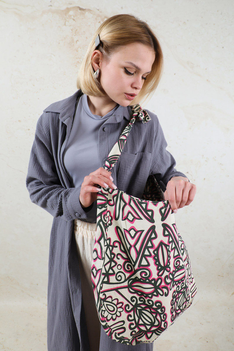 Desenli Bağlamalı Çanta Pembe. Çantanın iki ucu biribirine bağlamalıdır,kapaması çıtçıtlıdır,iç kısmında ekstra olarak küçük cebi mevcuttur.