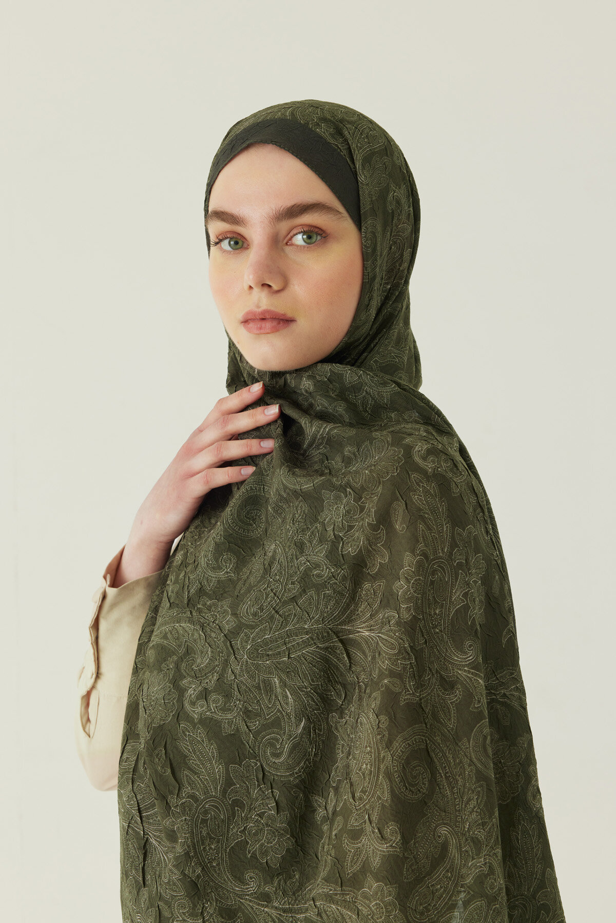 Desenli Bambu Şal Haki