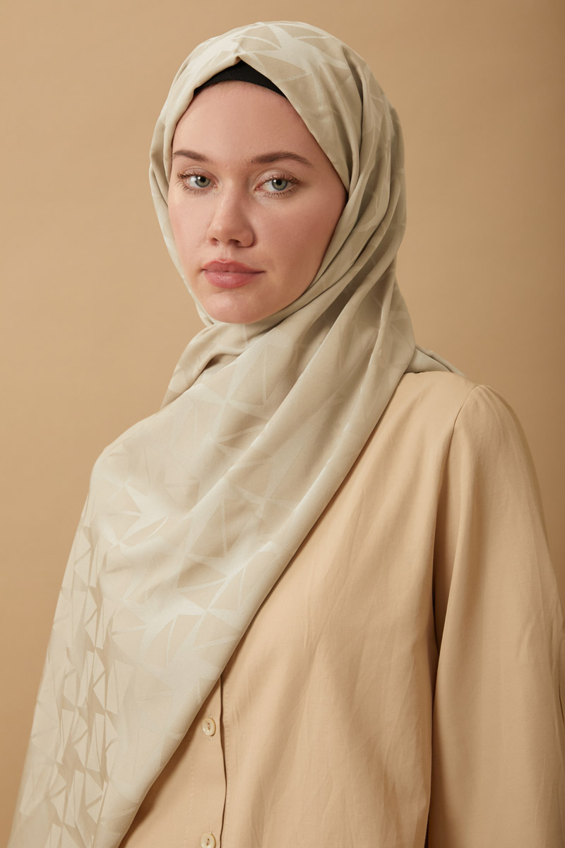 Desenli Jakar Şal Bej, Modern ve zamansız tasarımıyla öne çıkan jakarlı polyester şal, geometrik desenleri ve kaymaz yapısıyla hem günlük hem de özel kombinlerde şıklığınızı tamamlar. Hafif tok yapısı sayesinde kolay şekil alır ve gün boyu formunu korur. Polyester içeriği sayesinde ütü gerektirmez ve hızlı kurur, böylece pratik kullanım sunar.