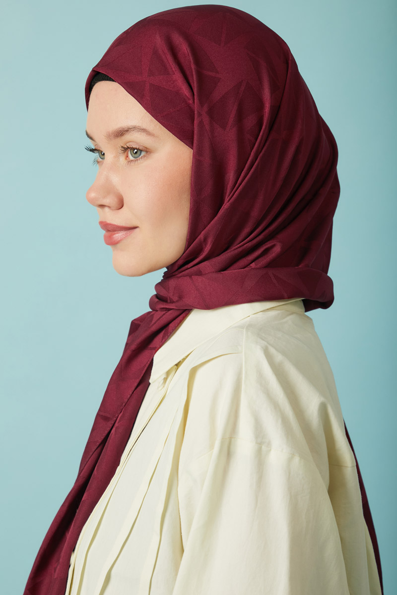 Desenli Jakar Şal Bordo