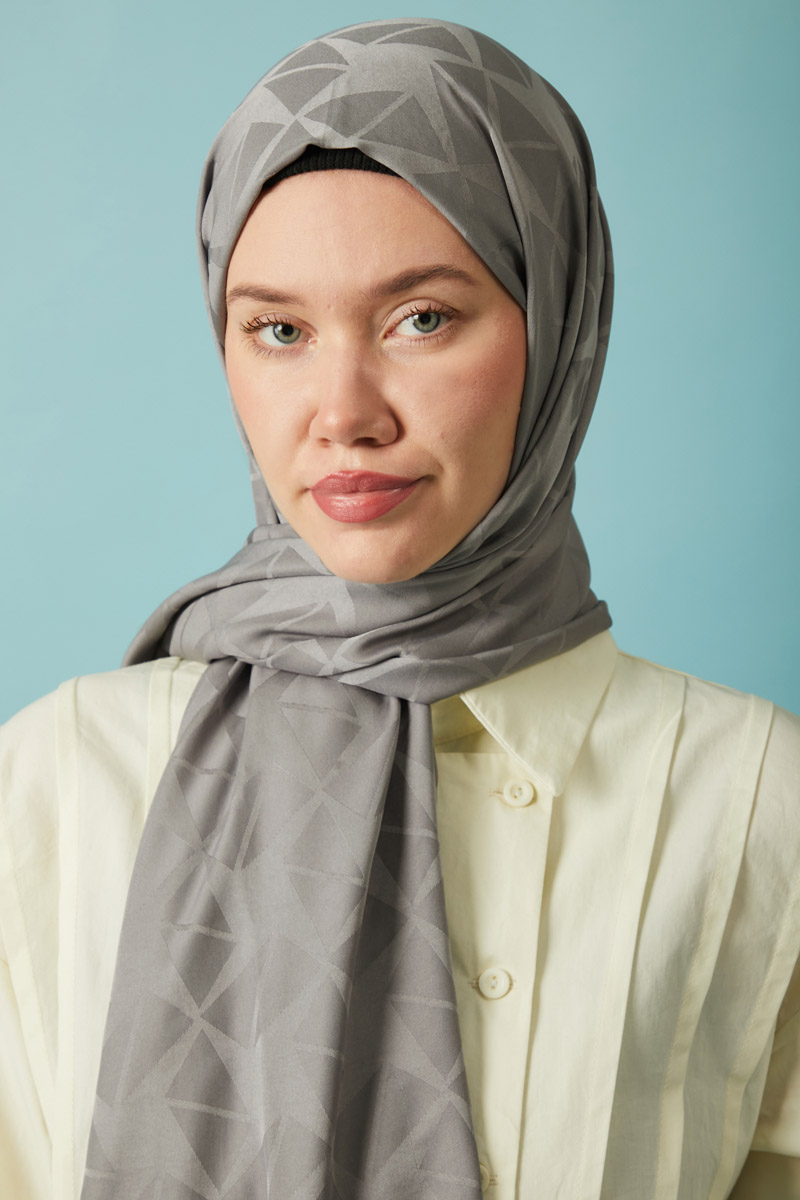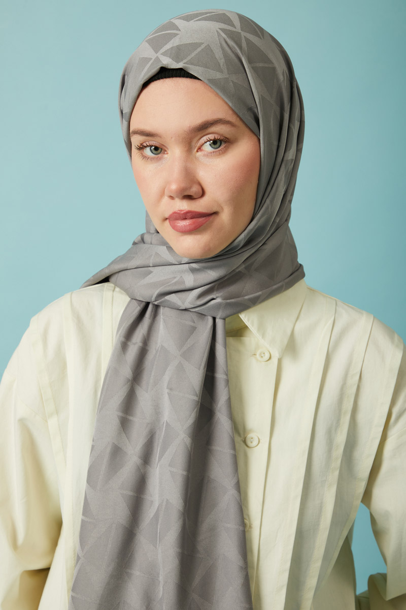 Desenli Jakar Şal Gri, Modern ve zamansız tasarımıyla öne çıkan jakarlı polyester şal, geometrik desenleri ve kaymaz yapısıyla hem günlük hem de özel kombinlerde şıklığınızı tamamlar. Hafif tok yapısı sayesinde kolay şekil alır ve gün boyu formunu korur. Polyester içeriği sayesinde ütü gerektirmez ve hızlı kurur, böylece pratik kullanım sunar.