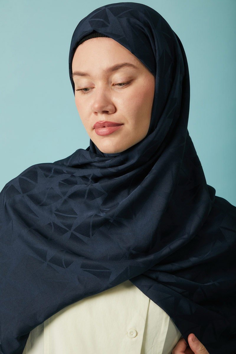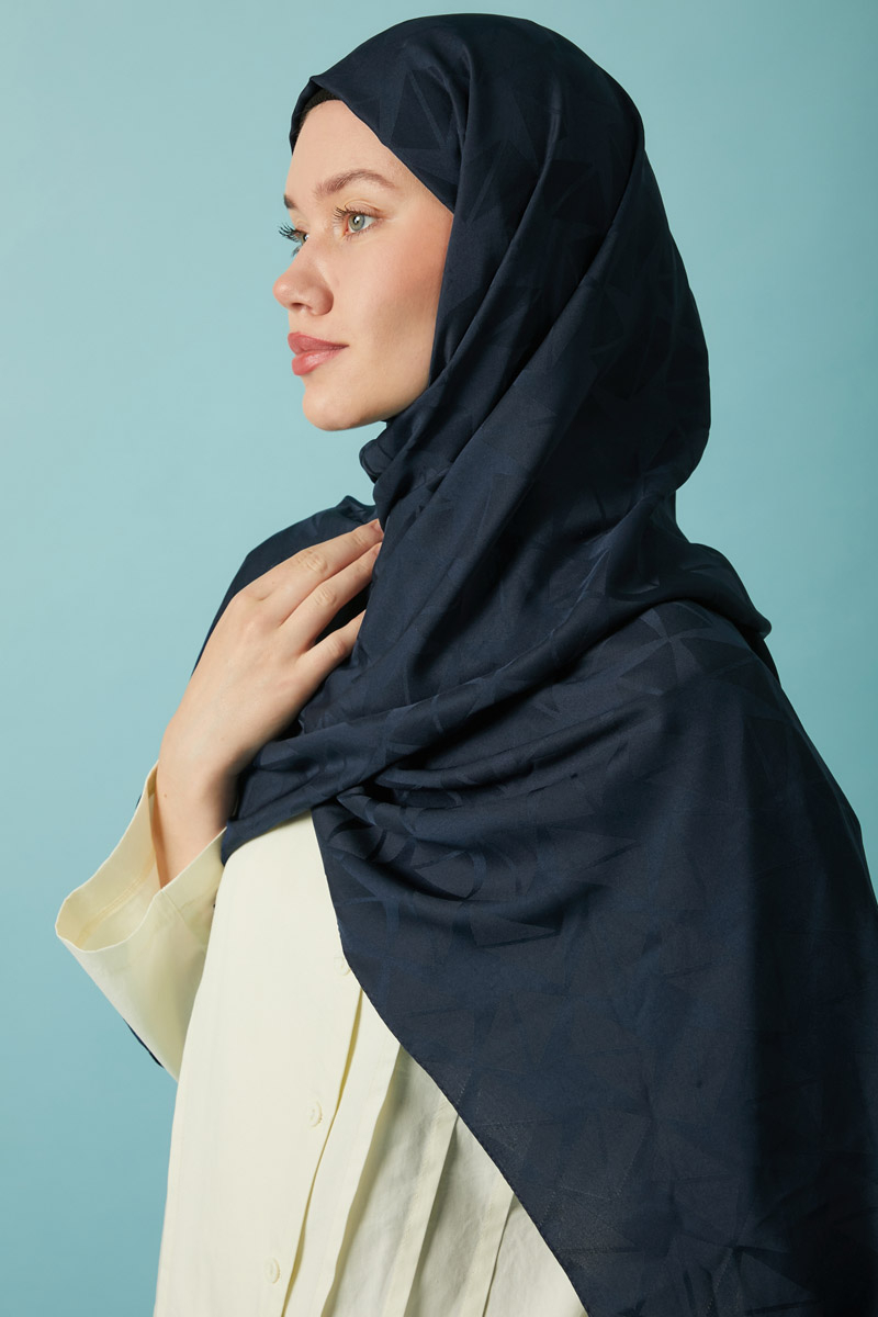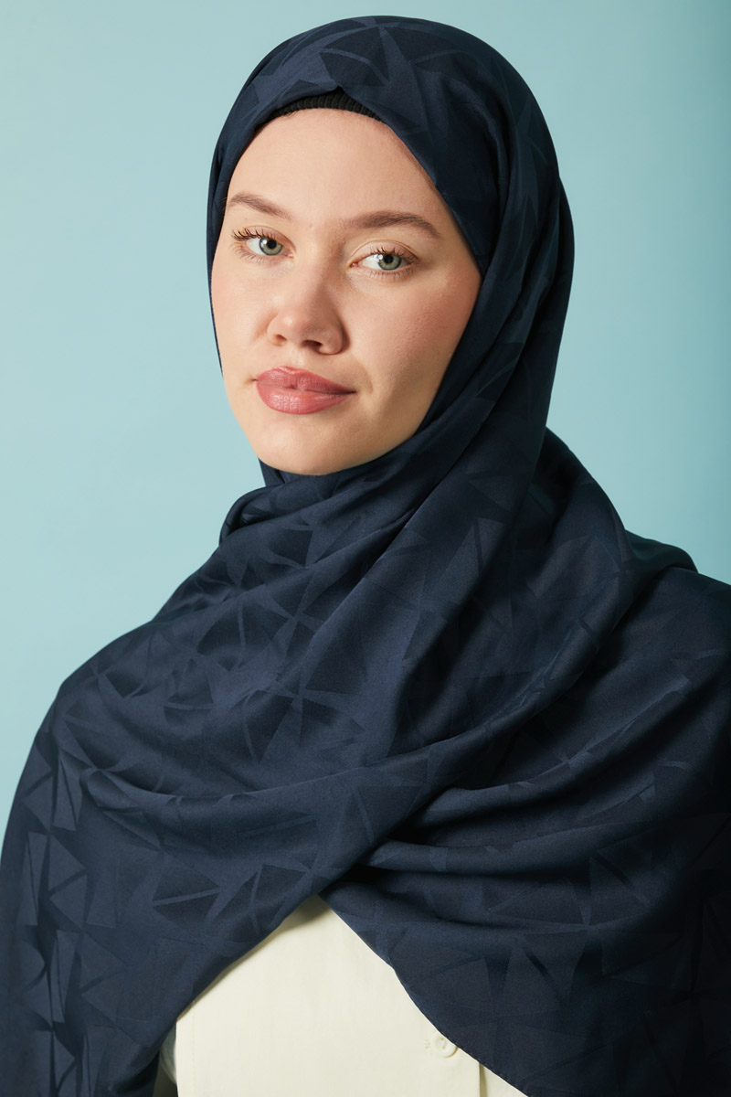 Desenli Jakar Şal Lacivert, Modern ve zamansız tasarımıyla öne çıkan jakarlı polyester şal, geometrik desenleri ve kaymaz yapısıyla hem günlük hem de özel kombinlerde şıklığınızı tamamlar. Hafif tok yapısı sayesinde kolay şekil alır ve gün boyu formunu korur. Polyester içeriği sayesinde ütü gerektirmez ve hızlı kurur, böylece pratik kullanım sunar.