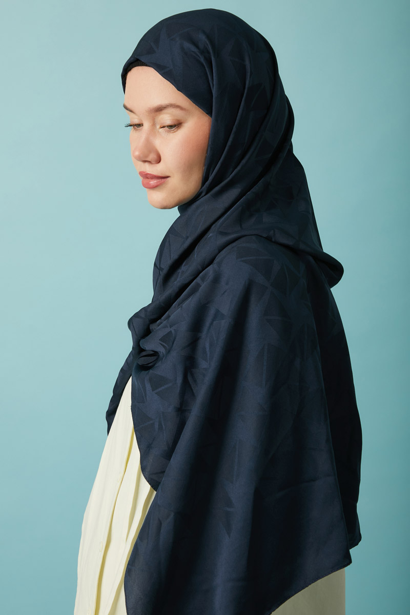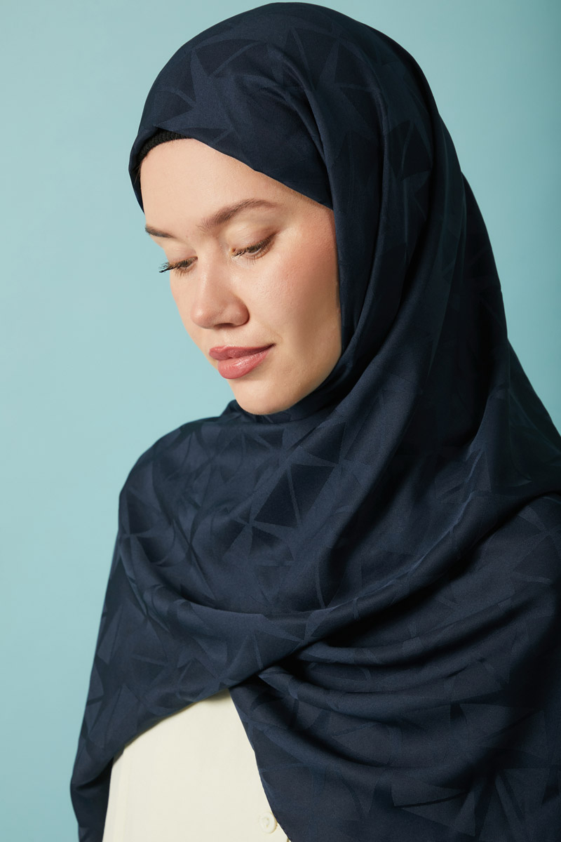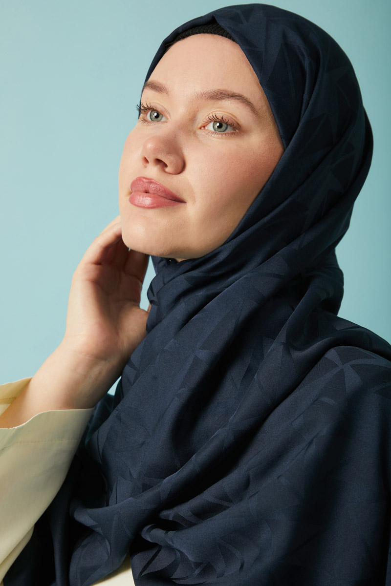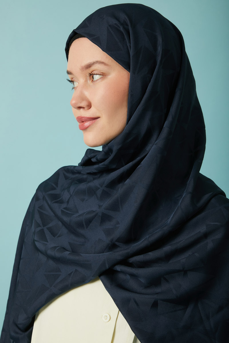 Desenli Jakar Şal Lacivert, Modern ve zamansız tasarımıyla öne çıkan jakarlı polyester şal, geometrik desenleri ve kaymaz yapısıyla hem günlük hem de özel kombinlerde şıklığınızı tamamlar. Hafif tok yapısı sayesinde kolay şekil alır ve gün boyu formunu korur. Polyester içeriği sayesinde ütü gerektirmez ve hızlı kurur, böylece pratik kullanım sunar.