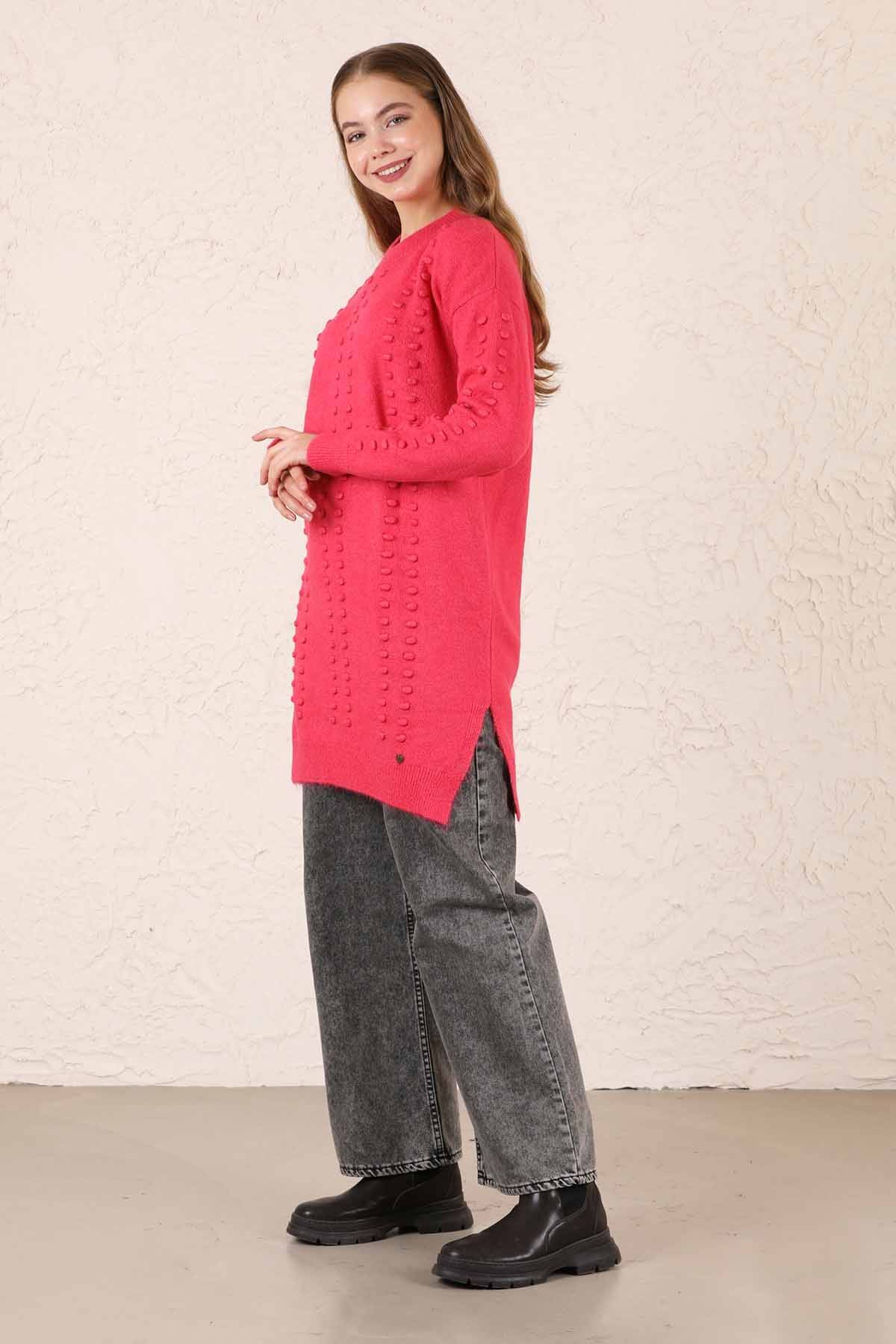 Desenli Kazak Pembe. Örme trikodur. Yumuşak dokuludr batma yapmaz. Bisiklet yaka. Rahat kalıp