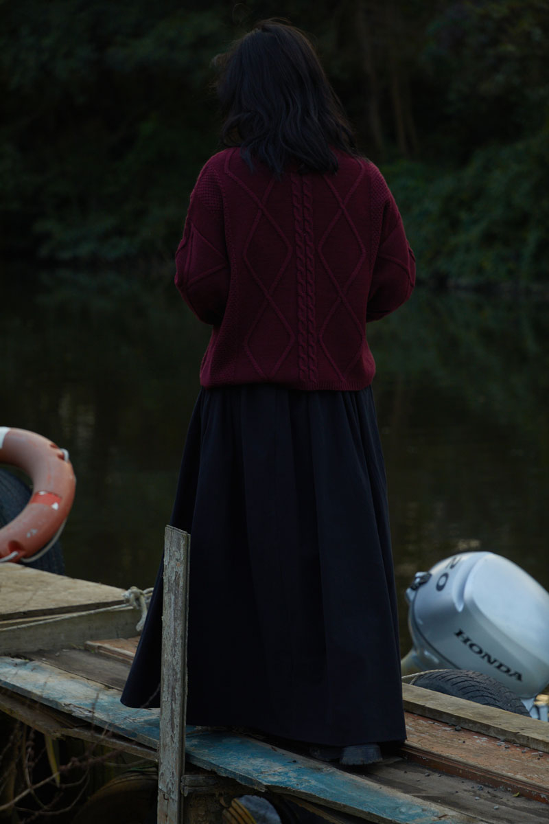 With its elegant texture and relaxed fit, this sweater becomes a standout piece in your winter wardrobe. The diamond-patterned knit detail on the front adds a touch of classic sophistication, while the loose silhouette ensures comfortable wear. Perfect for layering with jeans, skirts, and shirts, it offers a modern and stylish look.