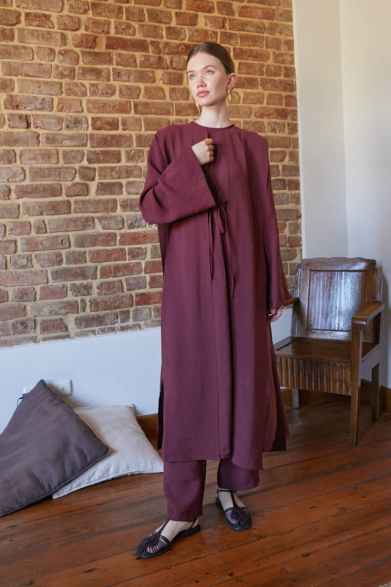 Diena Tunik Takım Bordo, zamansız sade şıklığın en güzel örneklerinden biri. Özellikle sıcak havalarda nefes alabilen yapısı sayesinde terletmeden gün boyu ferahlık sağlar.