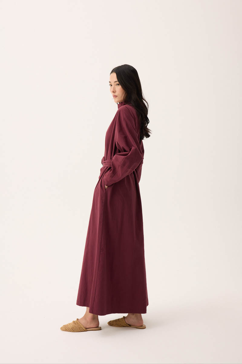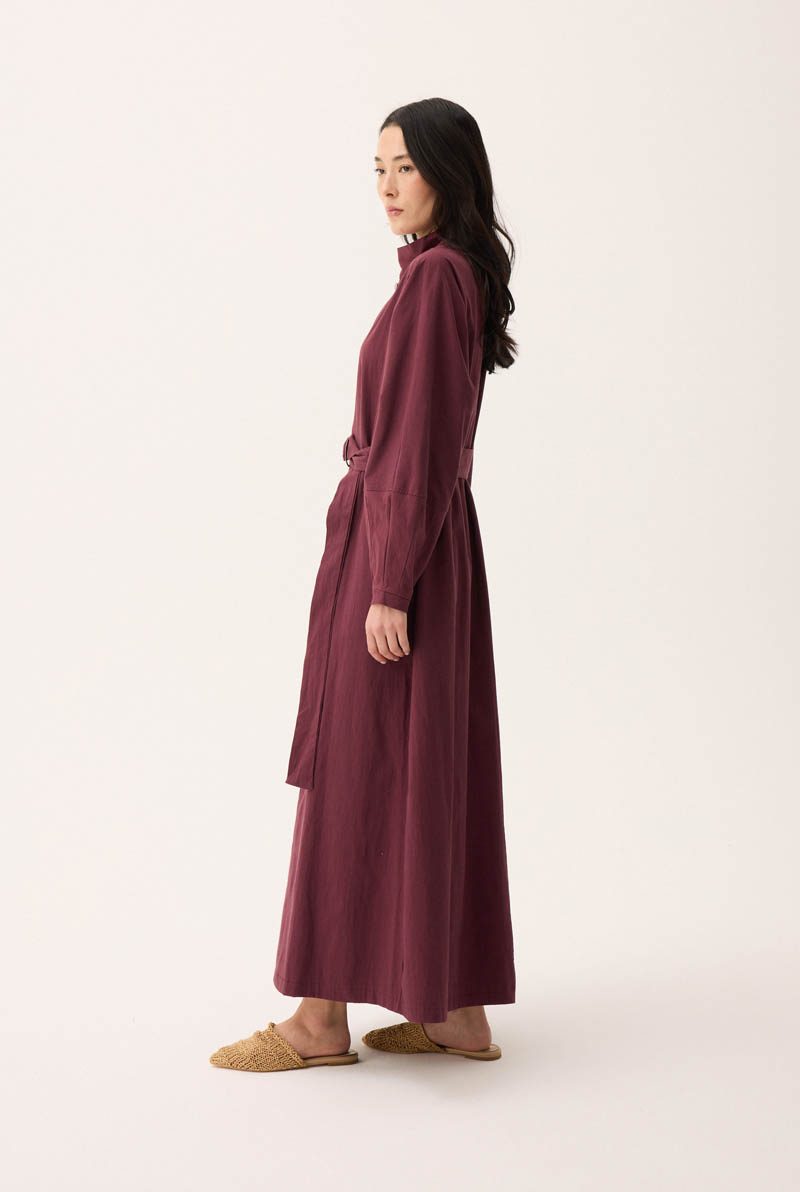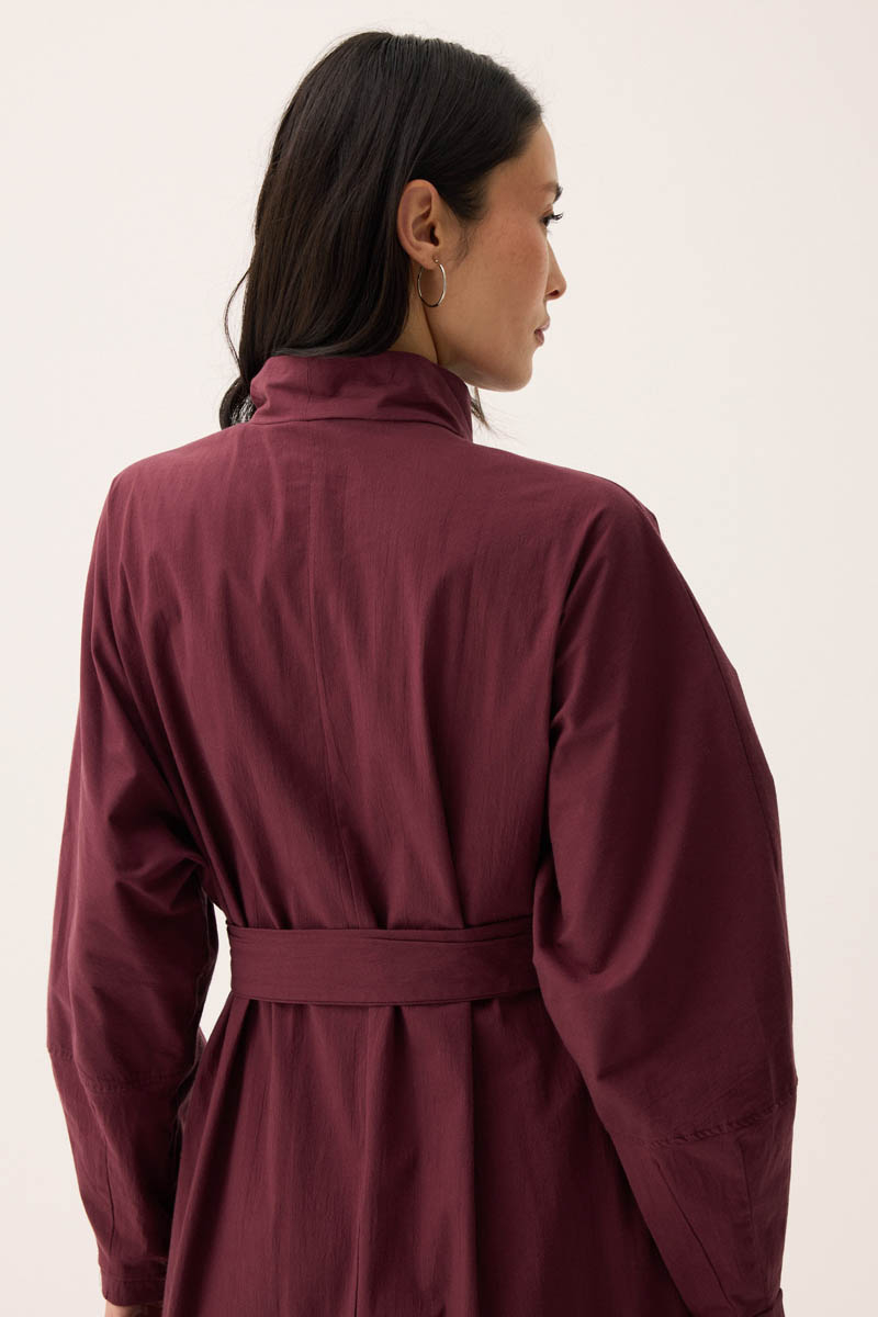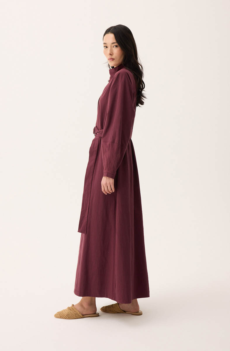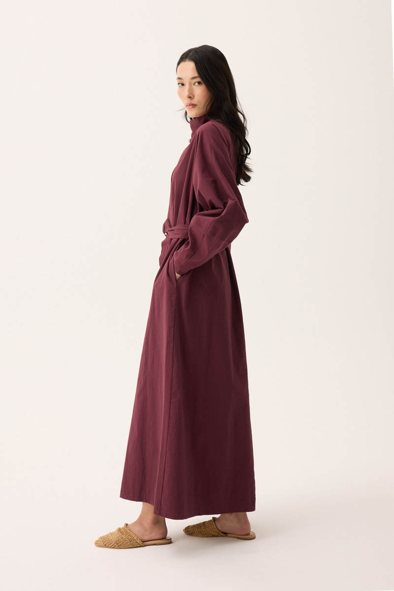 Dik Yaka Düğmeli Elbise Bordo. Dik yakadır, yakada önden a pile tasarım olup brit ilik ve metal düğme detaylıdır, düşük omuzludur kolludur, astarlıdır, yandan ceplidir, metal toka kuşaklıdır, Günlük kullanım ve özel günlerinizde tercih edebilirsiniz.