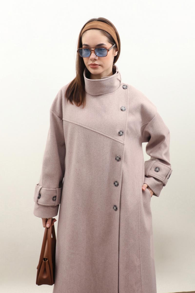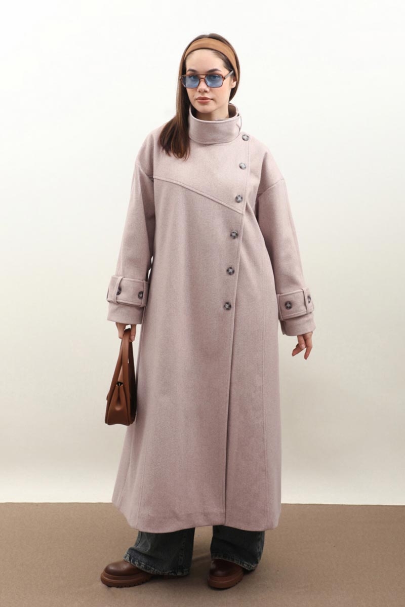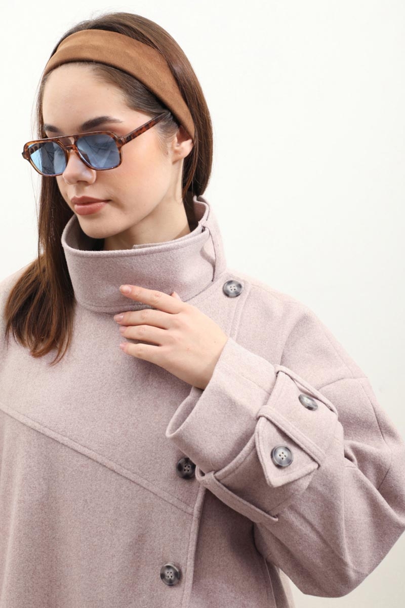 Dik Yaka Kruvaze Kaban Açık Vizon. Yakdan ince apolet detaylıdır, kruvaze kapama ve düğmelidir, yaka düğmesi açılıp kullanılabilir, dilerseniz bisiklet yaka ve dik yaka olarakta kullanabilirsiniz. Düşük kolludur, kalın maşetlidir, önden dikiş detaylıdır, yandan gizli ceplidir, astarlıdır, Günlük kullanım ve özel günlerinizde tercih edebilirsiniz.