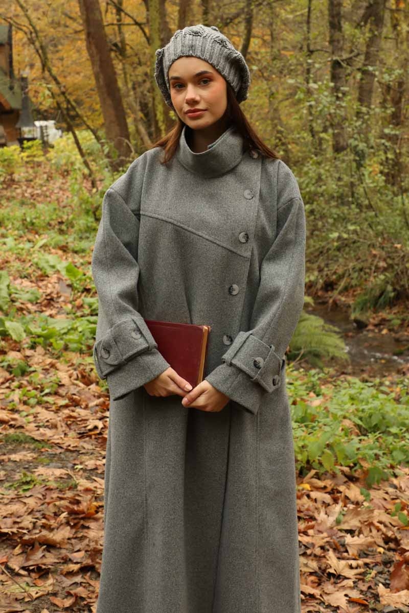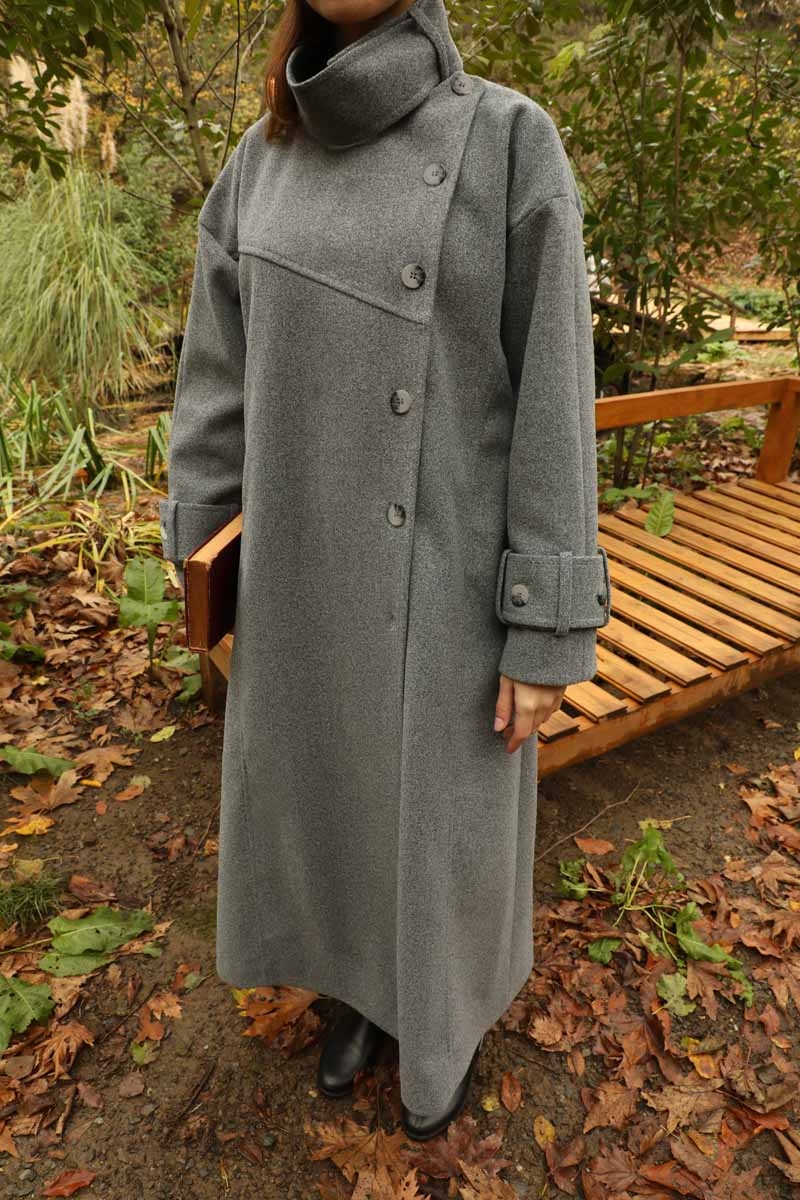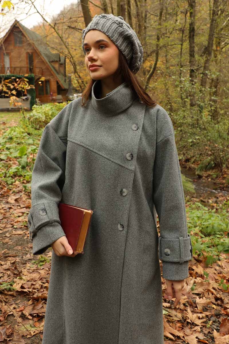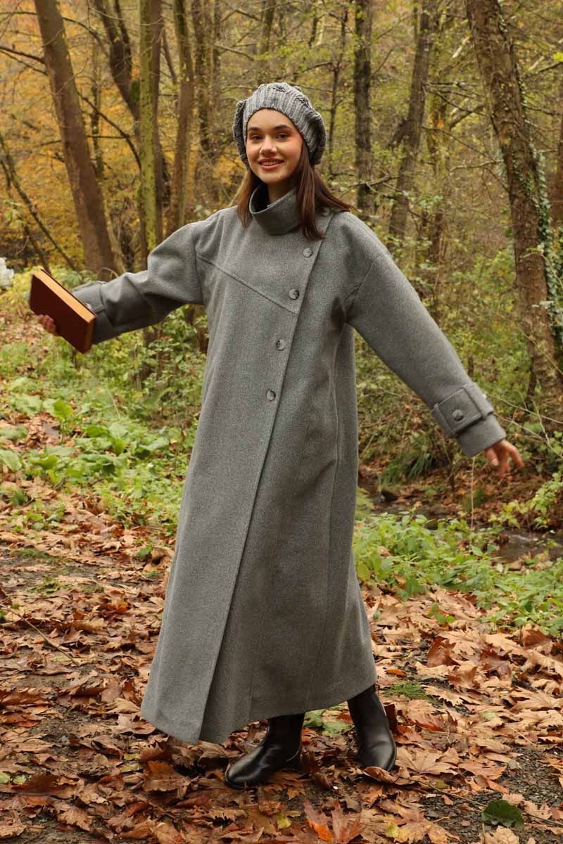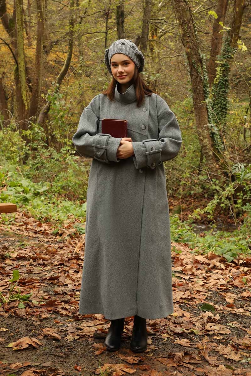 Dik Yaka Kruvaze Kaban Gri. Yakdan ince apolet detaylıdır, kruvaze kapama ve düğmelidir, yaka düğmesi açılıp kullanılabilir, dilerseniz bisiklet yaka ve dik yaka olarakta kullanabilirsiniz. Düşük kolludur, kalın maşetlidir, önden dikiş detaylıdır, yandan gizli ceplidir, astarlıdır, Günlük kullanım ve özel günlerinizde tercih edebilirsiniz.