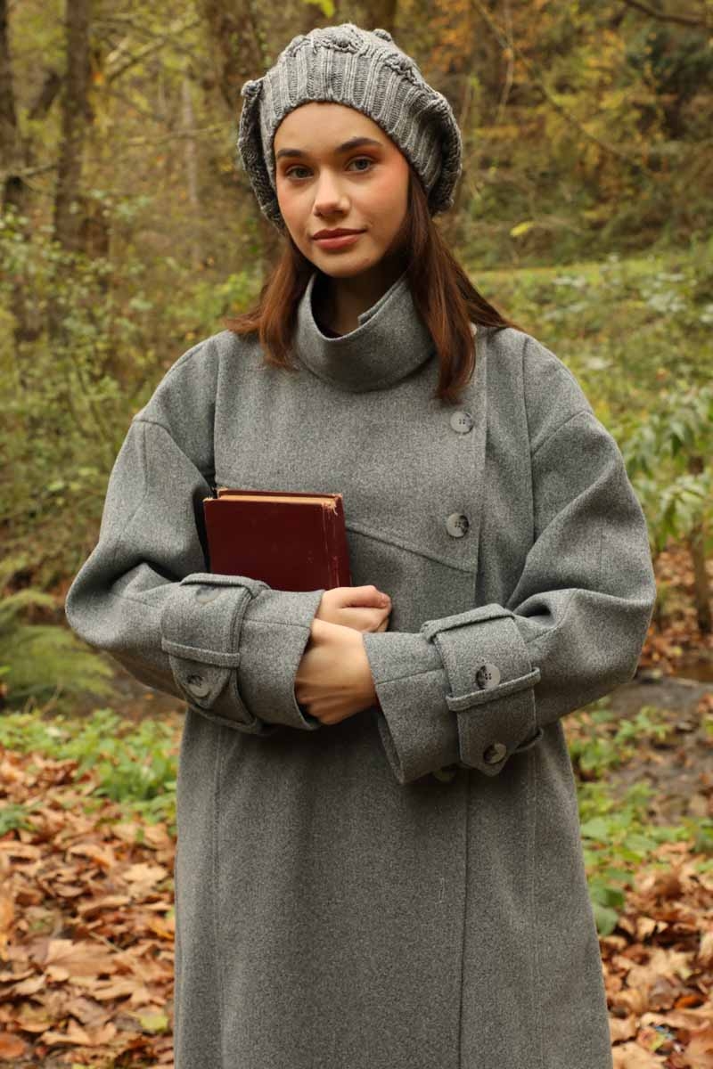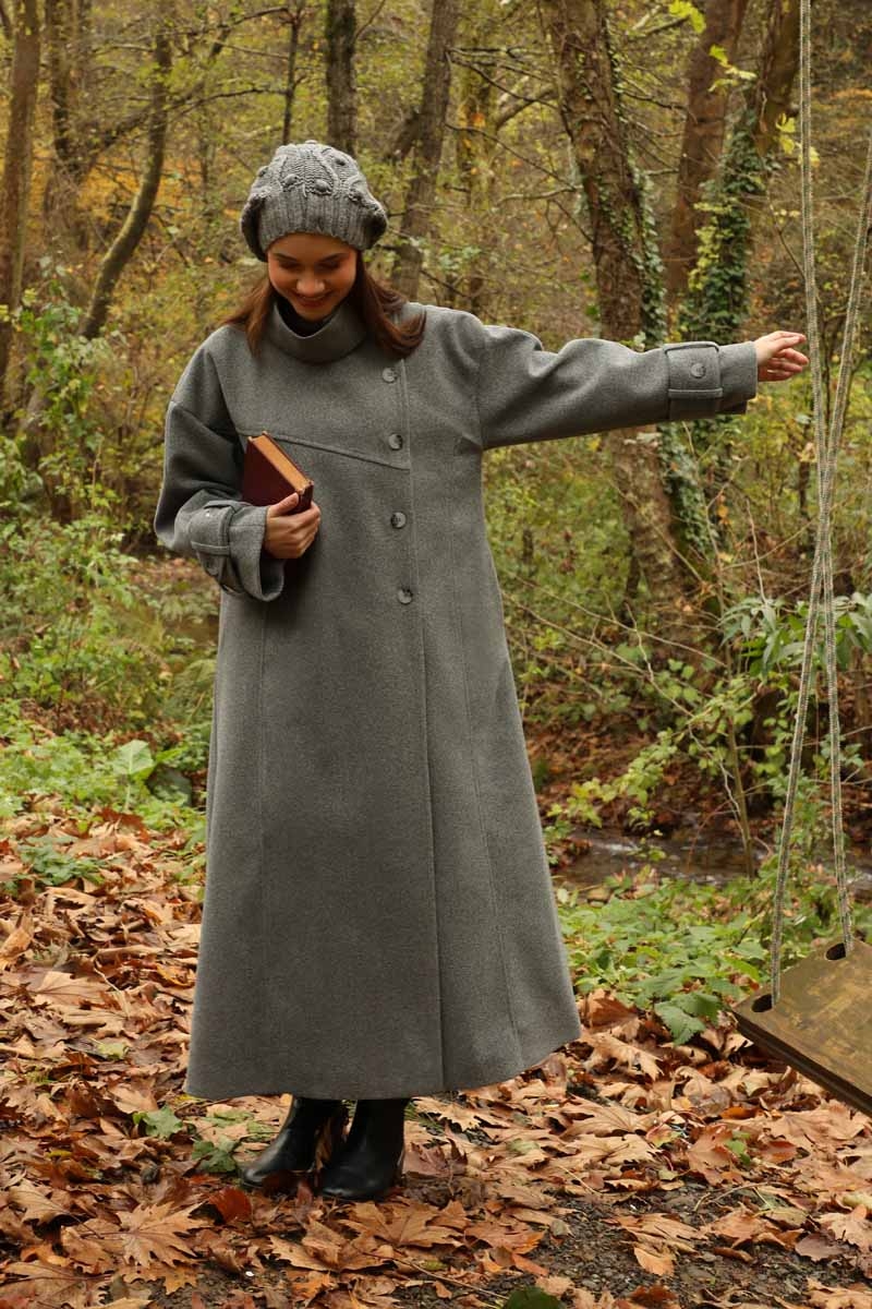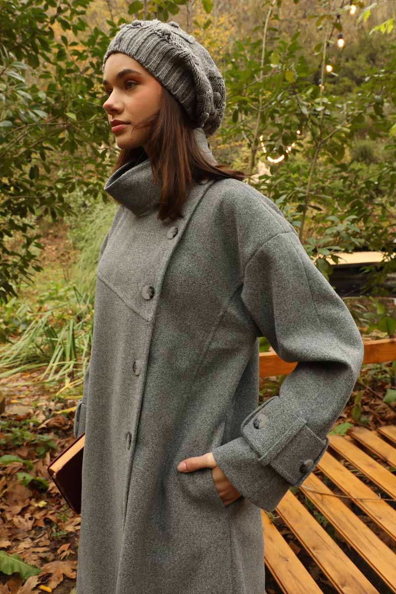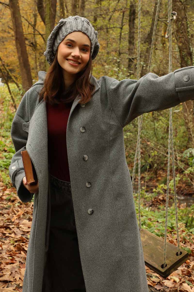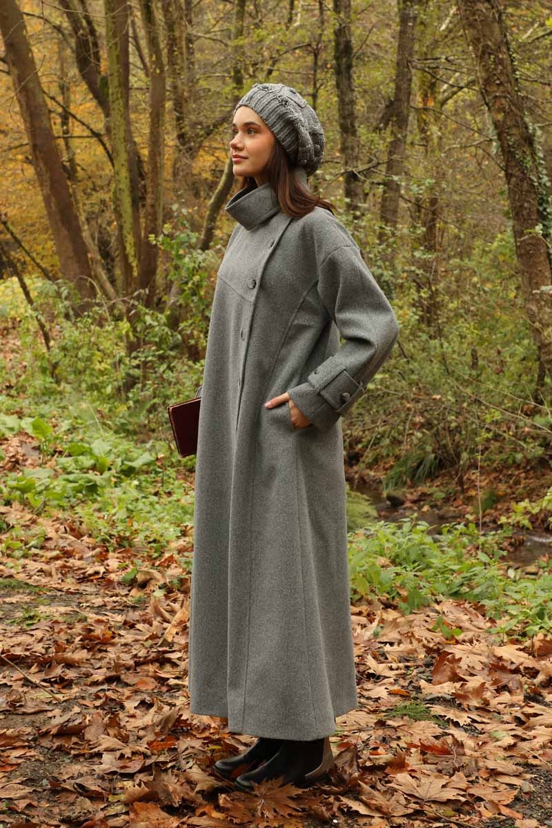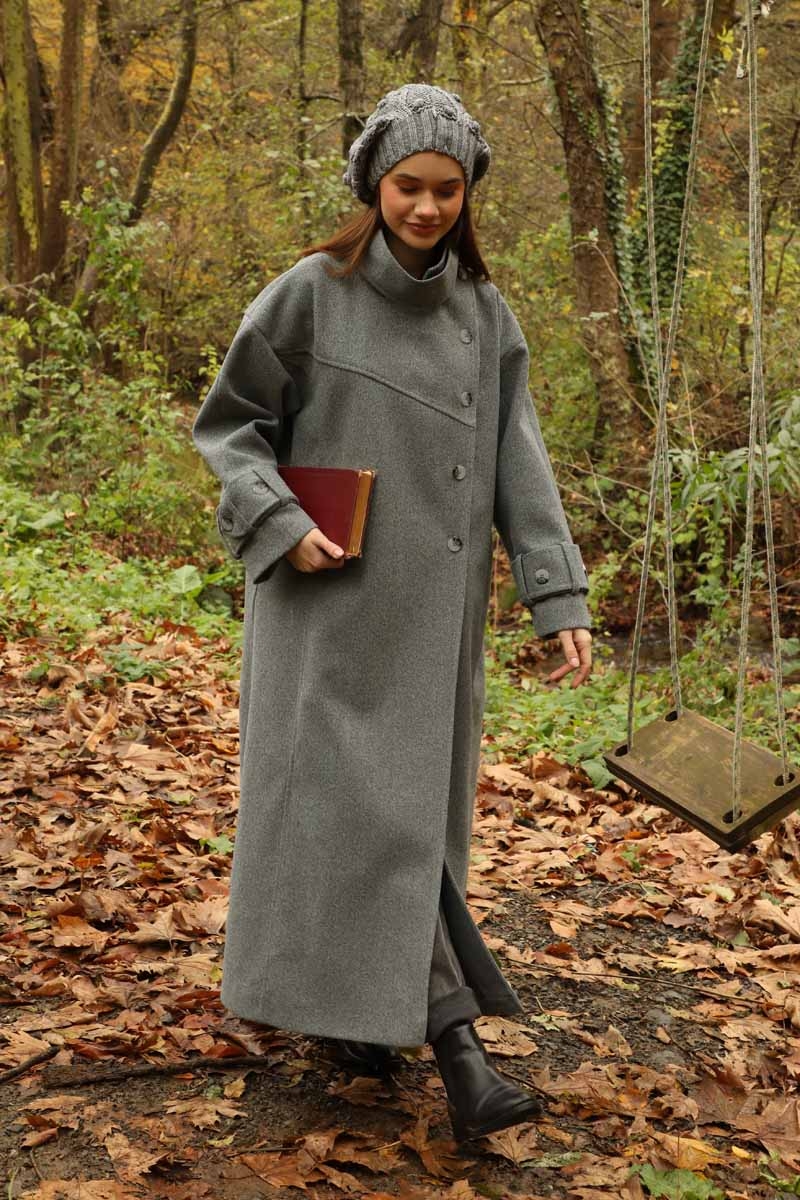 Dik Yaka Kruvaze Kaban Gri. Yakdan ince apolet detaylıdır, kruvaze kapama ve düğmelidir, yaka düğmesi açılıp kullanılabilir, dilerseniz bisiklet yaka ve dik yaka olarakta kullanabilirsiniz. Düşük kolludur, kalın maşetlidir, önden dikiş detaylıdır, yandan gizli ceplidir, astarlıdır, Günlük kullanım ve özel günlerinizde tercih edebilirsiniz.