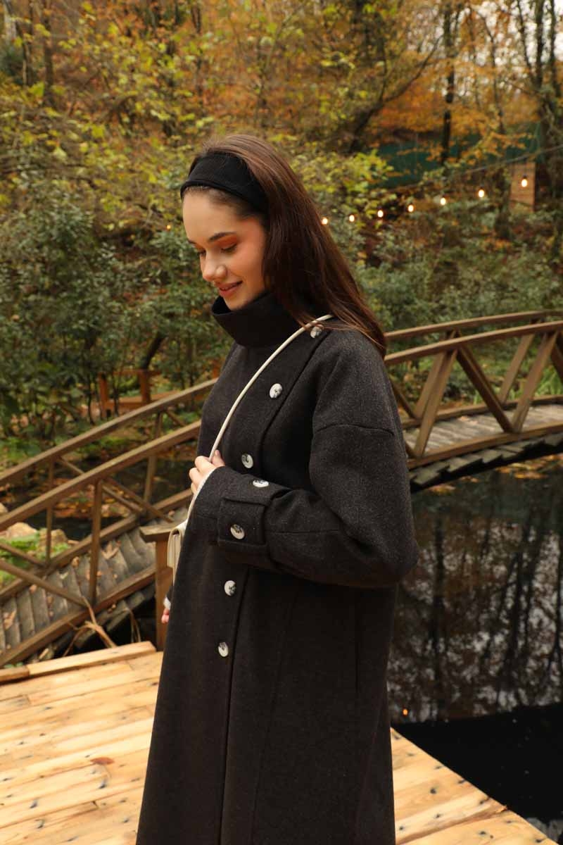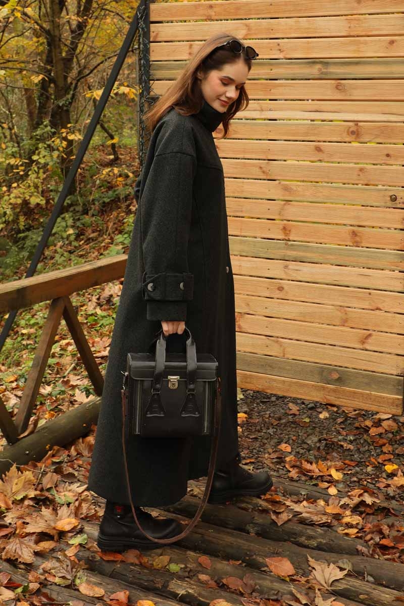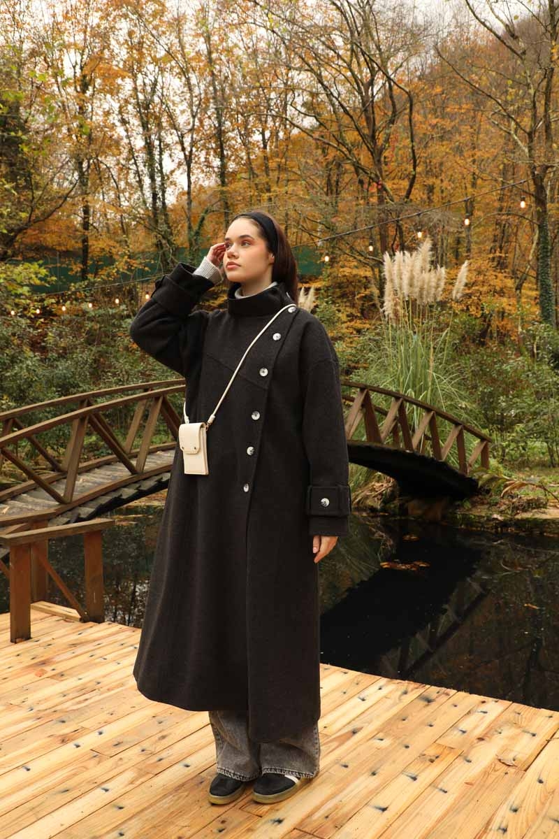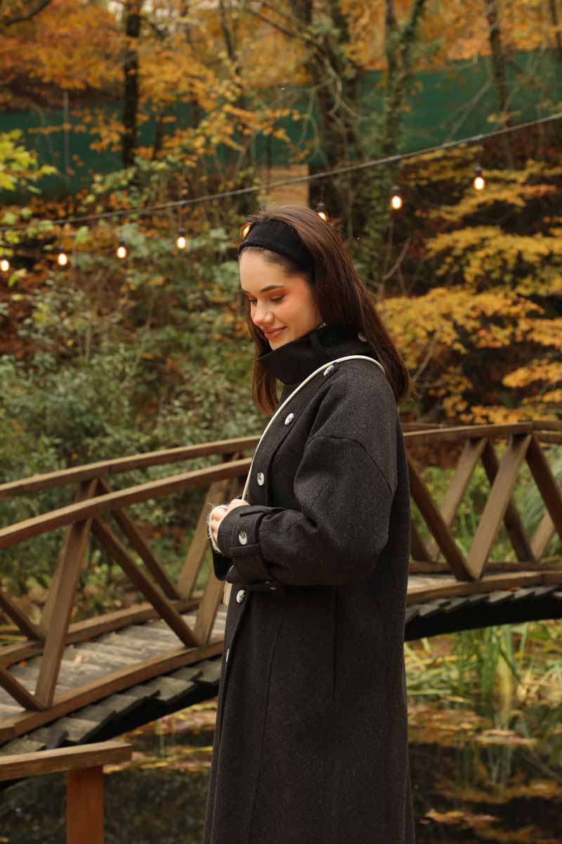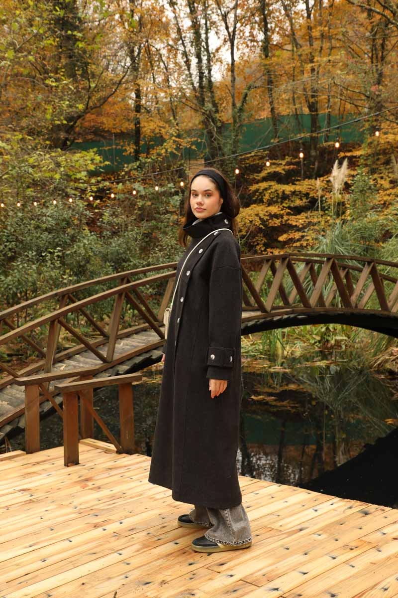 Dik Yaka Kruvaze Kaban Melanj SiyahZulays. Yakdan ince apolet detaylıdır, kruvaze kapama ve düğmelidir, yaka düğmesi açılıp kullanılabilir, dilerseniz bisiklet yaka ve dik yaka olarakta kullanabilirsiniz. Düşük kolludur, kalın maşetlidir, önden dikiş detaylıdır, yandan gizli ceplidir, astarlıdır, Günlük kullanım ve özel günlerinizde tercih edebilirsiniz.