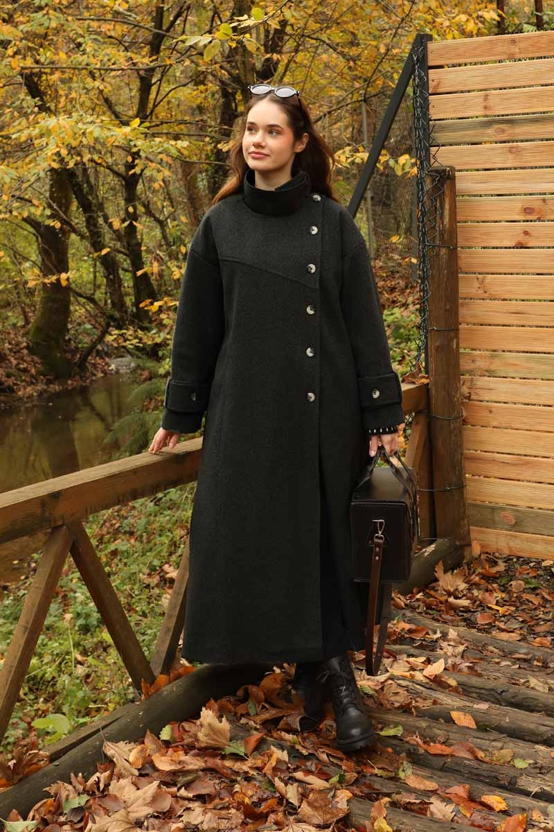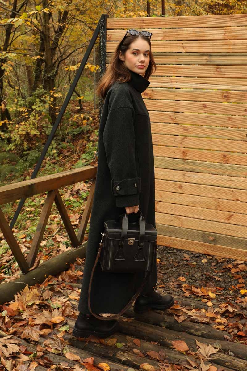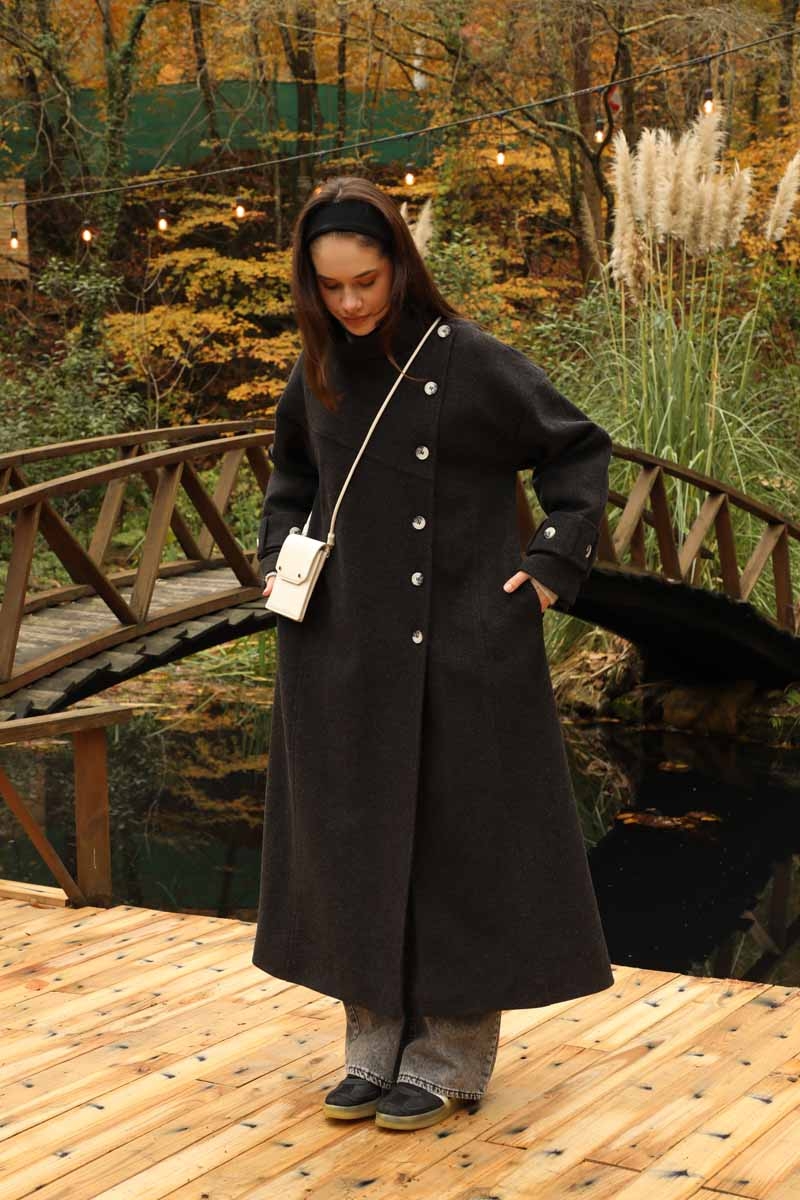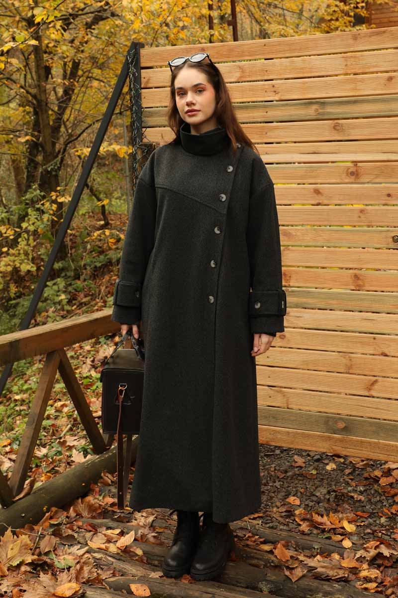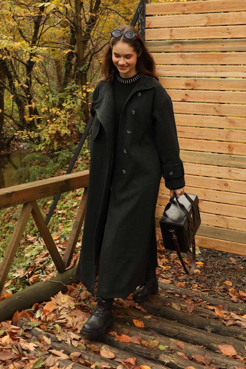 Dik Yaka Kruvaze Kaban Melanj SiyahZulays. Yakdan ince apolet detaylıdır, kruvaze kapama ve düğmelidir, yaka düğmesi açılıp kullanılabilir, dilerseniz bisiklet yaka ve dik yaka olarakta kullanabilirsiniz. Düşük kolludur, kalın maşetlidir, önden dikiş detaylıdır, yandan gizli ceplidir, astarlıdır, Günlük kullanım ve özel günlerinizde tercih edebilirsiniz.