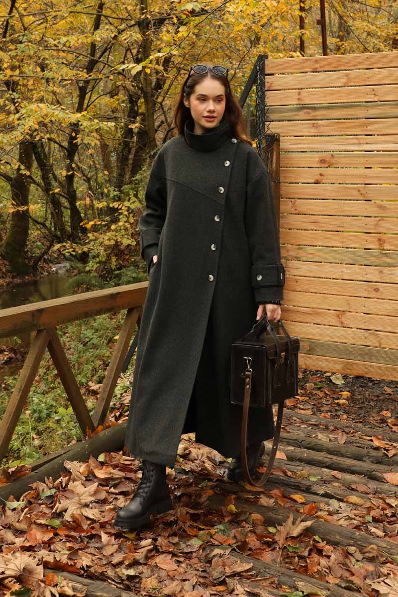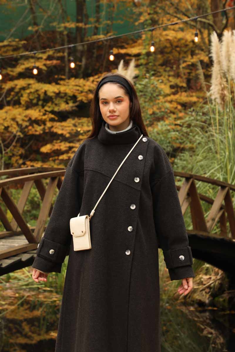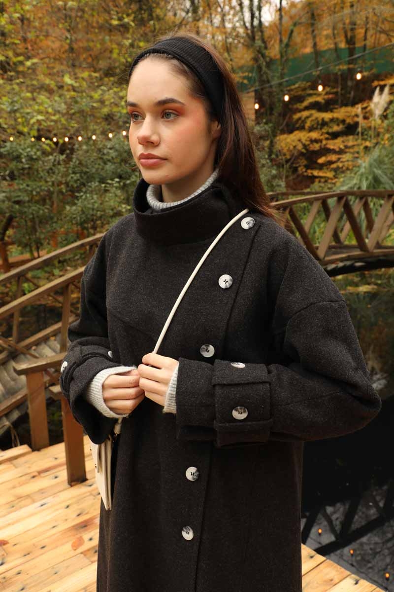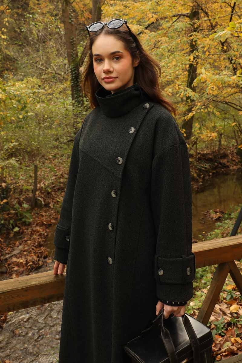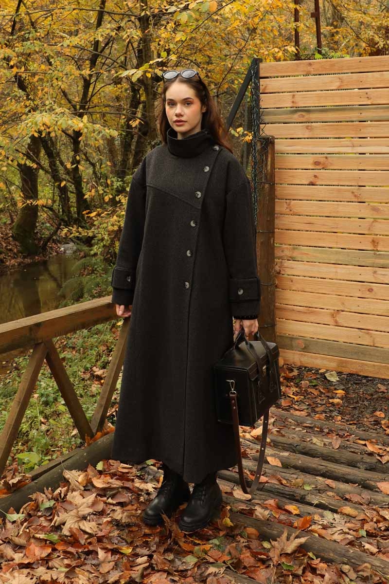 Dik Yaka Kruvaze Kaban Melanj SiyahZulays. Yakdan ince apolet detaylıdır, kruvaze kapama ve düğmelidir, yaka düğmesi açılıp kullanılabilir, dilerseniz bisiklet yaka ve dik yaka olarakta kullanabilirsiniz. Düşük kolludur, kalın maşetlidir, önden dikiş detaylıdır, yandan gizli ceplidir, astarlıdır, Günlük kullanım ve özel günlerinizde tercih edebilirsiniz.