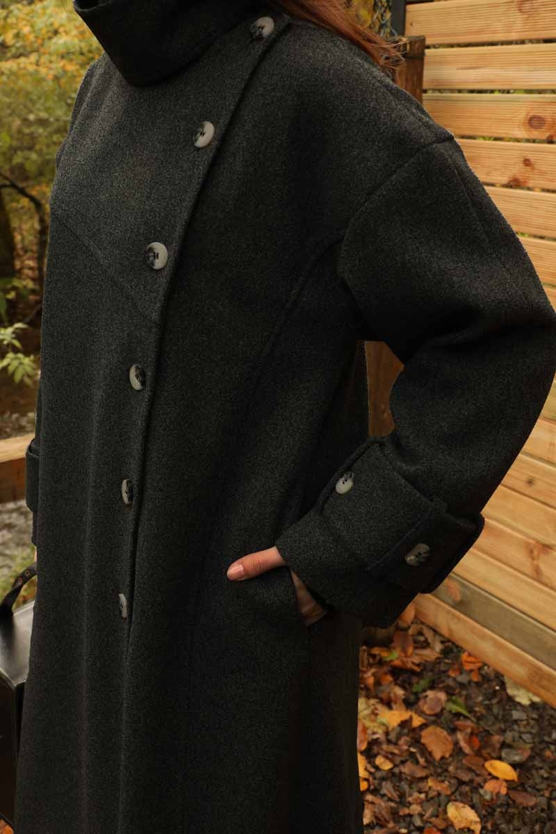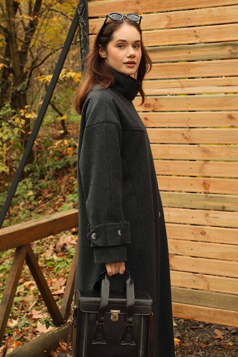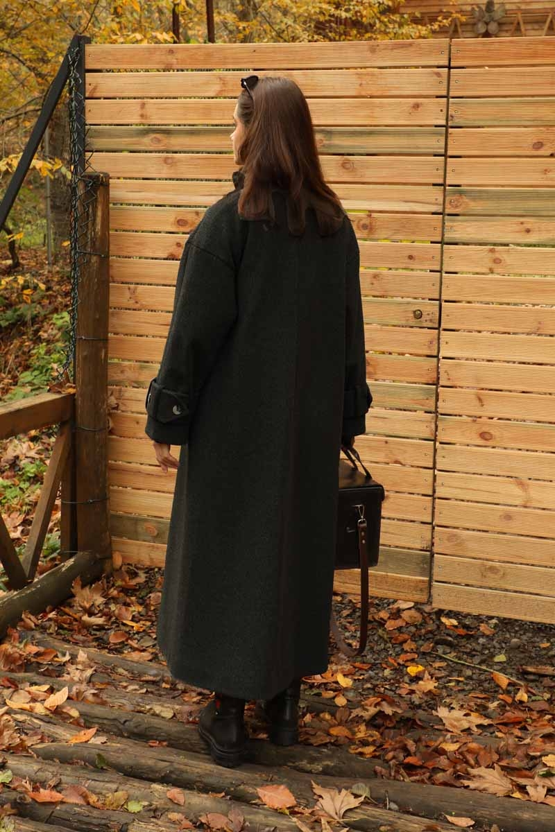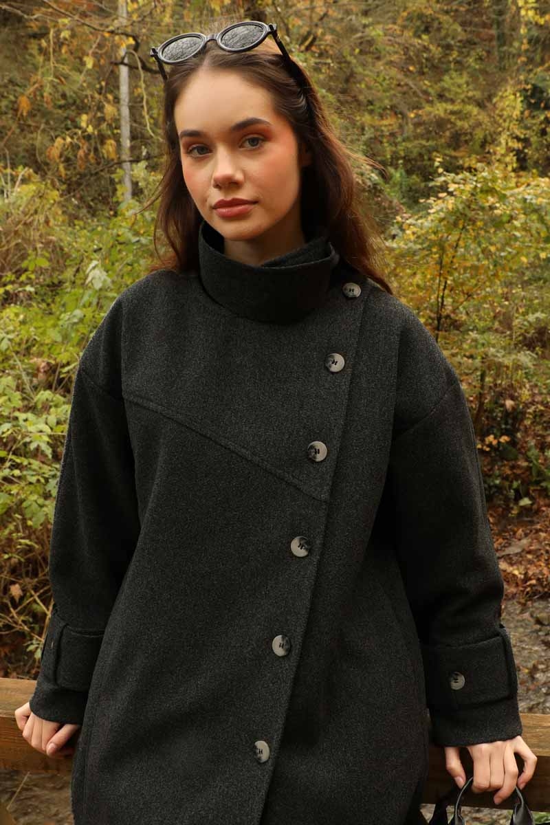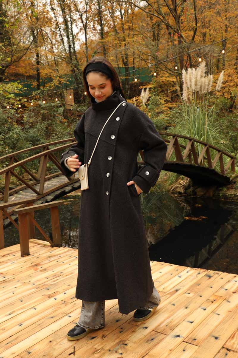 Dik Yaka Kruvaze Kaban Melanj SiyahZulays. Yakdan ince apolet detaylıdır, kruvaze kapama ve düğmelidir, yaka düğmesi açılıp kullanılabilir, dilerseniz bisiklet yaka ve dik yaka olarakta kullanabilirsiniz. Düşük kolludur, kalın maşetlidir, önden dikiş detaylıdır, yandan gizli ceplidir, astarlıdır, Günlük kullanım ve özel günlerinizde tercih edebilirsiniz.