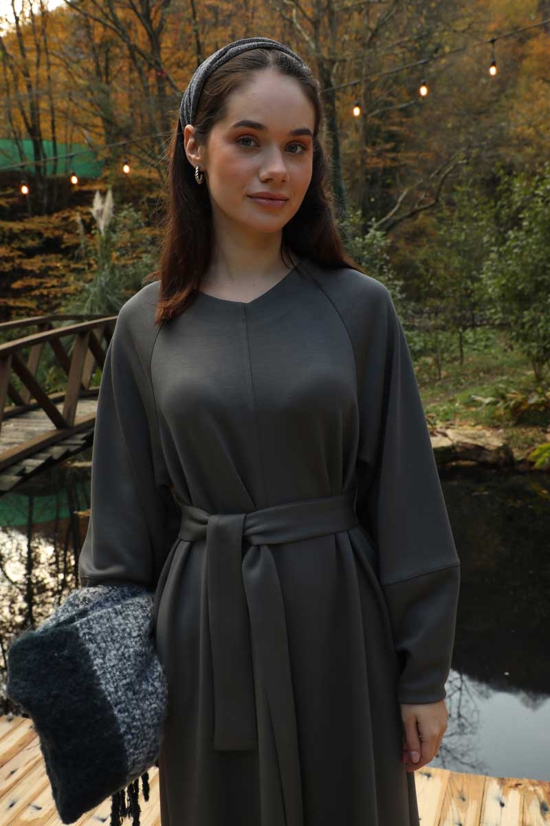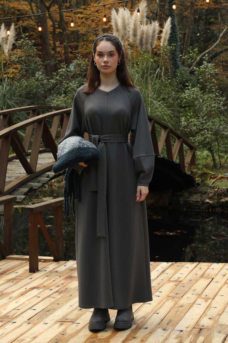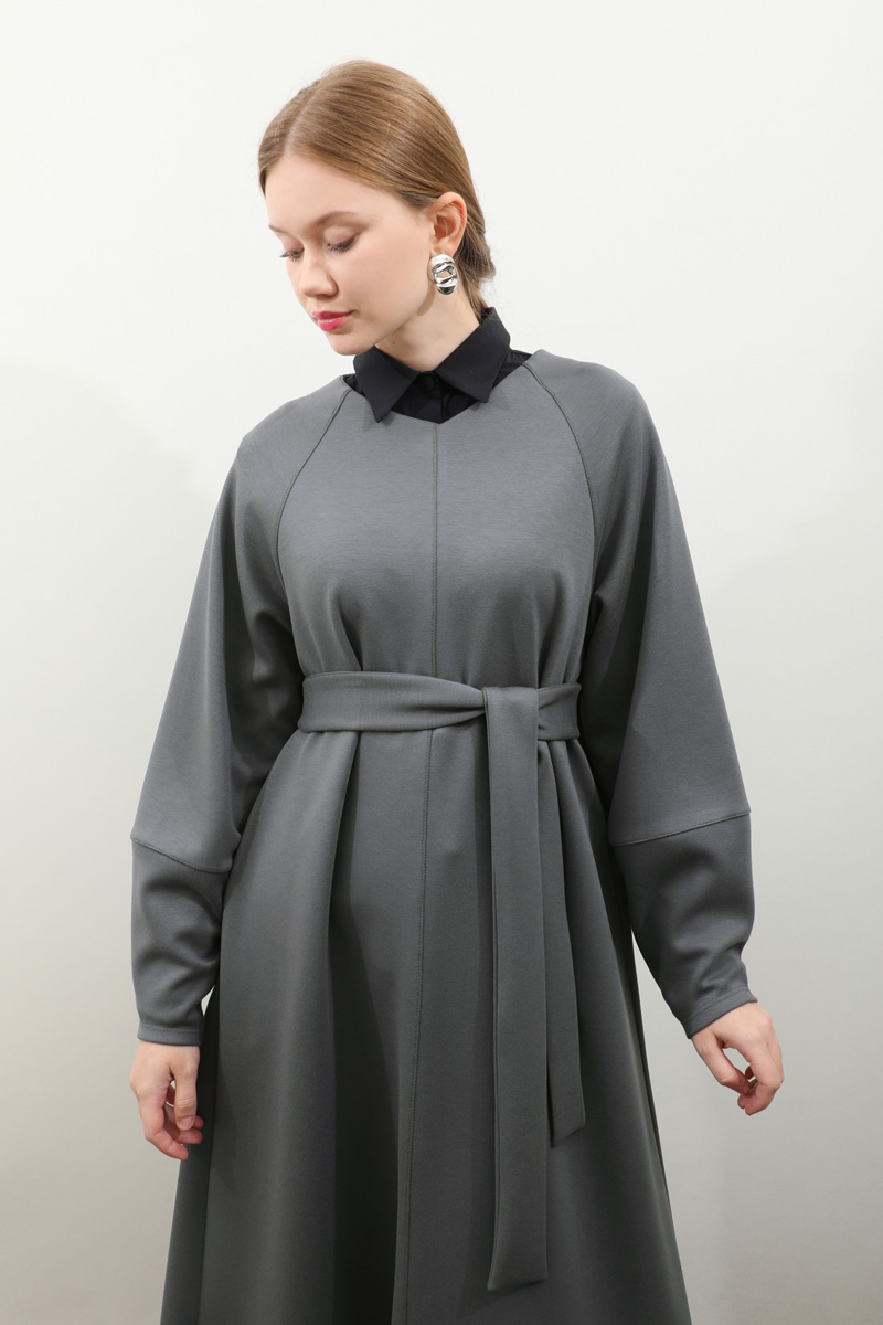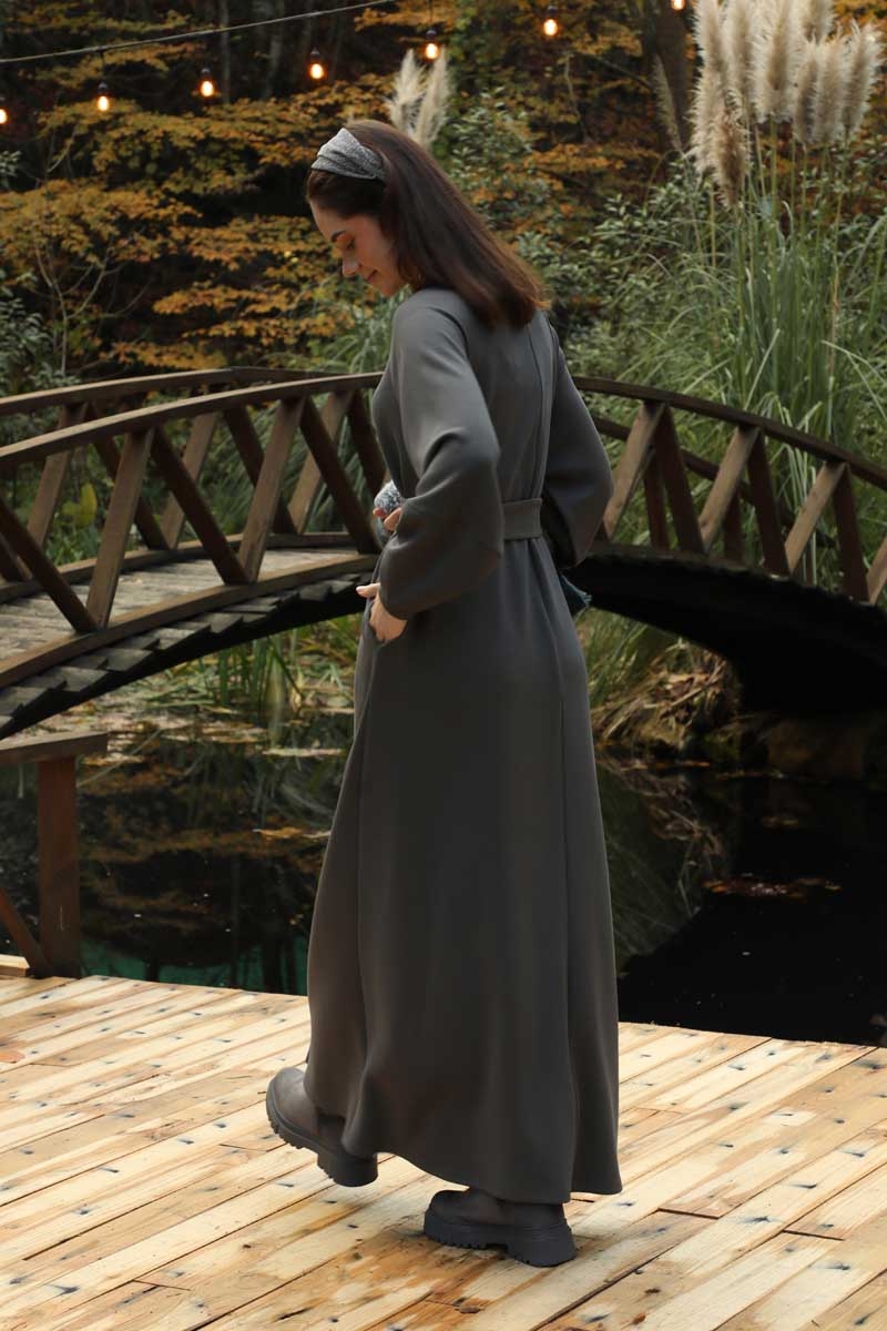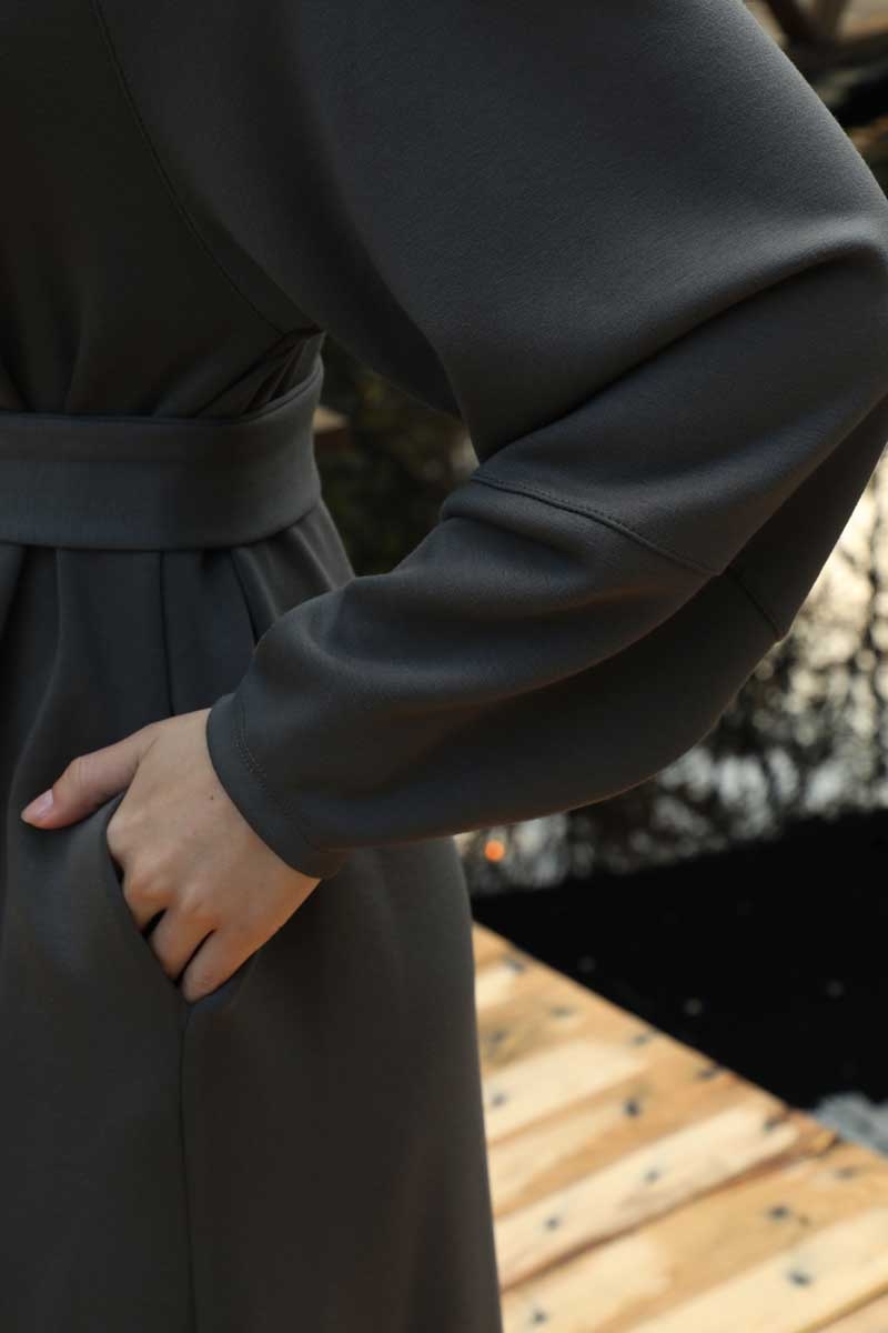Dikiş Detaylı Ebise Antrasit. V yakadır, önden dikiş detaylıdır, reglan kolludur, kolunda dikiş detayı olup bileğe doğru daralmaktadır, arkadan fermuarlıdır, yandan gizli ceplidir, kuşaklıdır, astarldır, iç göstermez. Günlük kullanım ve özel günlerinizde tercih edebilirsiniz.