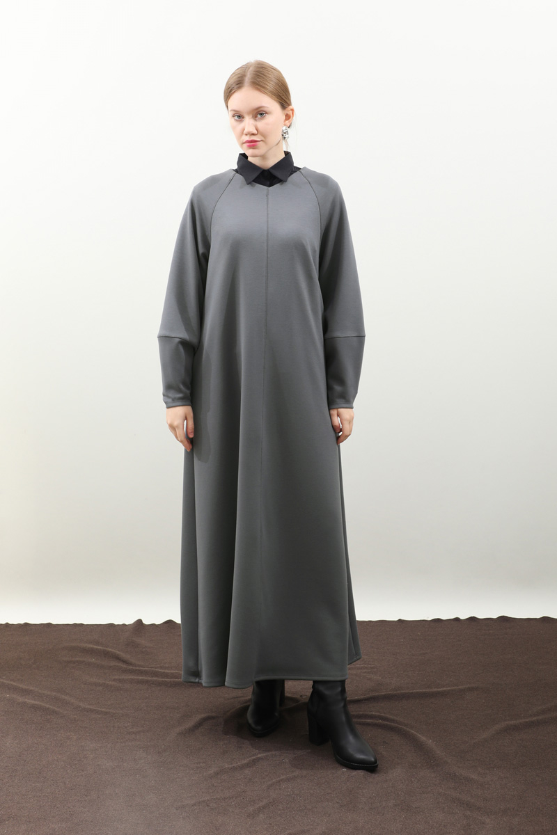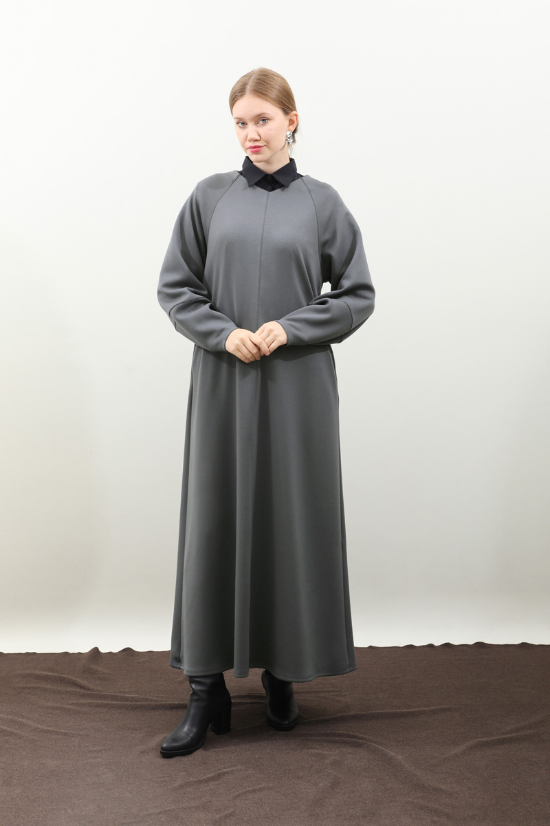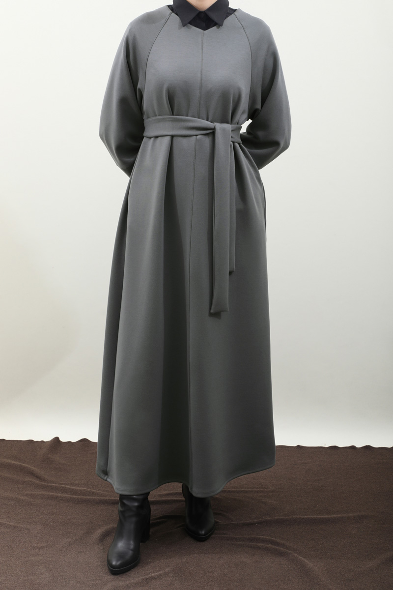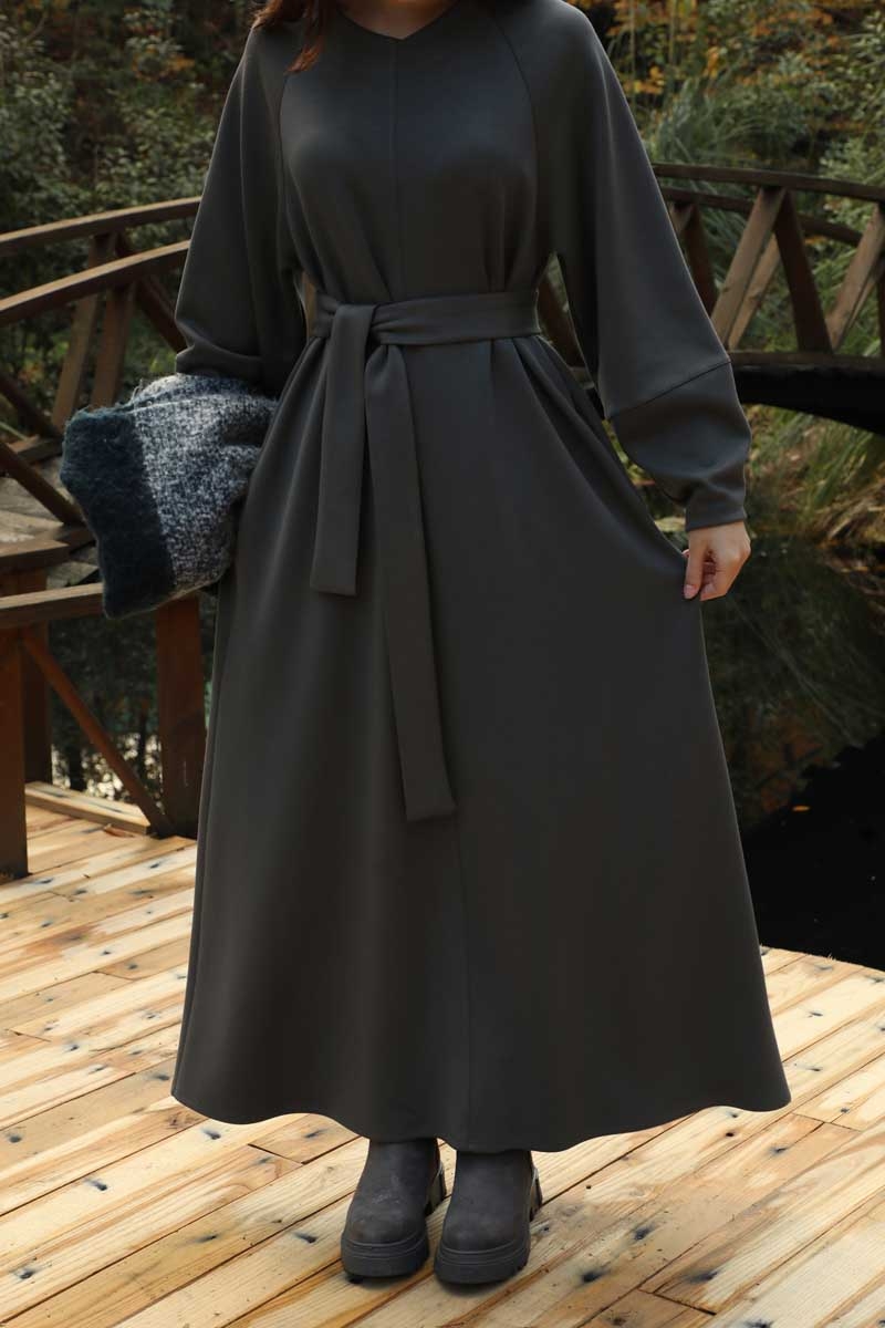Dikiş Detaylı Ebise Antrasit. V yakadır, önden dikiş detaylıdır, reglan kolludur, kolunda dikiş detayı olup bileğe doğru daralmaktadır, arkadan fermuarlıdır, yandan gizli ceplidir, kuşaklıdır, astarldır, iç göstermez. Günlük kullanım ve özel günlerinizde tercih edebilirsiniz.