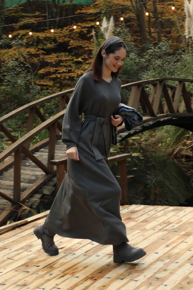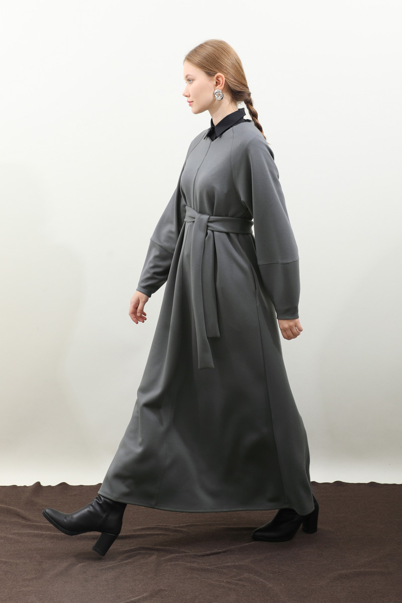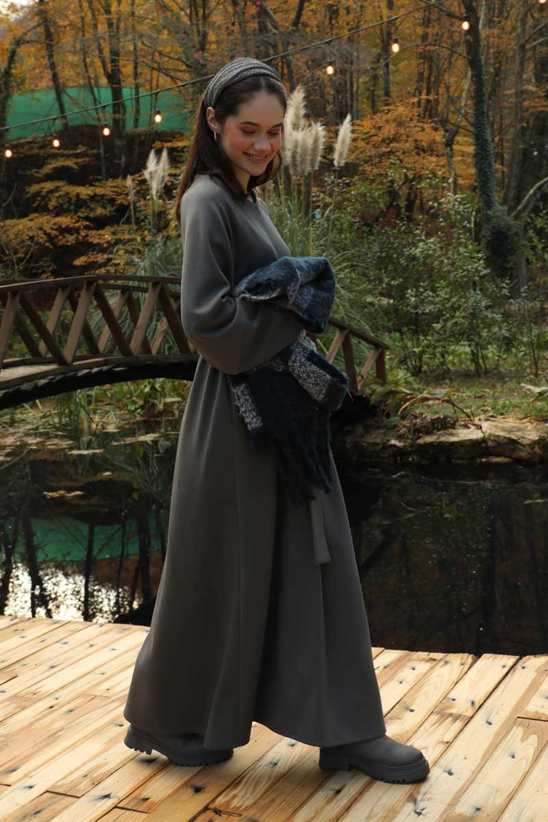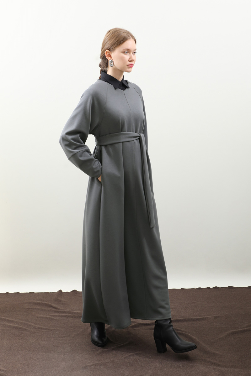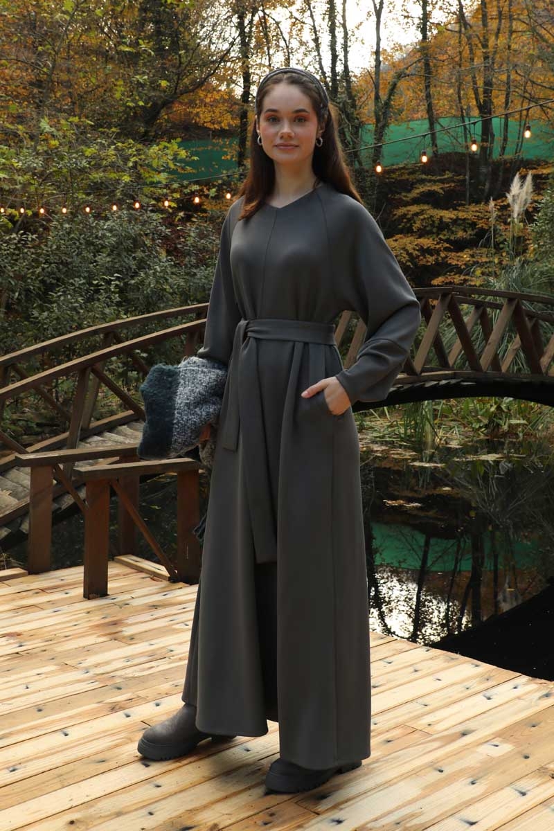 Dikiş Detaylı Ebise Antrasit. V yakadır, önden dikiş detaylıdır, reglan kolludur, kolunda dikiş detayı olup bileğe doğru daralmaktadır, arkadan fermuarlıdır, yandan gizli ceplidir, kuşaklıdır, astarldır, iç göstermez. Günlük kullanım ve özel günlerinizde tercih edebilirsiniz.
