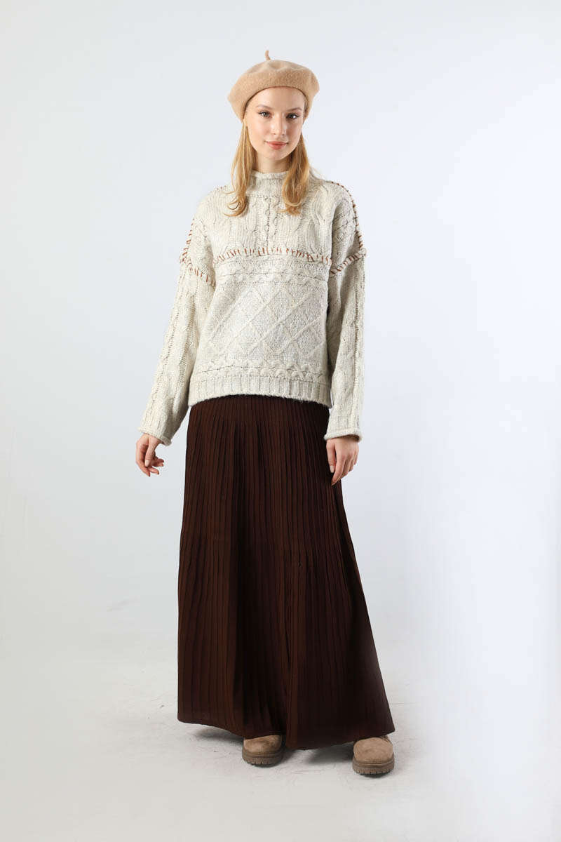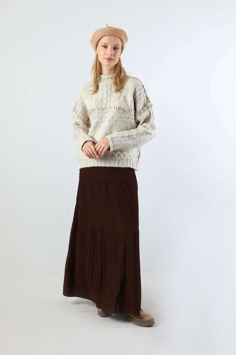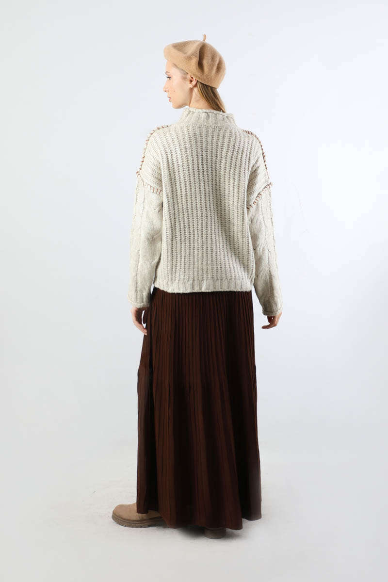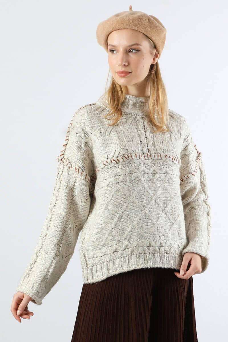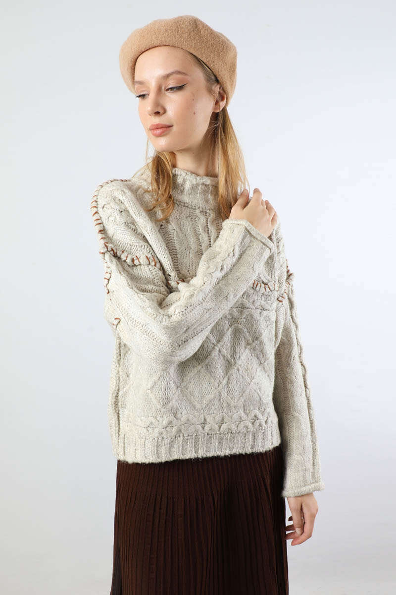Dikiş Detaylı Kısa Kazak Çakıl. Balıkçı yakadır. Beden, omuz ve kollarda süs dikiş detaylıdır. Günlük kullanım ve özel günlerinizde tercih edebilirsiniz.