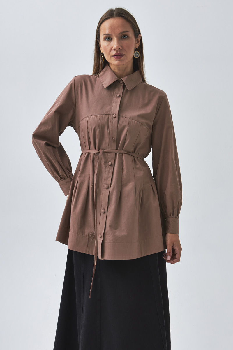 Dikiş Detaylı Robalı Gömlek Gül Kurusu, modern çizgisi ve zarif detaylarıyla hem günlük hem de şık kombinlerde kullanılabilir. Roba kısmındaki dikiş detayları tasarıma hareket katarken, hafif salaş kesimi rahat bir kullanım sağlar. Pantolon ve eteklerle kolayca kombinlenerek zamansız bir stil oluşturur.
