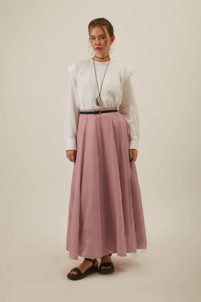 Dikiş Detaylı Salaş Etek Pudra