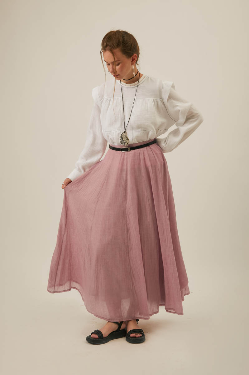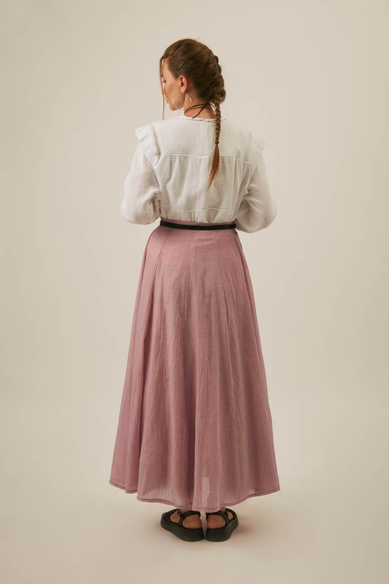 Dikiş Detaylı Salaş Etek Pudra, Rahat ve zarif bir kombinasyon sunan, yaz aylarının vazgeçilmezi olabilecek bir takım. Hafif, kırışık dokulu beyaz maksi etek, A kesimiyle vücut hatlarını belli etmeden hareket özgürlüğü sağlıyor. Etek, sade ve minimalist duruşuyla kombinlerin temel parçasını olup kombinlerinizi sadeliği minimal bir dokunuşla tamamlamaktadır.