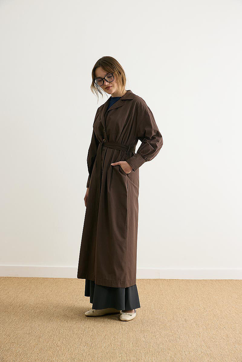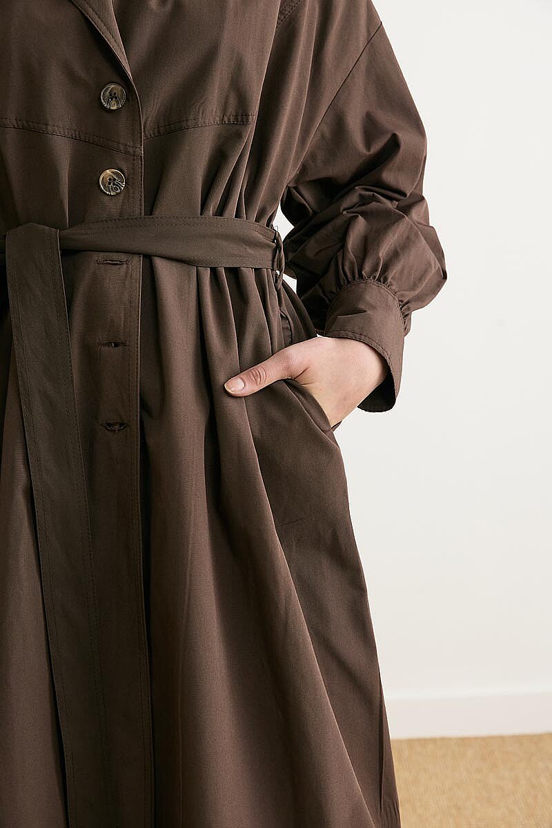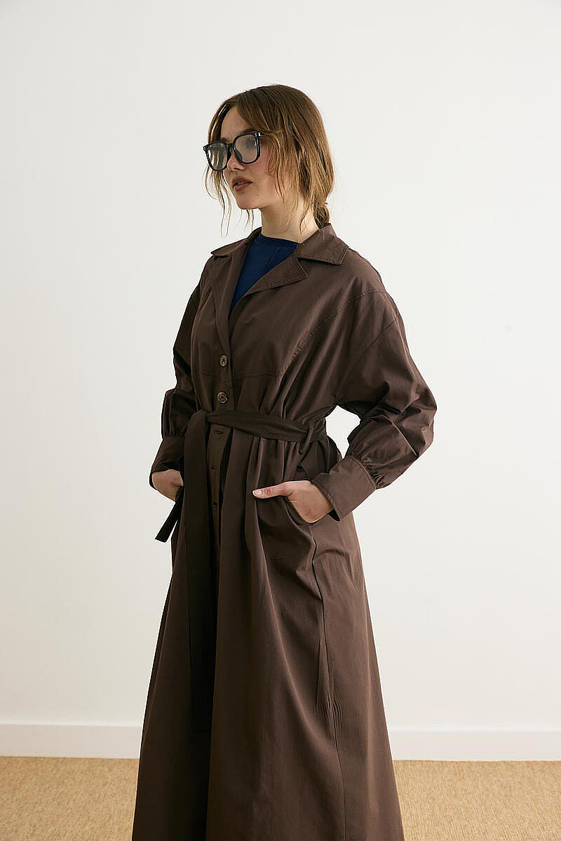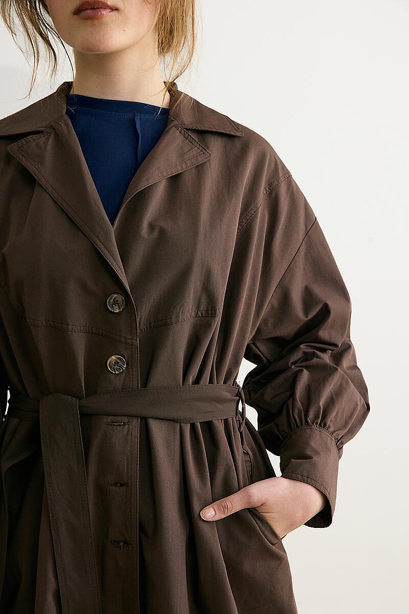 Dikişli Düğmeli Trençkot Kahverengi