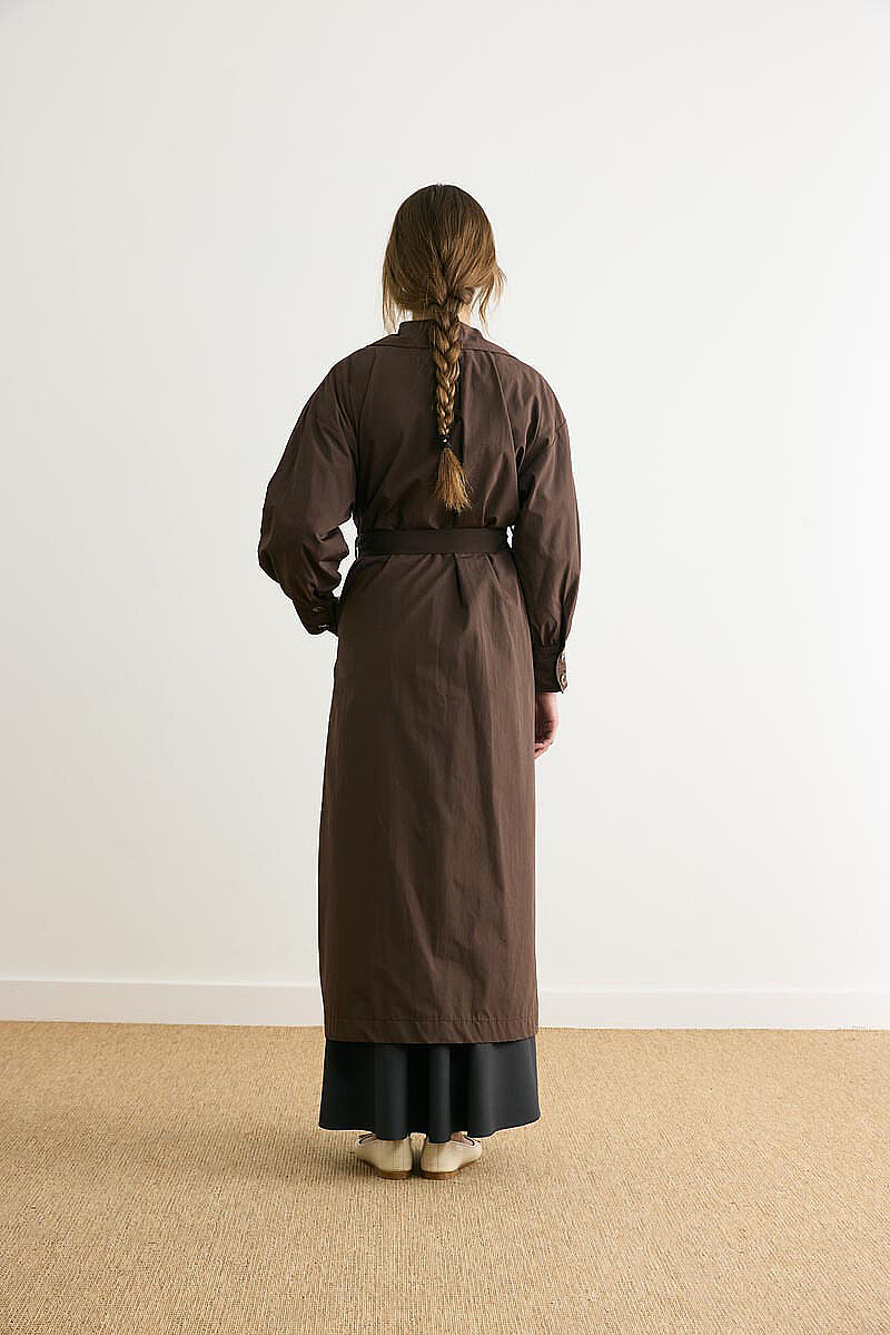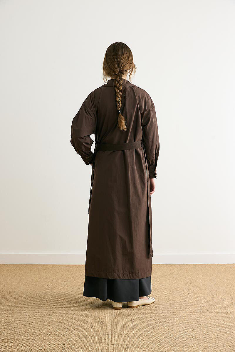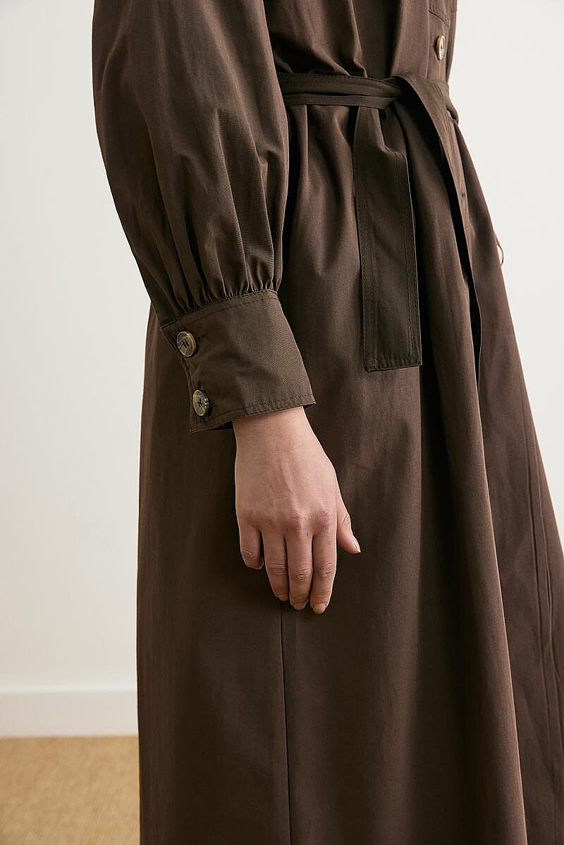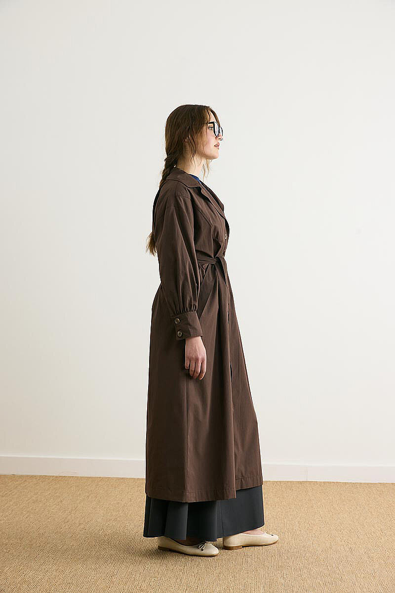 Dikişli Düğmeli Trençkot Kahverengi