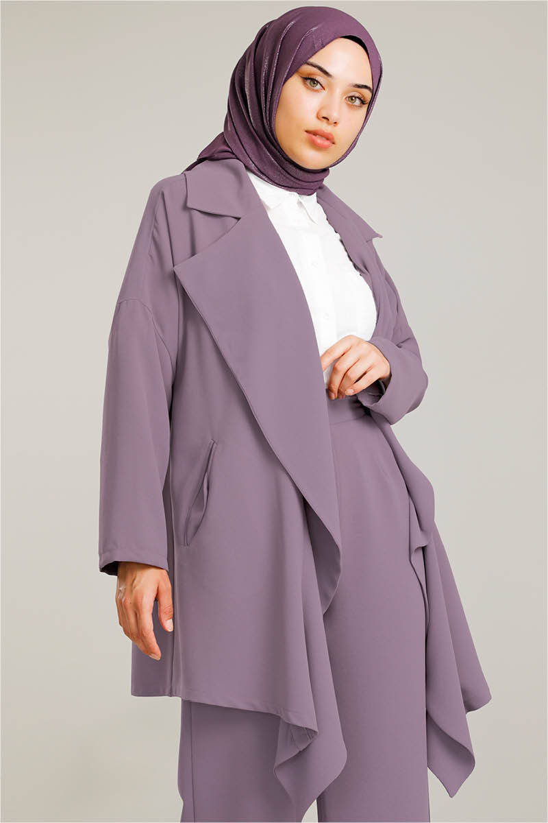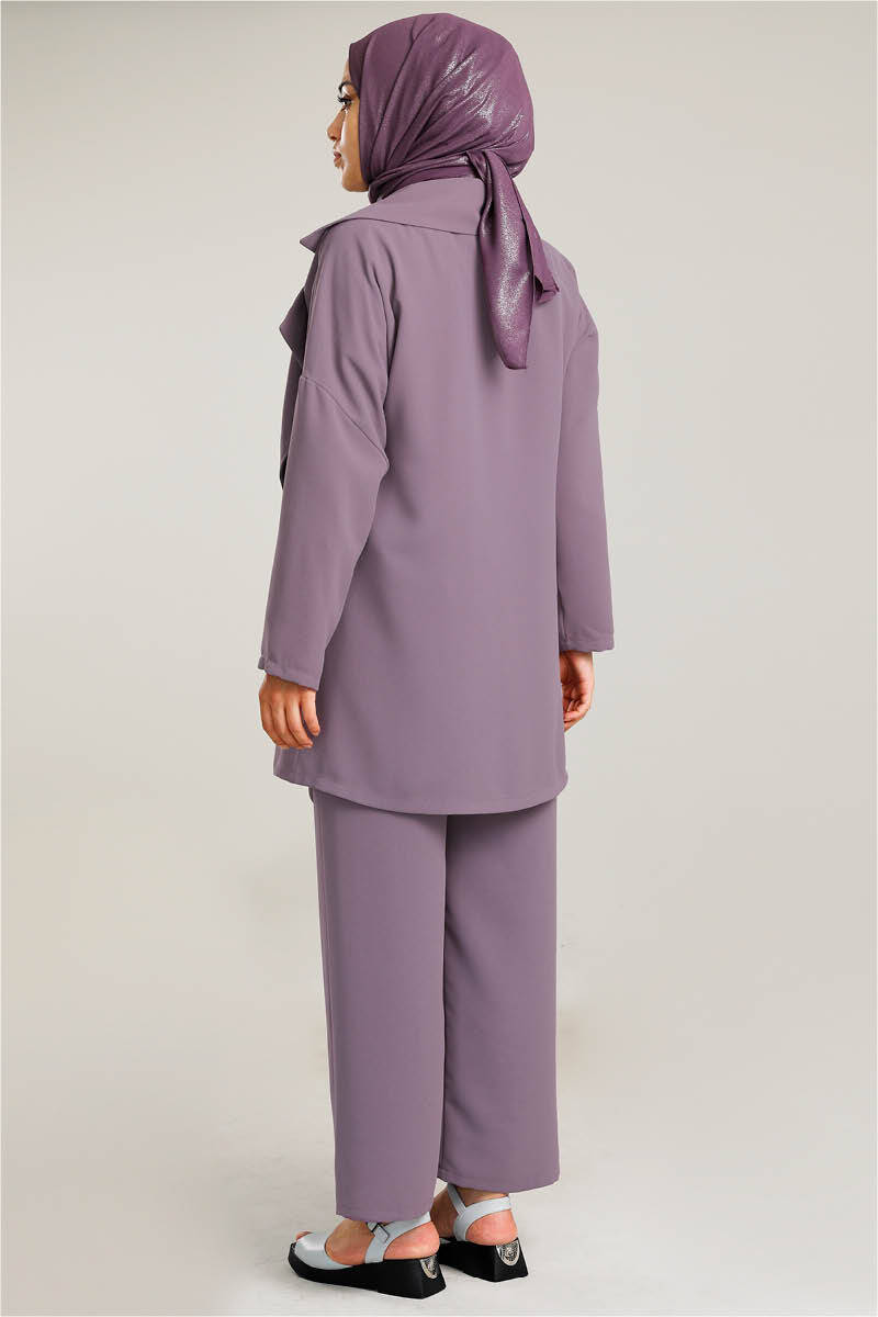 Dökümlü Ceket Takım Lila