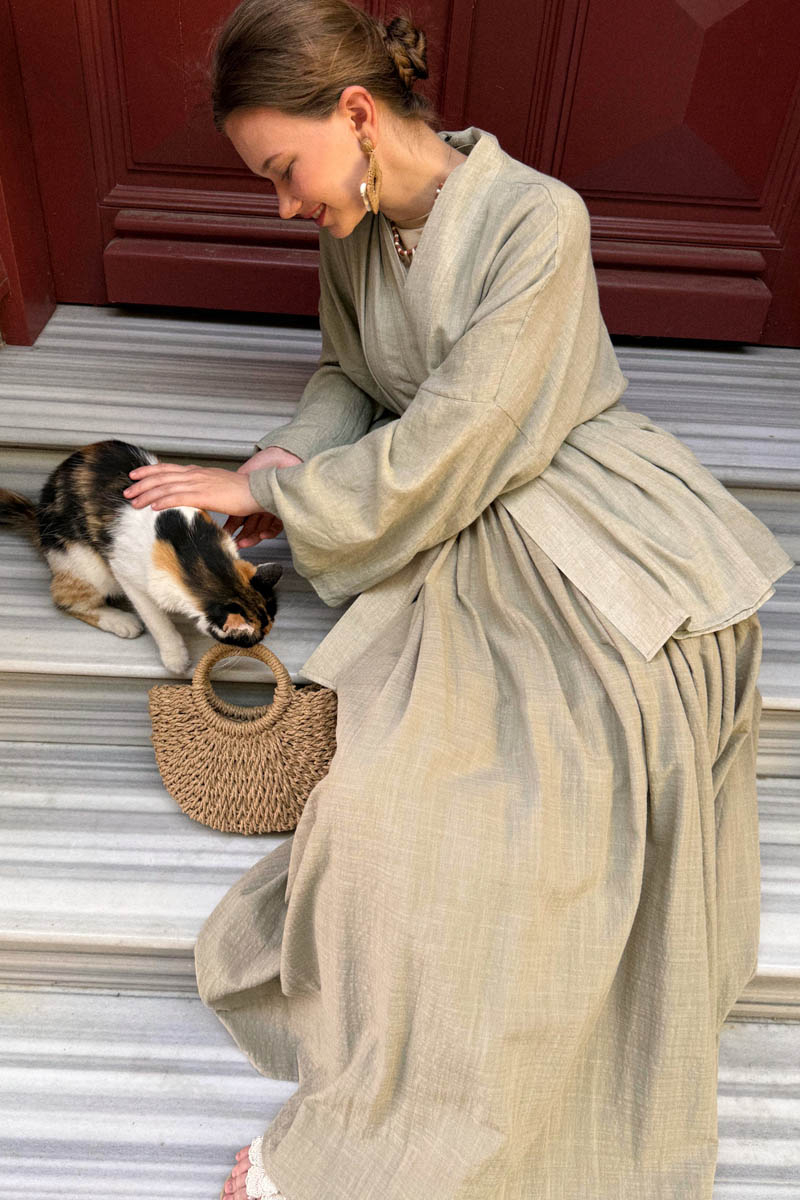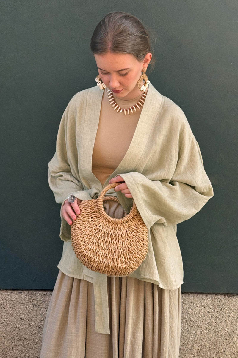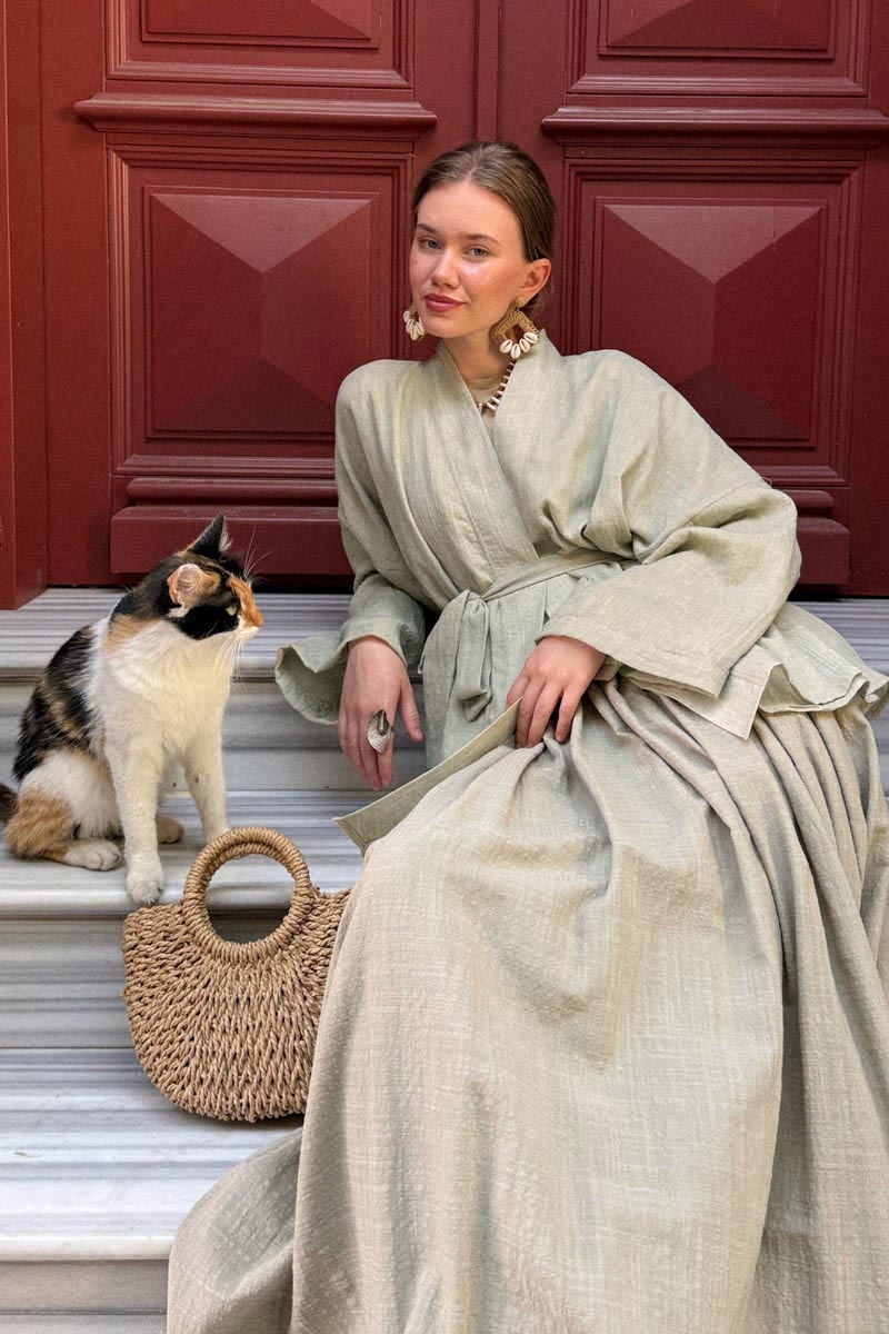 Designed for those looking for a timeless piece in their wardrobe, this dropped shoulder Italian cotton kimono stands out with its natural texture and relaxed fit. Thanks to the light and breathable nature of high-quality Italian cotton fabric, it will be your go-to piece for summer days and seasonal transitions. With its elegant and minimal design, it easily complements any style.
